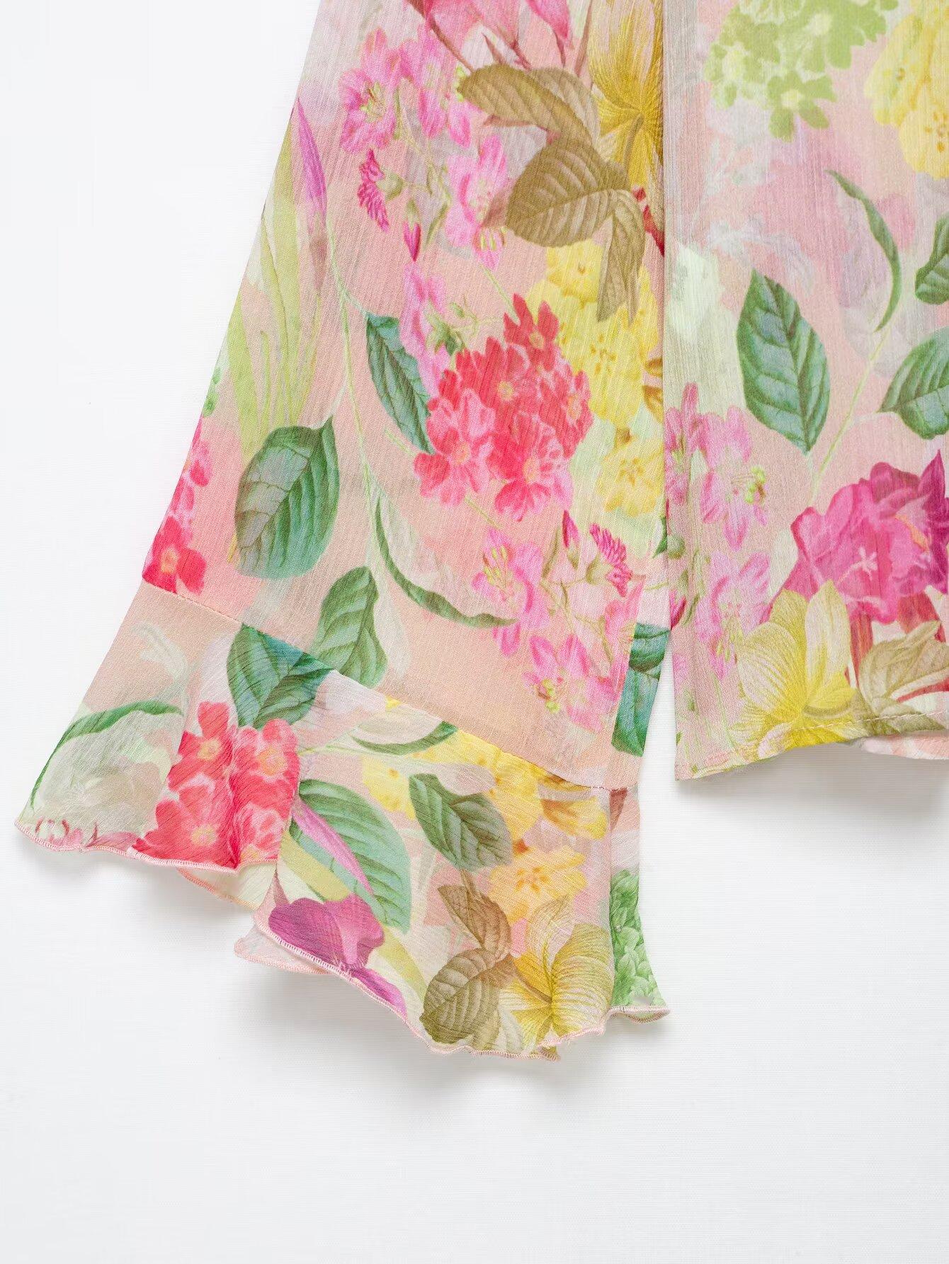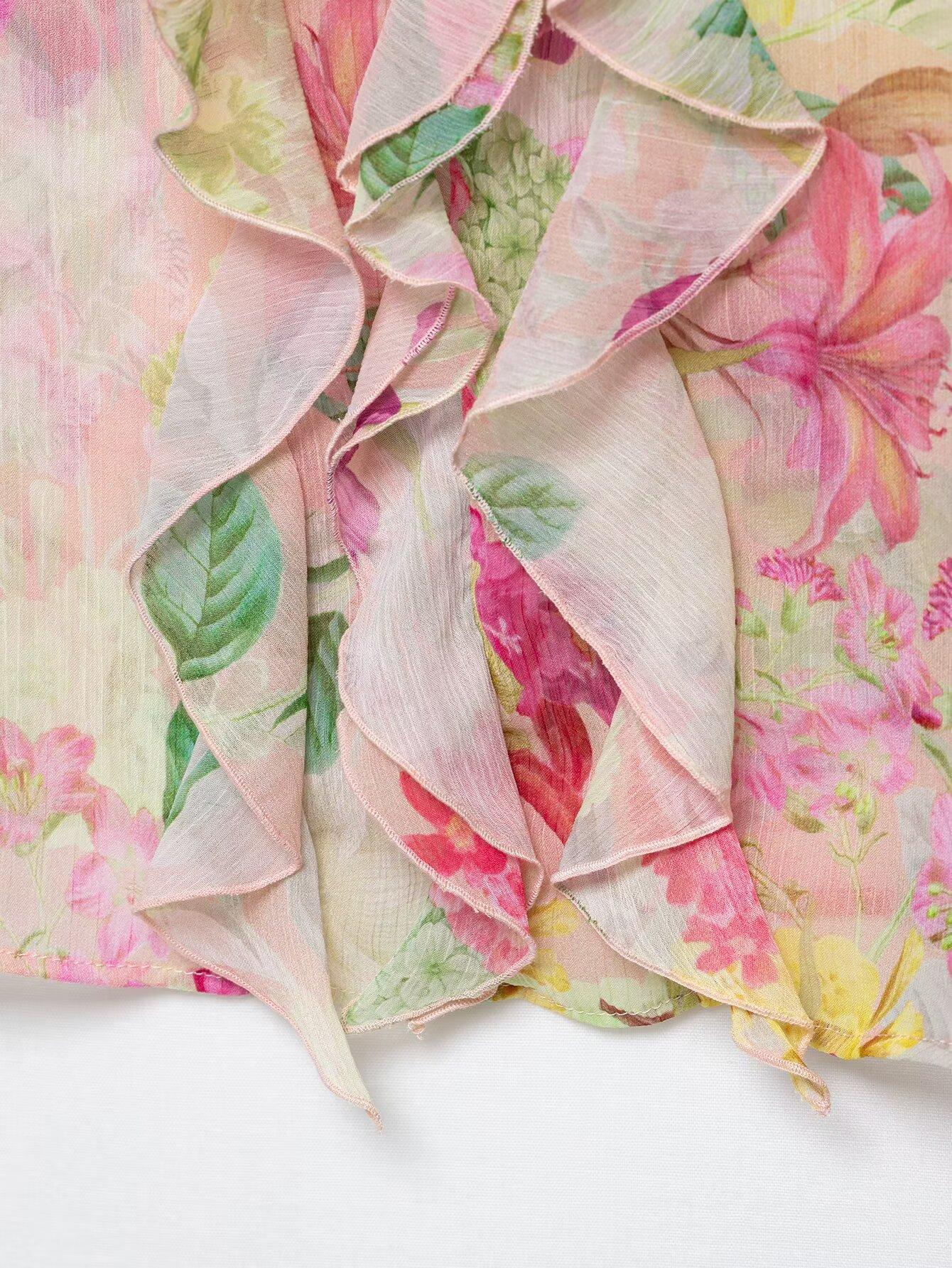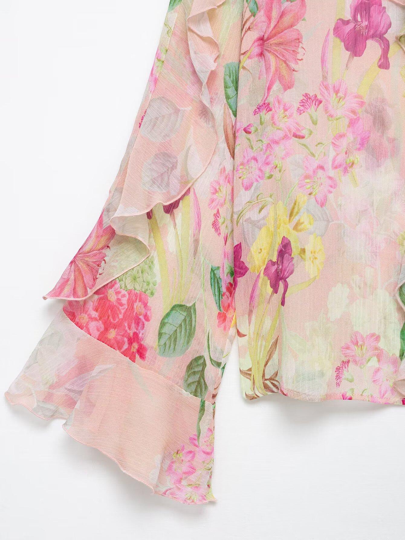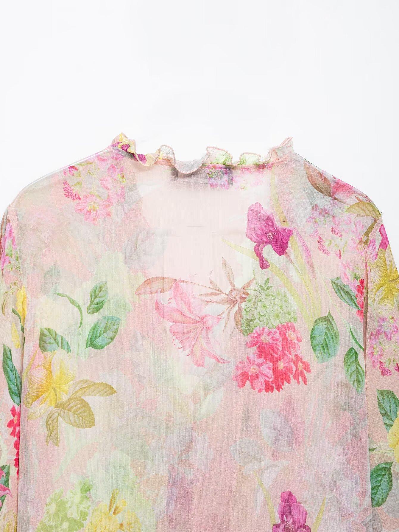 Nuevo Producto Transfronterizo 2025 Ropa de Mujer Estilo Europeo y Americano Exportación Venta al por Mayor Camisa Decorativa en Capas con Estampado Floral Zr