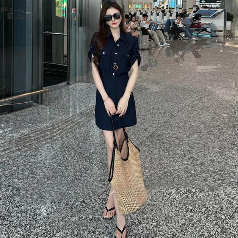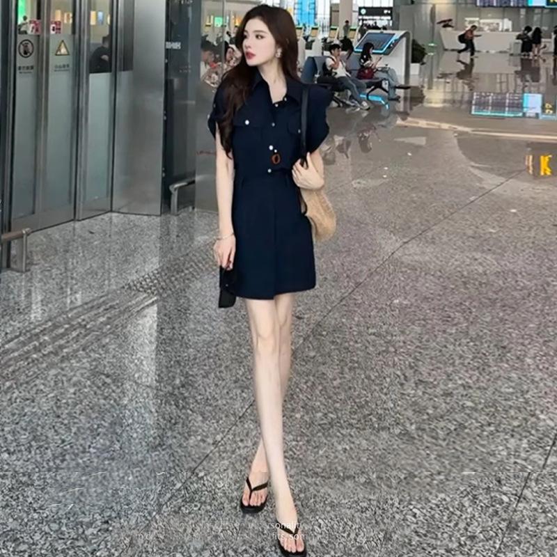 Vestido de Moda para Mujer 2025 Verano Nuevo Elegante Slim de Alta Gama Vestido Elegante de Una Pieza Falso Dos Piezas Vestido Línea A