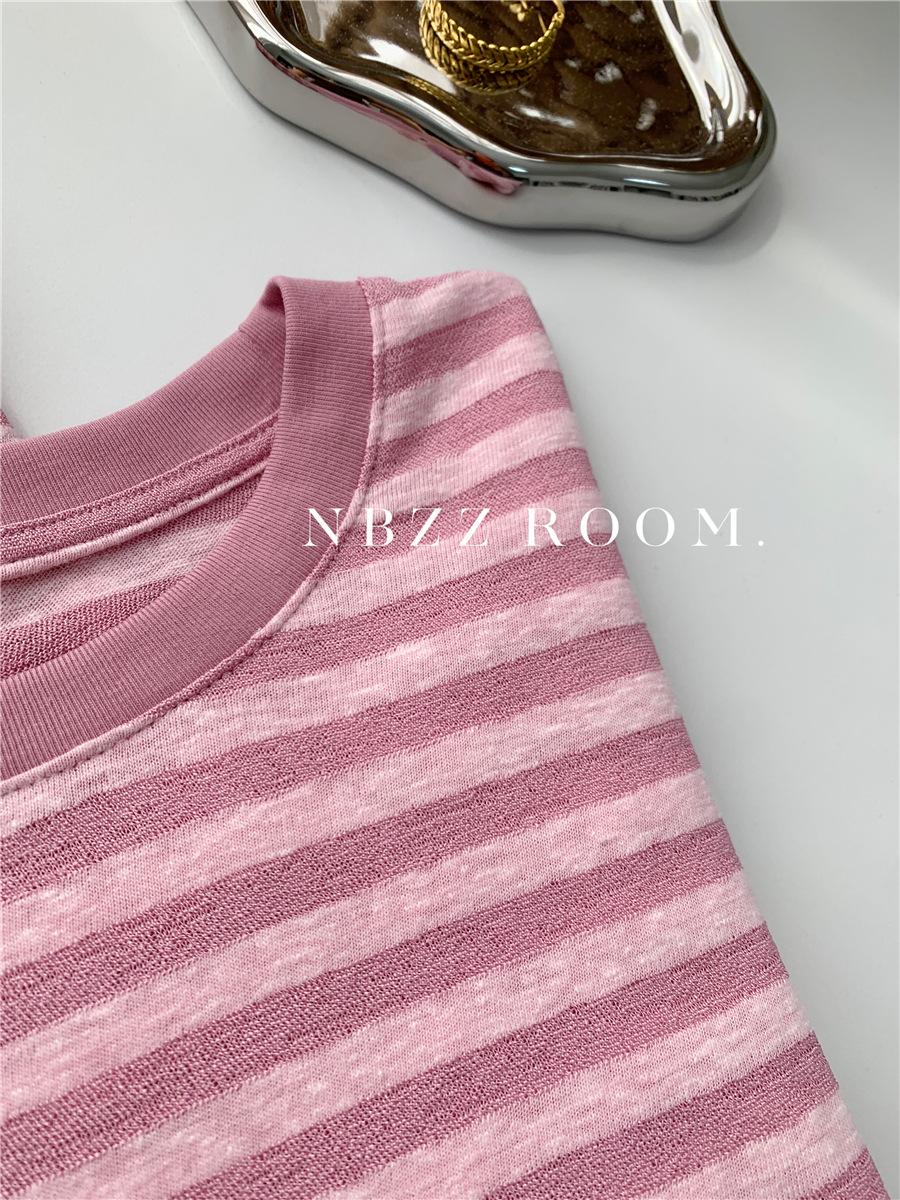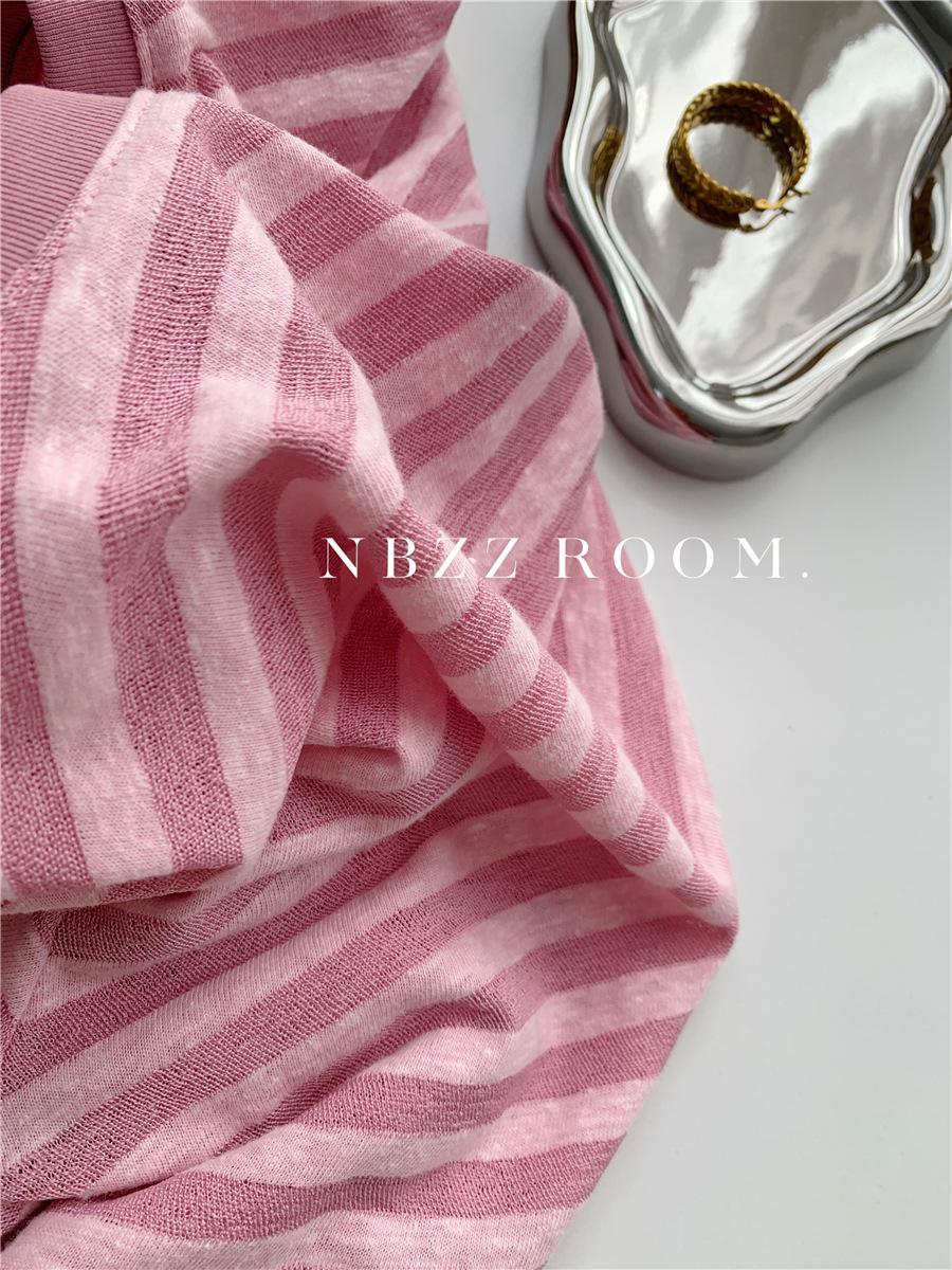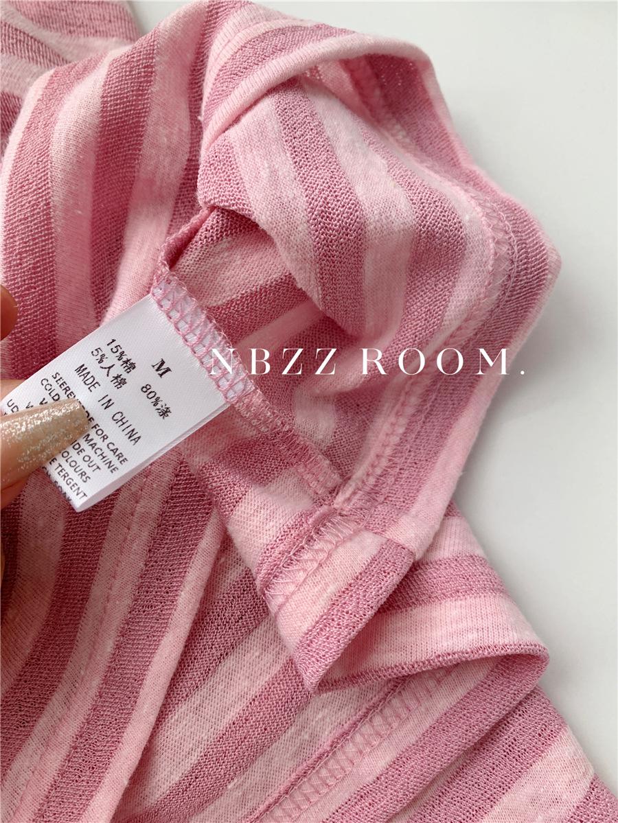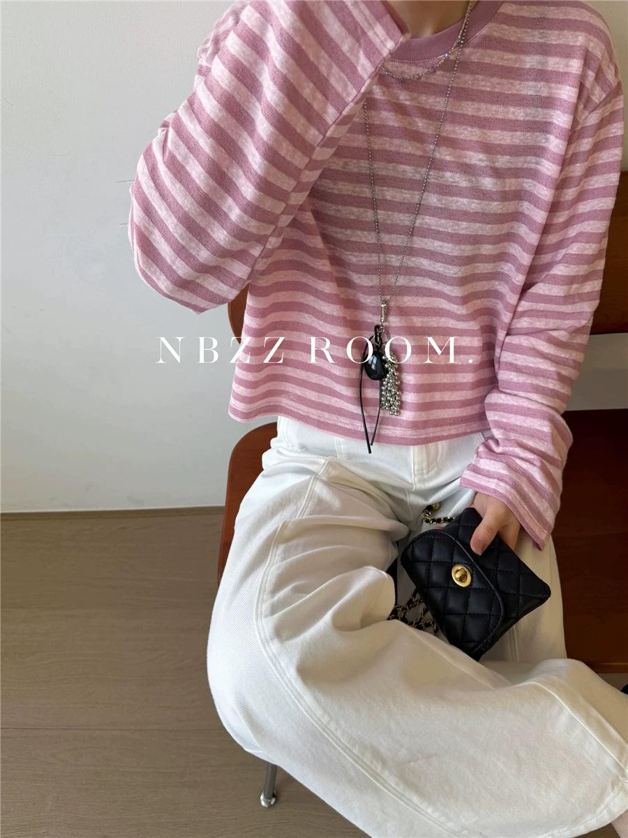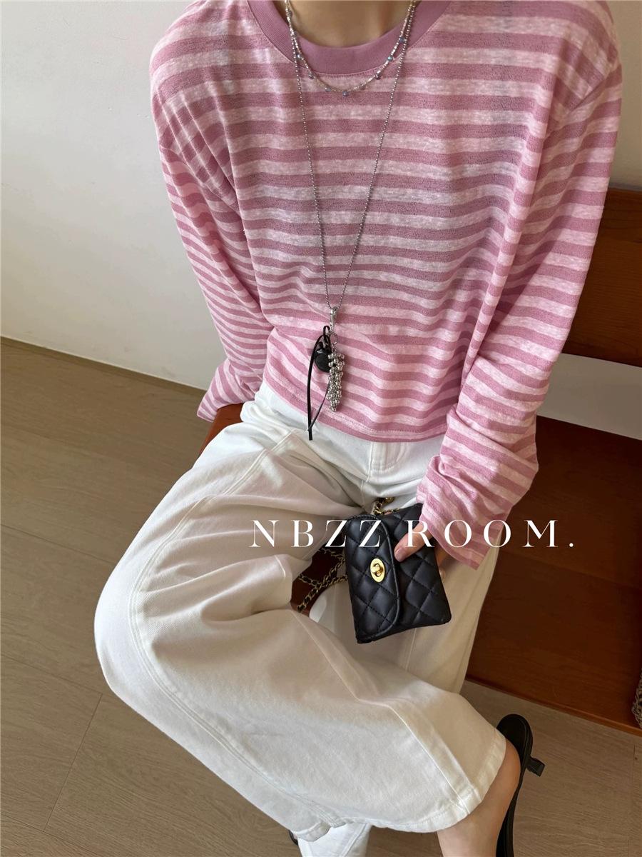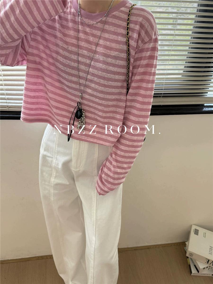 2025 Primavera y Verano 15% Algodón Dulce Reductor de Edad Rosa Rayas Camiseta de Manga Larga Moda Femenina Camisa Suelta Protectora del Sol Estilo Corto Trendy