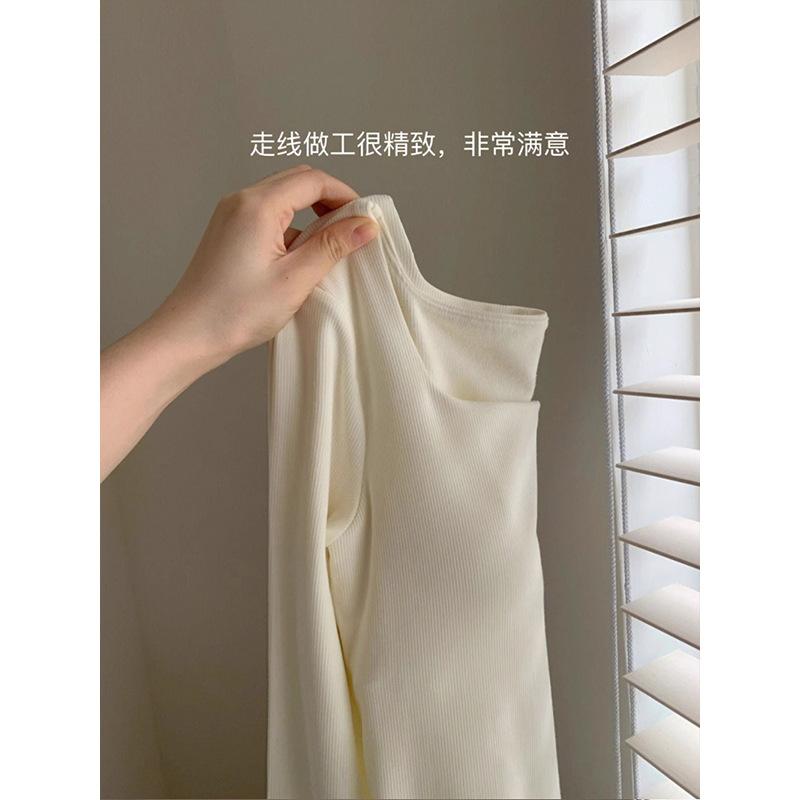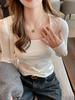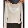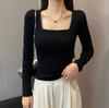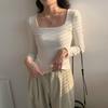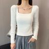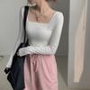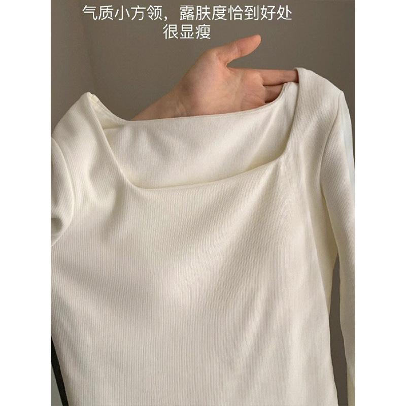 Camiseta Blanca Retro Cuello Cuadrado Manga Larga Mujer Otoño Primavera Cuello Bajo Exponer Clavícula Adelgazante Capa Base Ropa Interior Top Ajustado