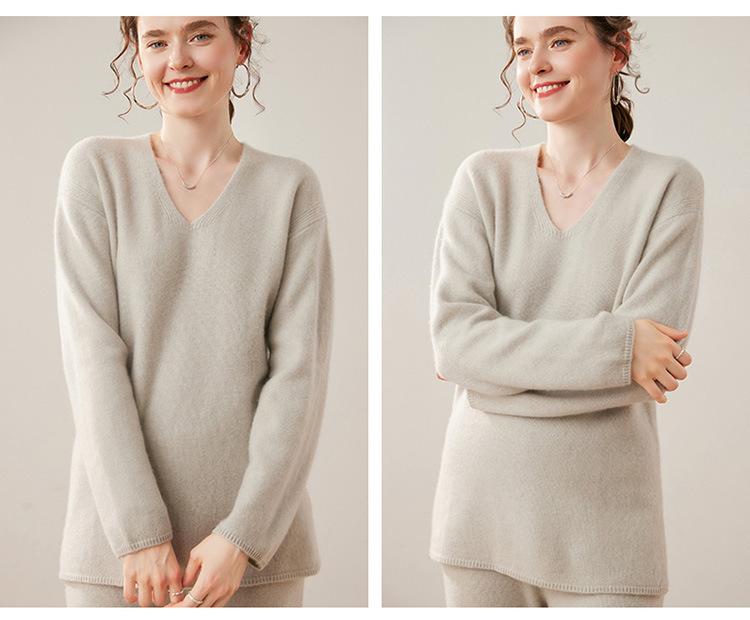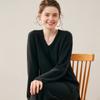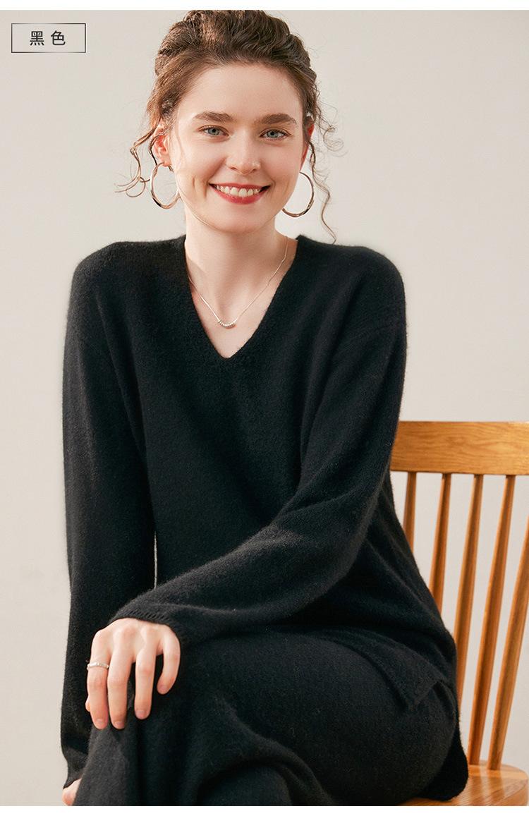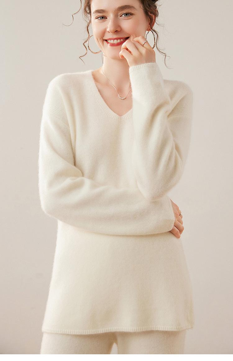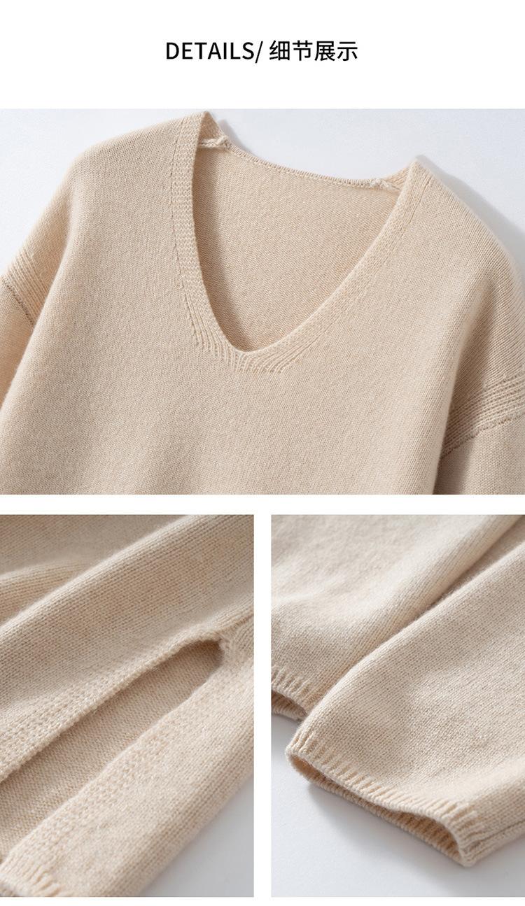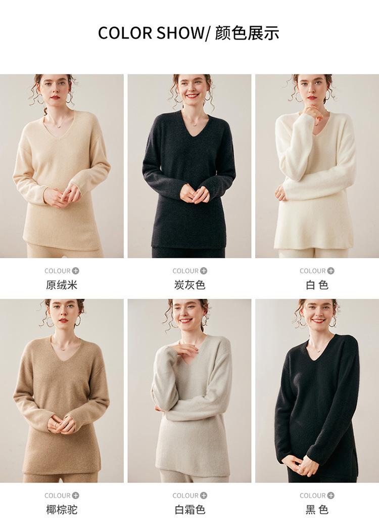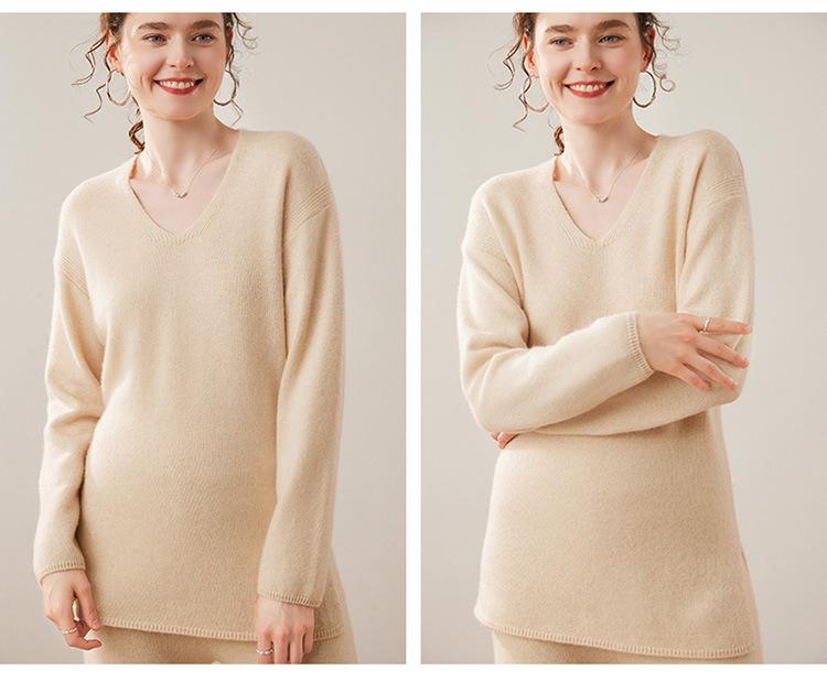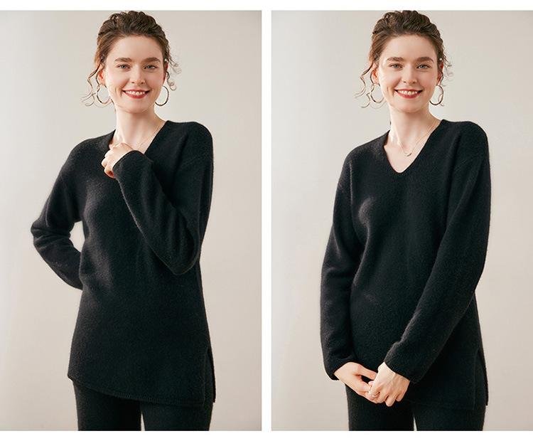 Suéter de Cachemira Grueso para Mujer Cuello en V Manga Larga Capa Base Otoño e Invierno Nuevo Suelto Adelgazante Color Sólido Suéter de Largo Medio