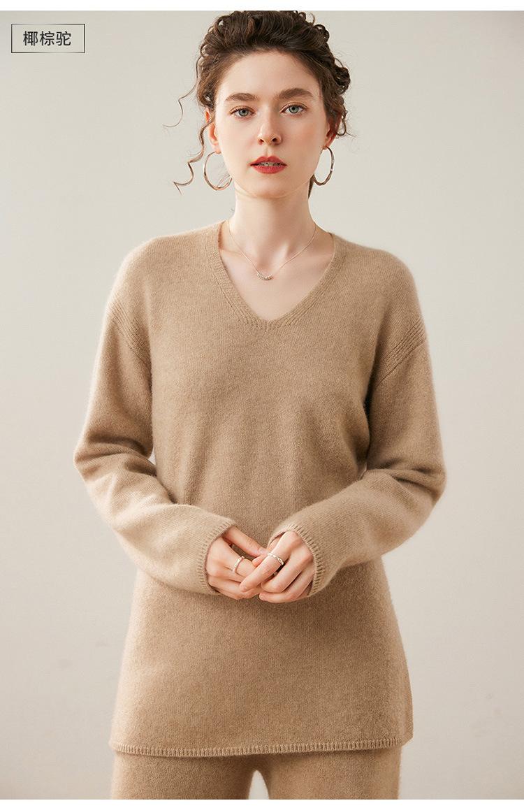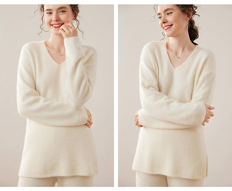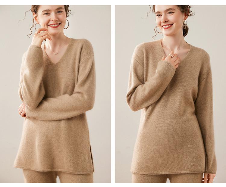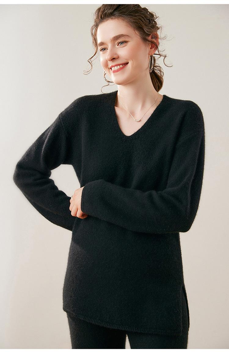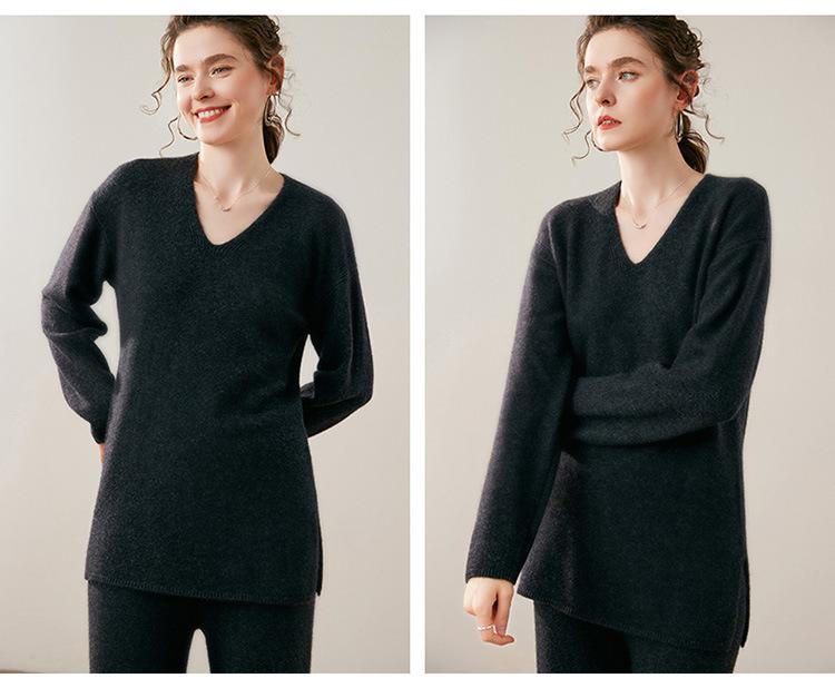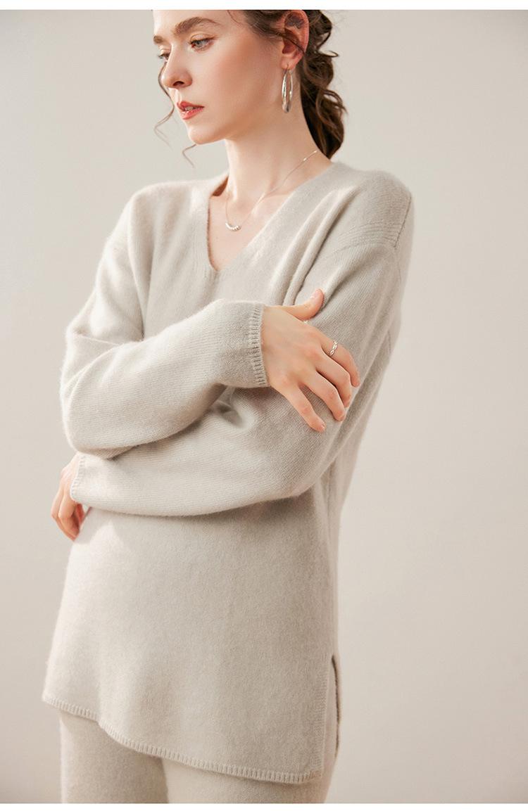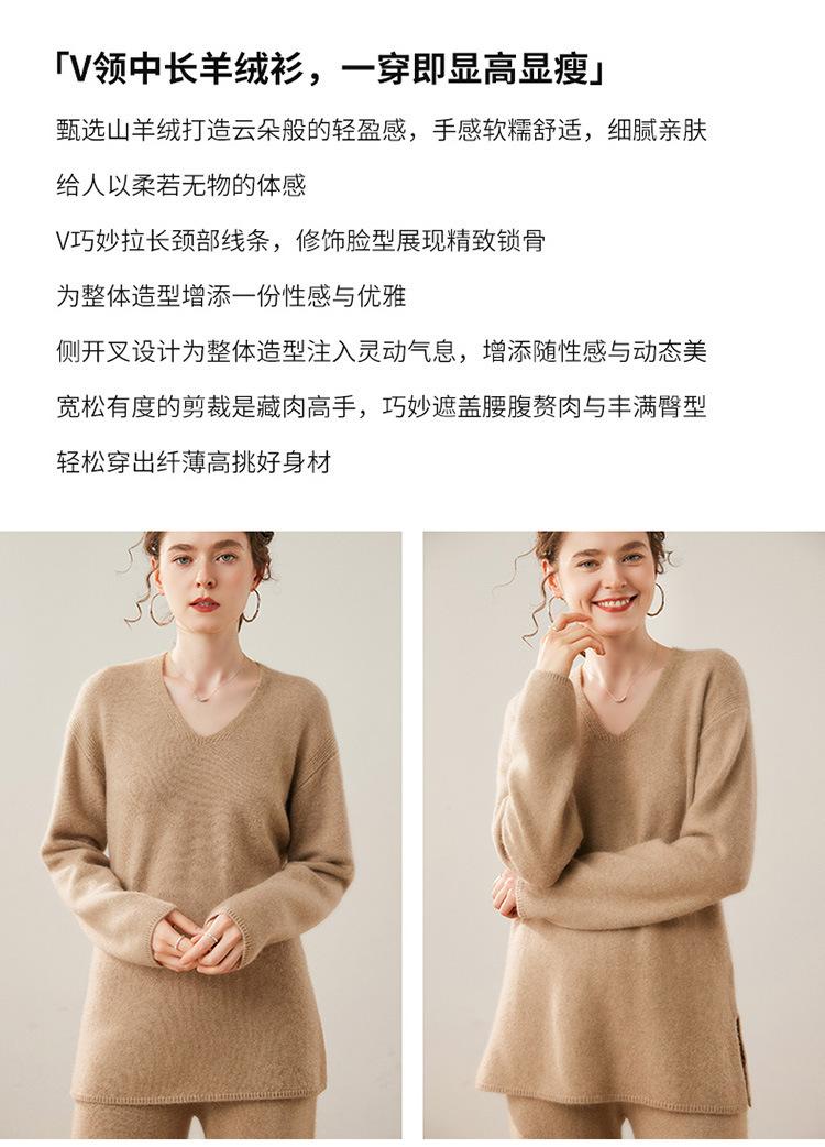 Suéter de Cachemira Grueso para Mujer Cuello en V Manga Larga Capa Base Otoño e Invierno Nuevo Suelto Adelgazante Color Sólido Suéter de Largo Medio