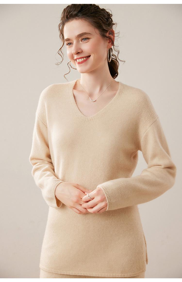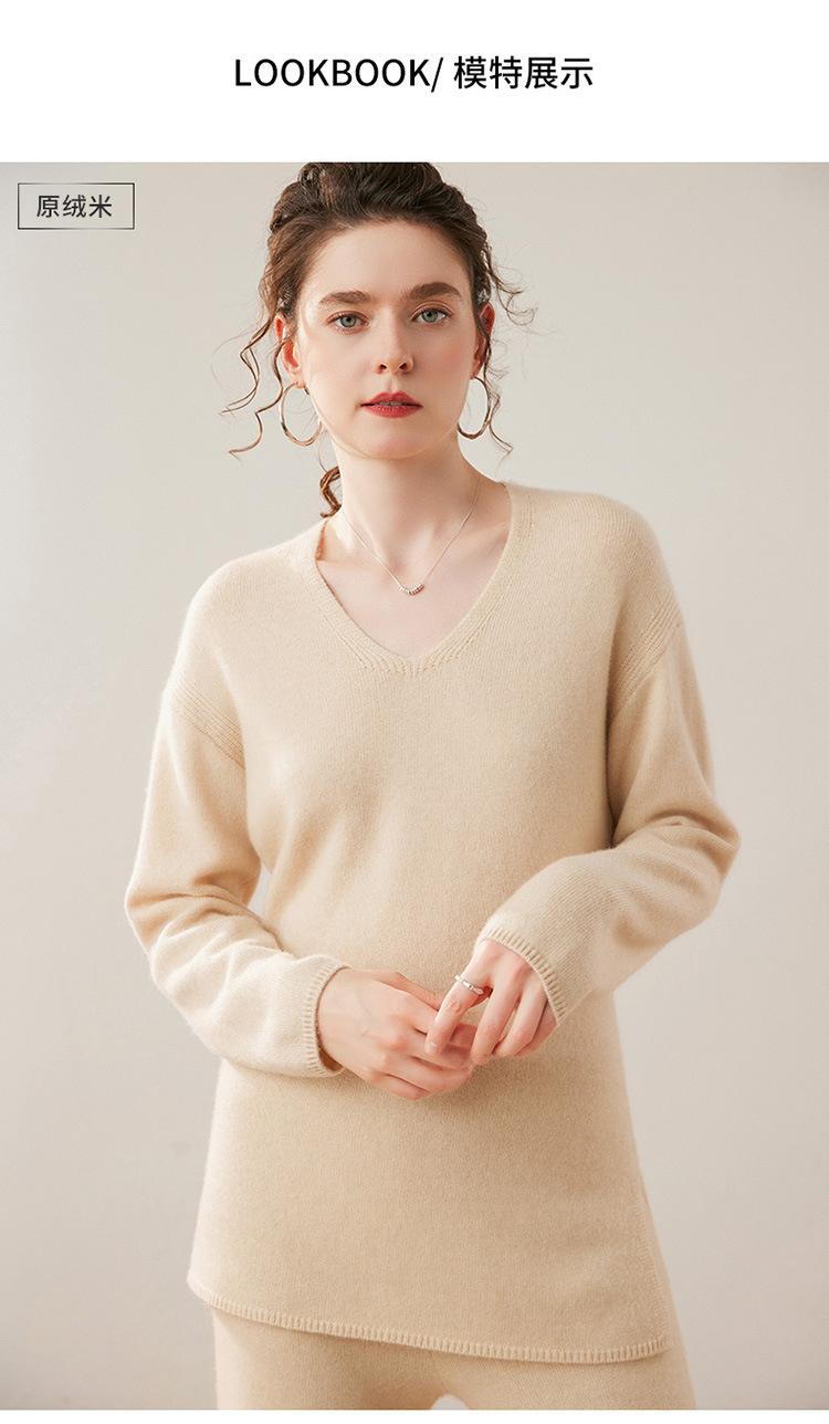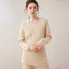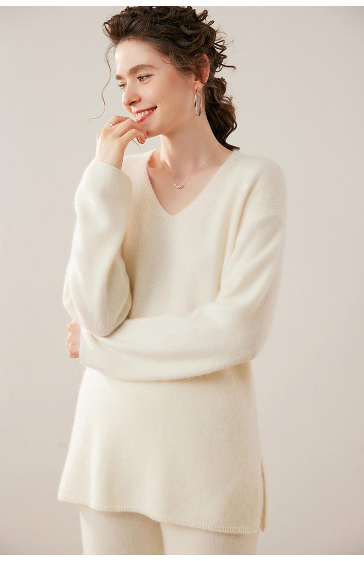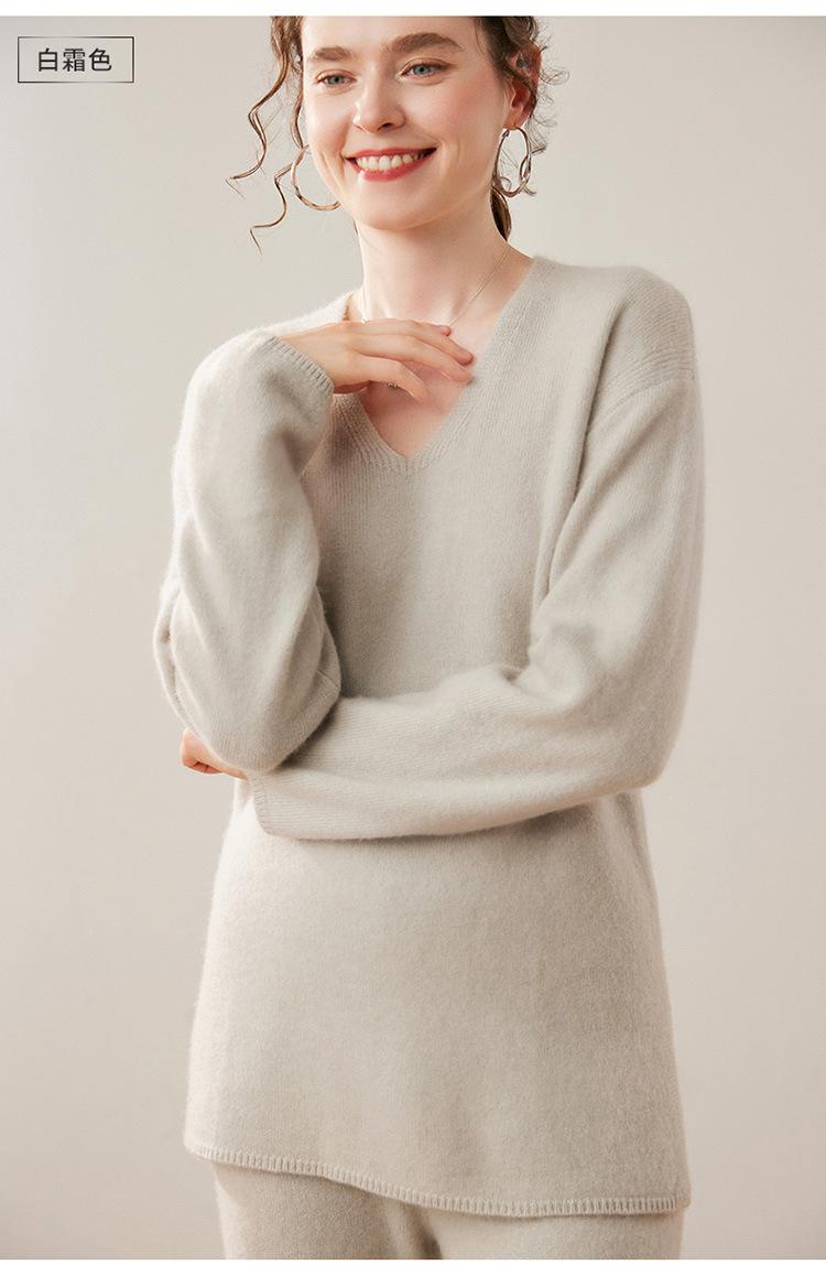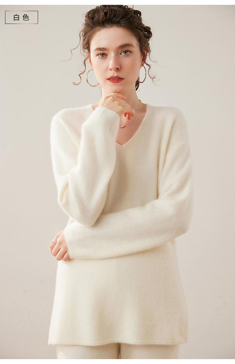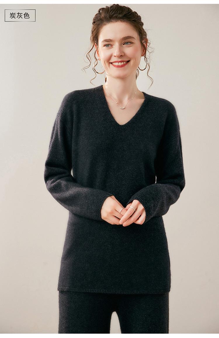 Suéter de Cachemira Grueso para Mujer Cuello en V Manga Larga Capa Base Otoño e Invierno Nuevo Suelto Adelgazante Color Sólido Suéter de Largo Medio