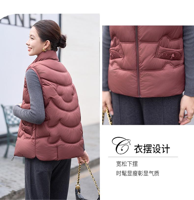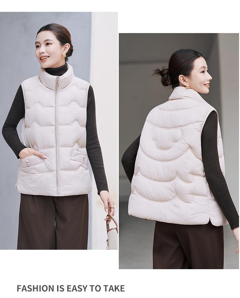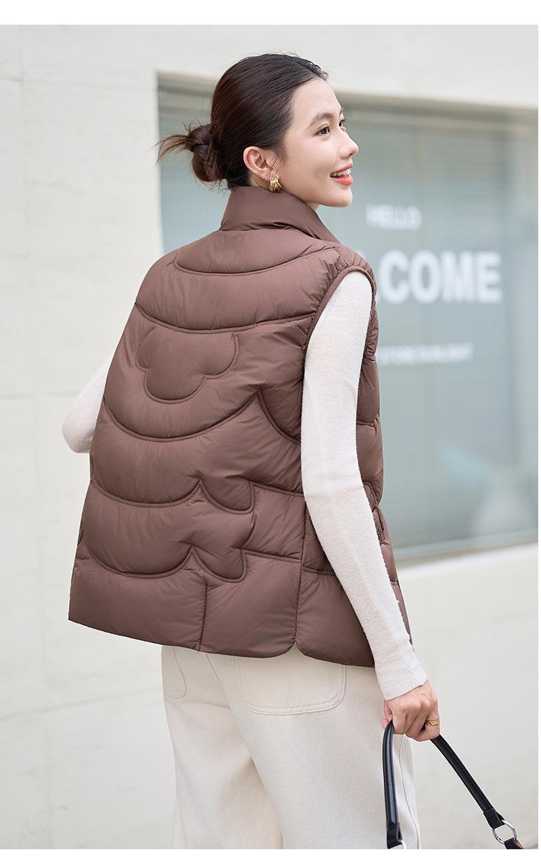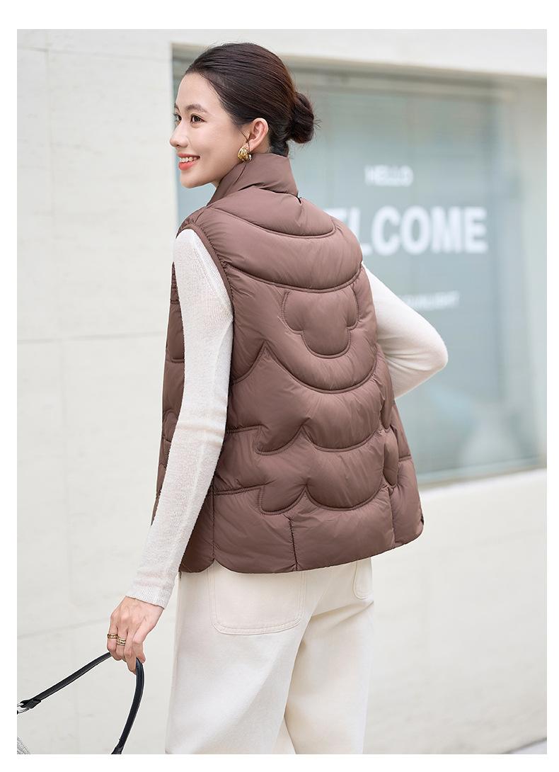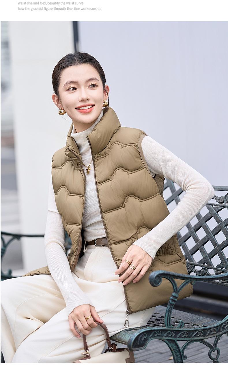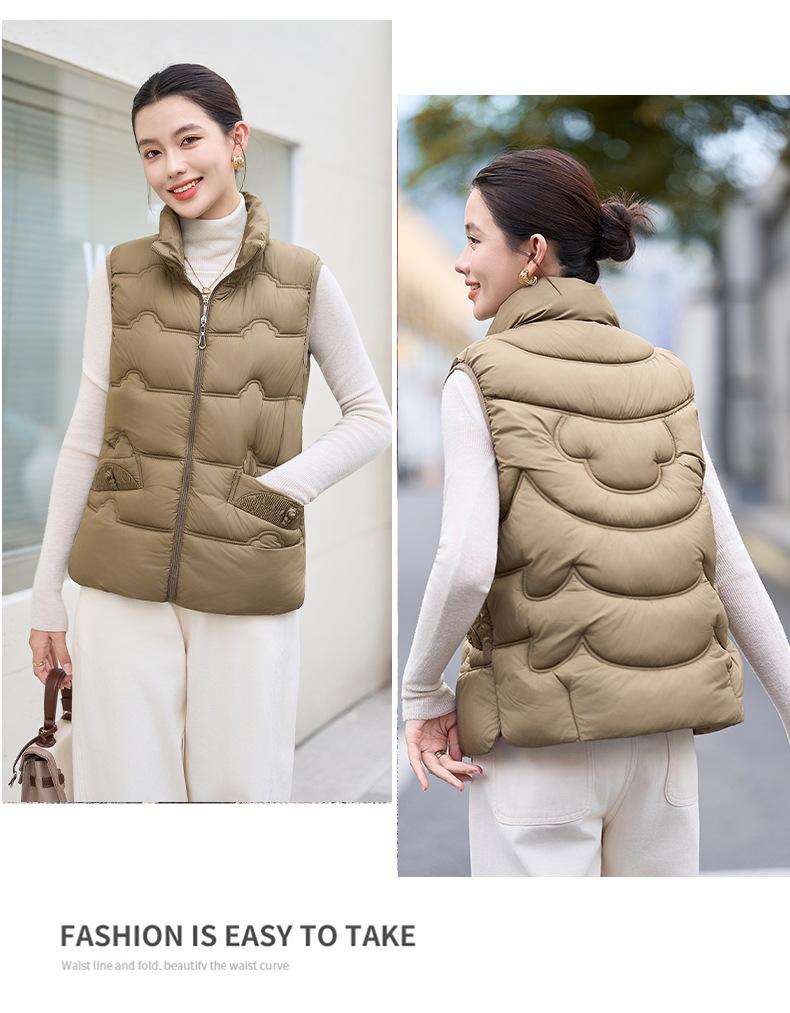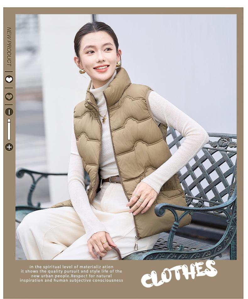 Chaleco de Algodón para Mujer Otoño e Invierno Nuevo Chaleco Corto de Algodón sin Mangas Suelto con Cuello Alto Versátil Adelgazante Ropa Exterior