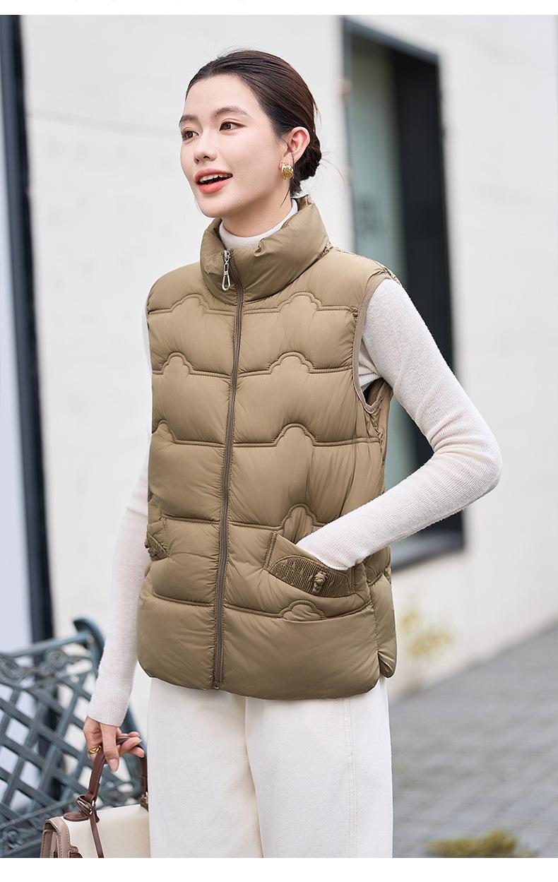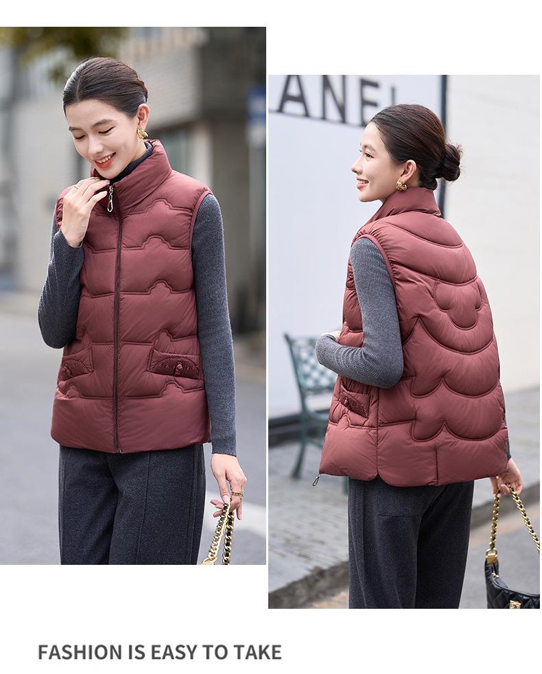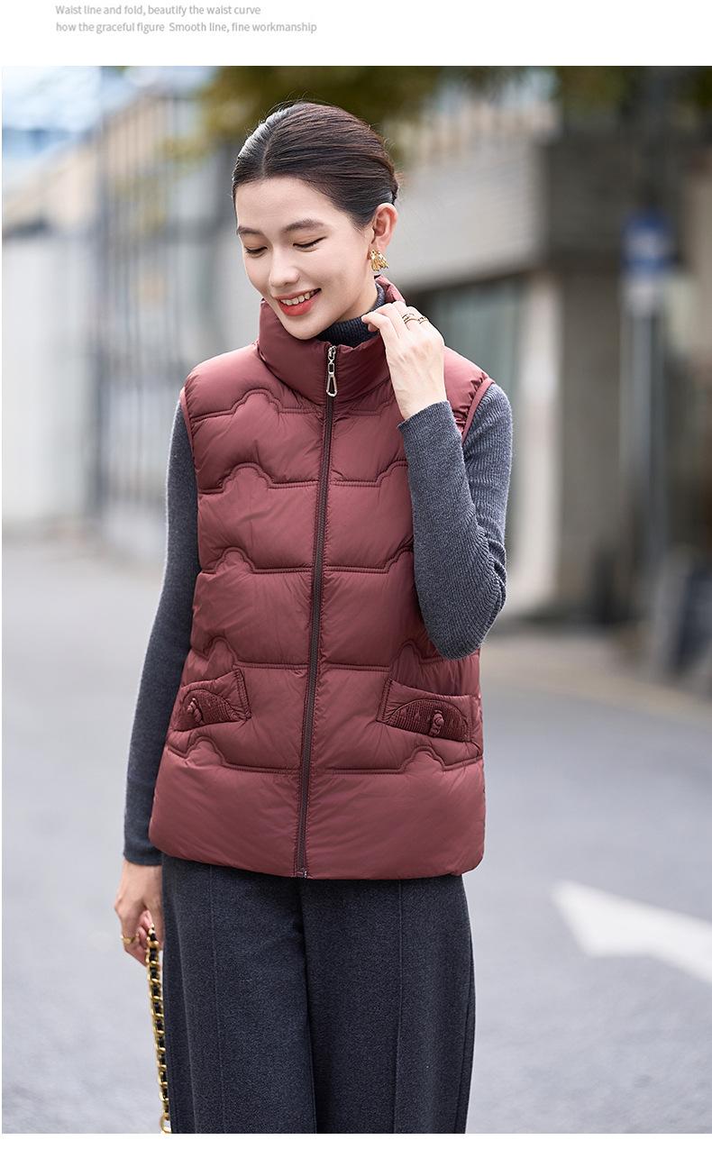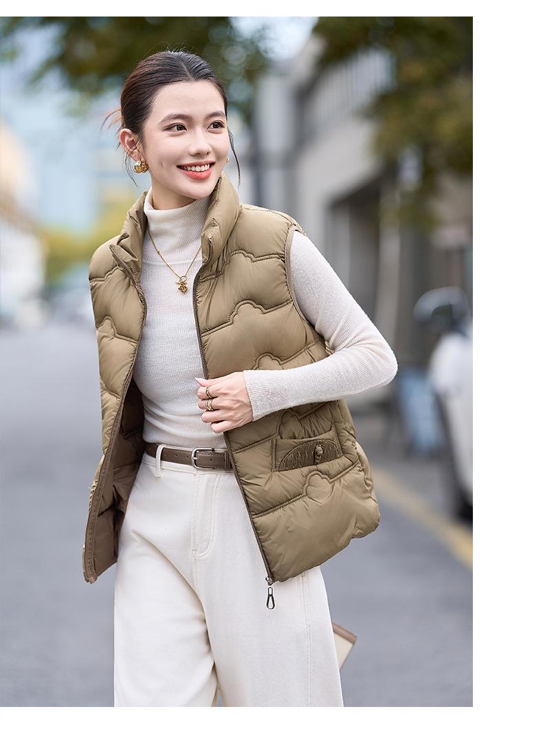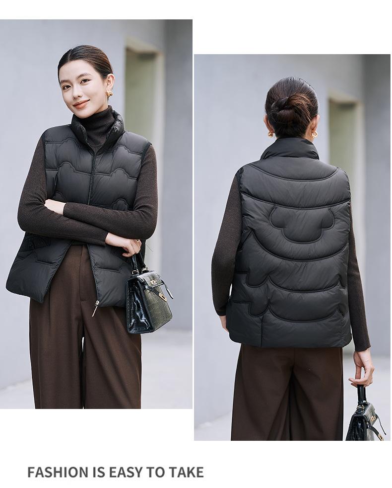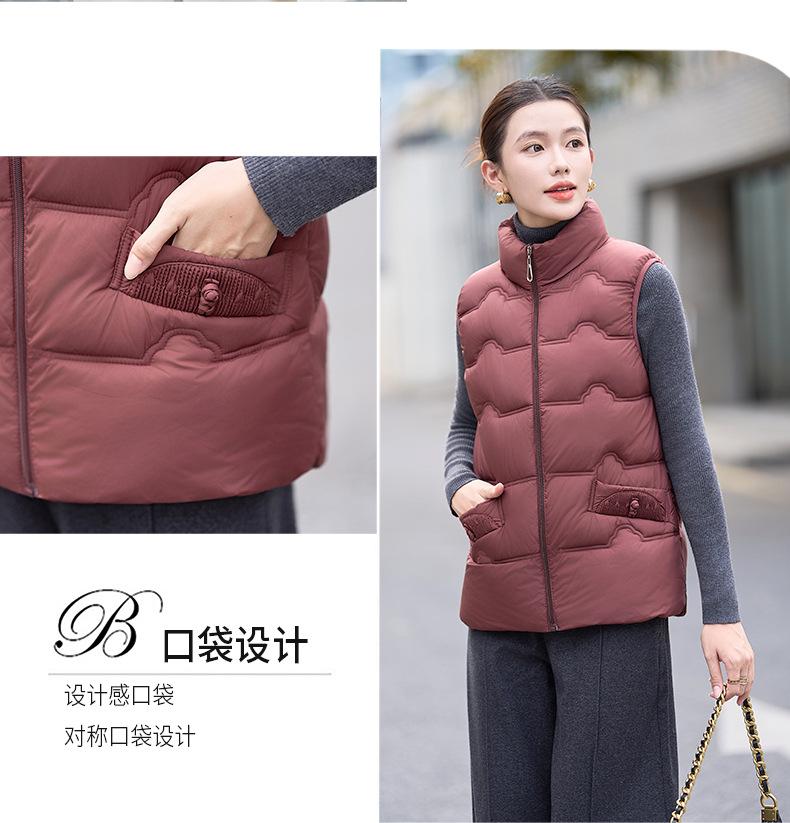 Chaleco de Algodón para Mujer Otoño e Invierno Nuevo Chaleco Corto de Algodón sin Mangas Suelto con Cuello Alto Versátil Adelgazante Ropa Exterior
