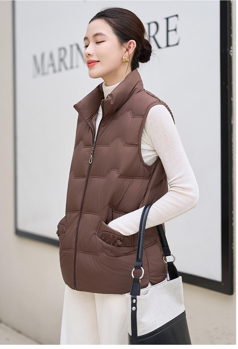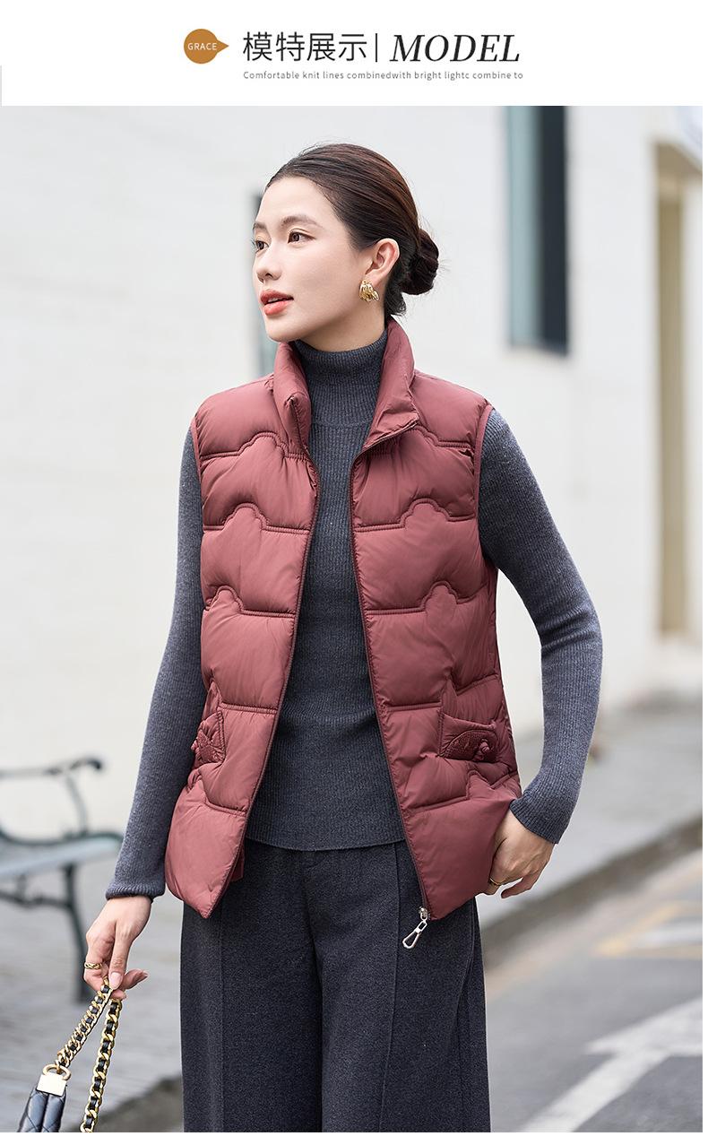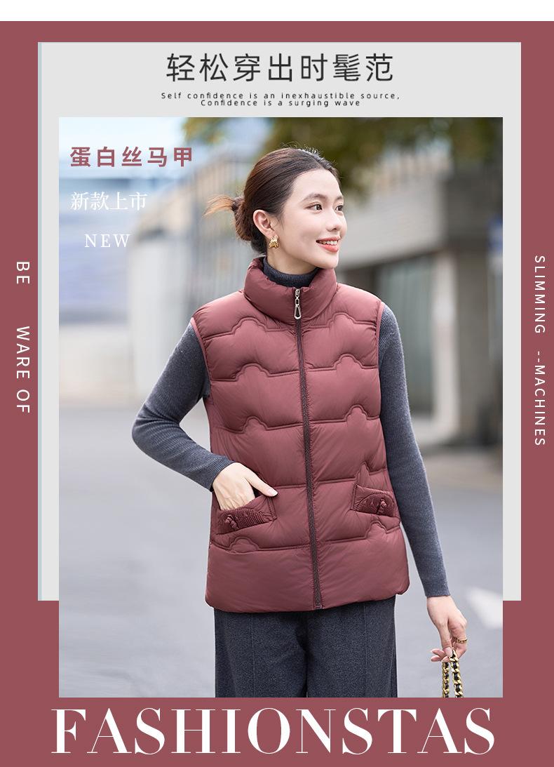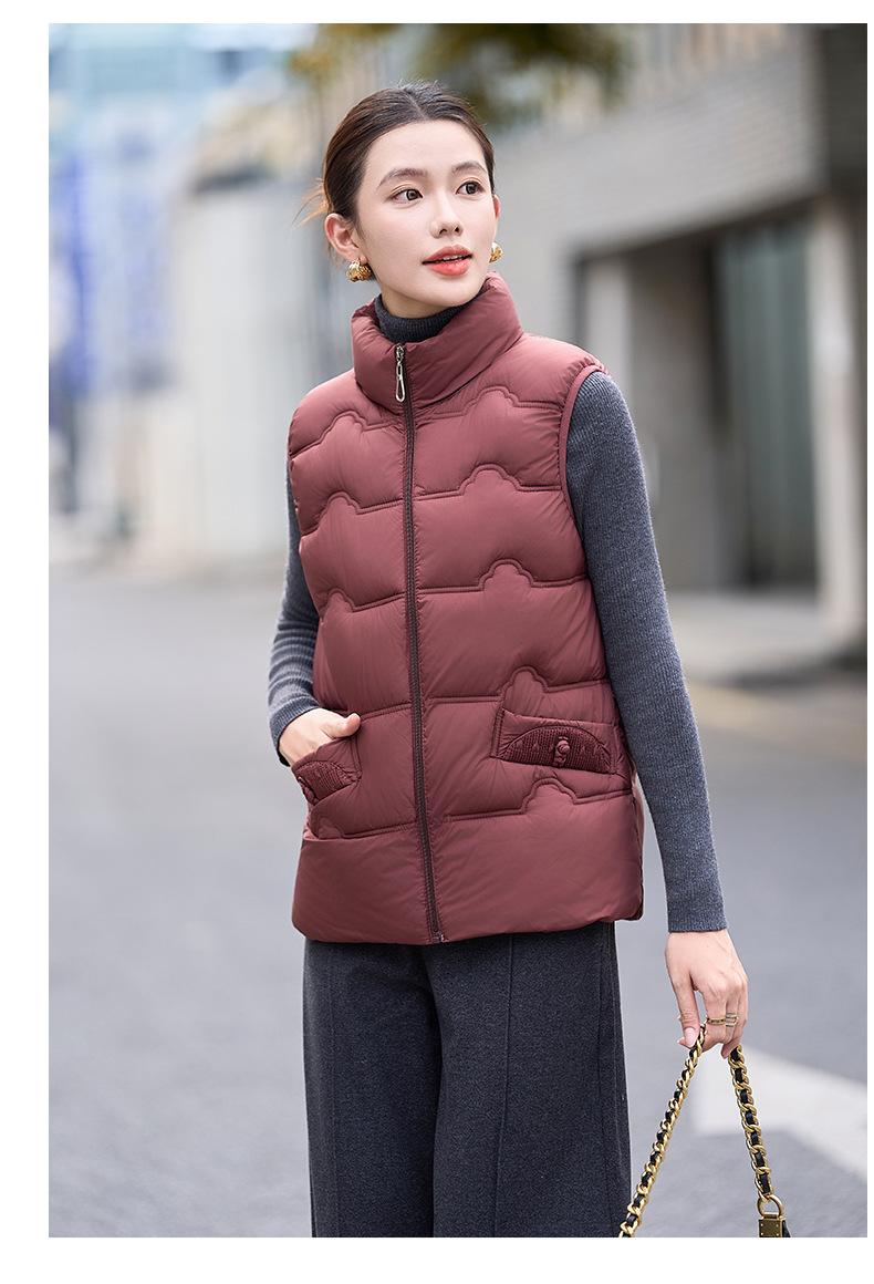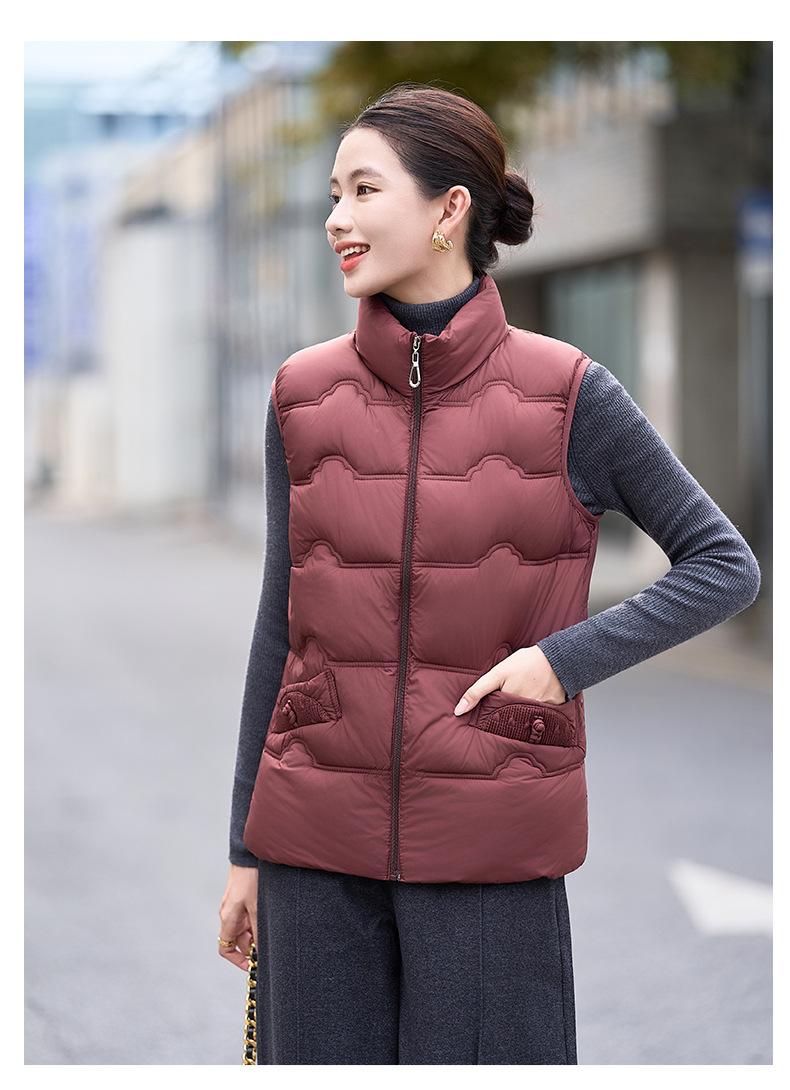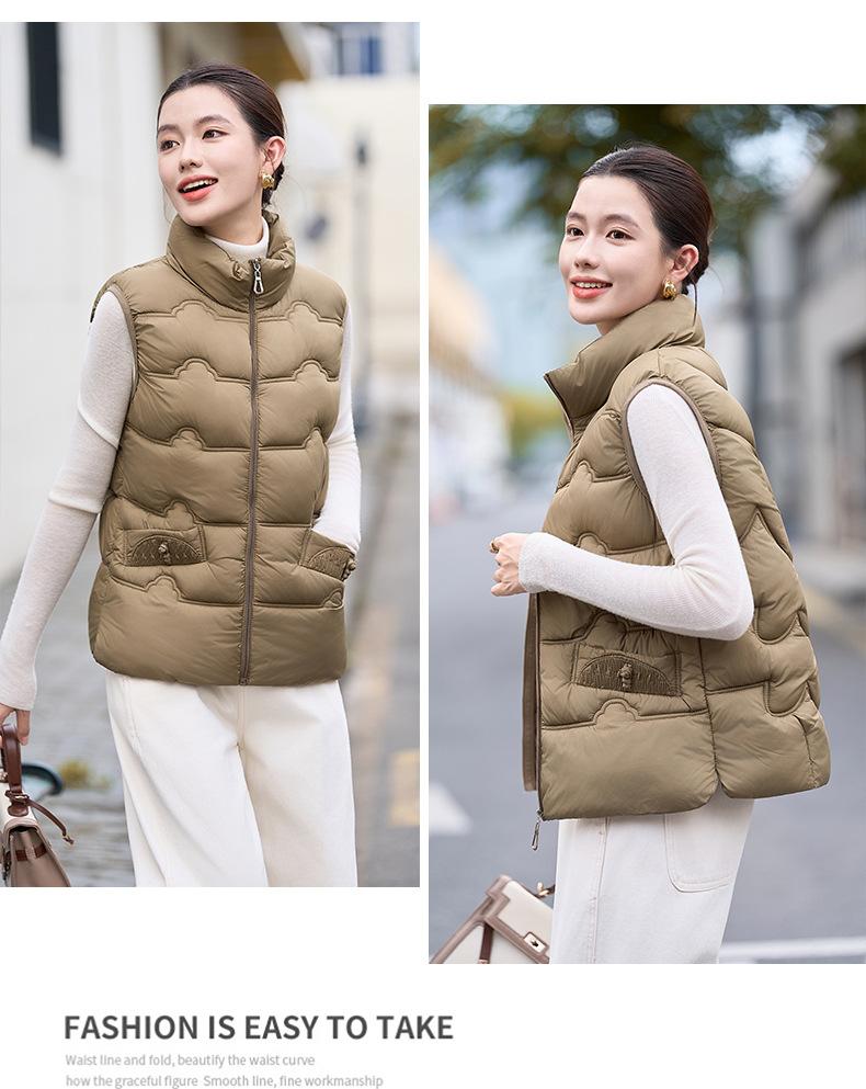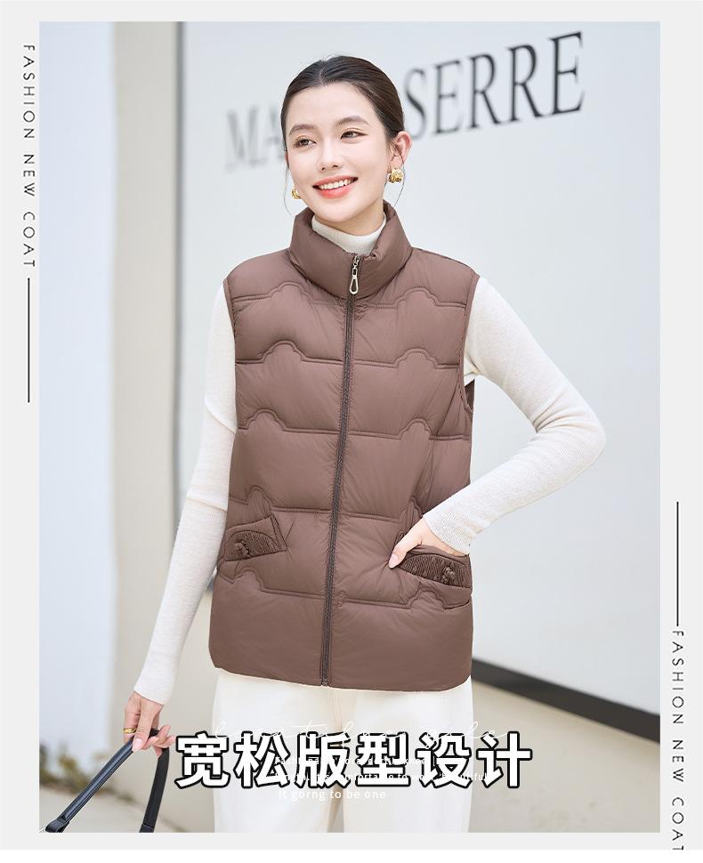 Chaleco de Algodón para Mujer Otoño e Invierno Nuevo Chaleco Corto de Algodón sin Mangas Suelto con Cuello Alto Versátil Adelgazante Ropa Exterior