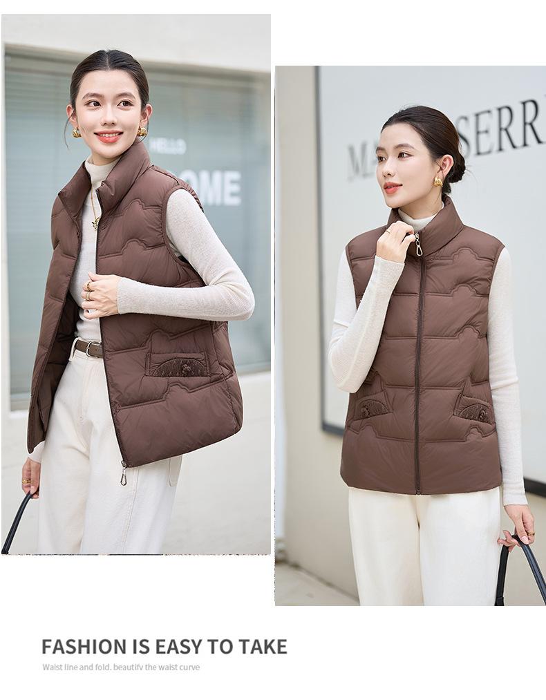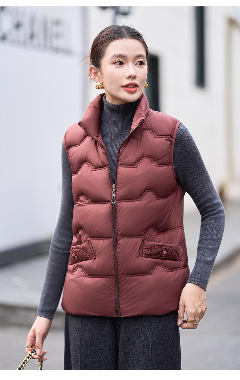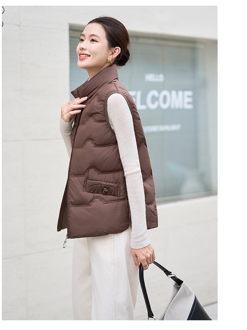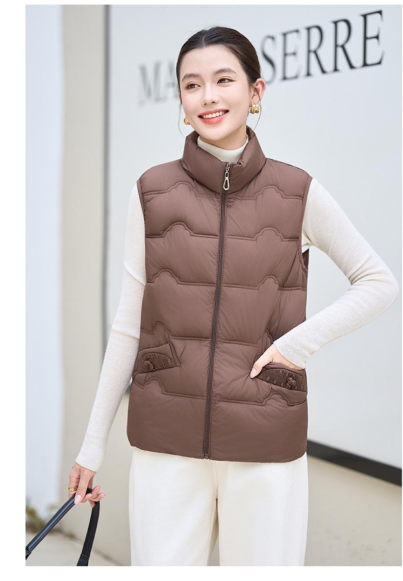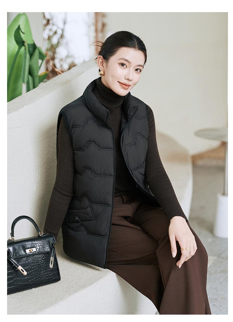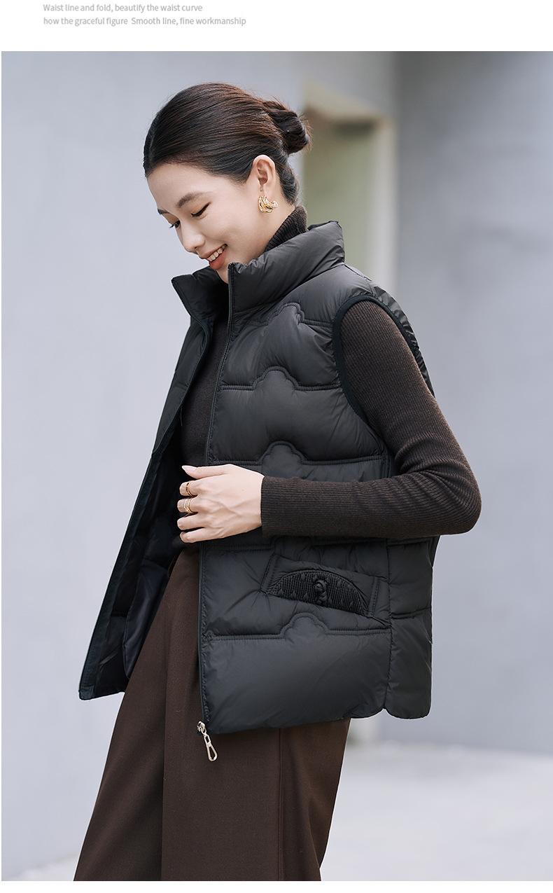 Chaleco de Algodón para Mujer Otoño e Invierno Nuevo Chaleco Corto de Algodón sin Mangas Suelto con Cuello Alto Versátil Adelgazante Ropa Exterior