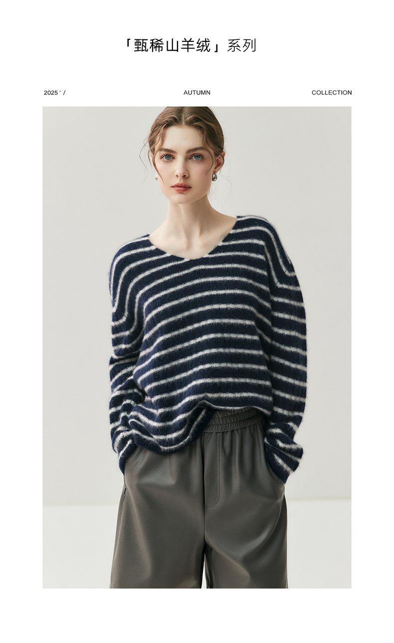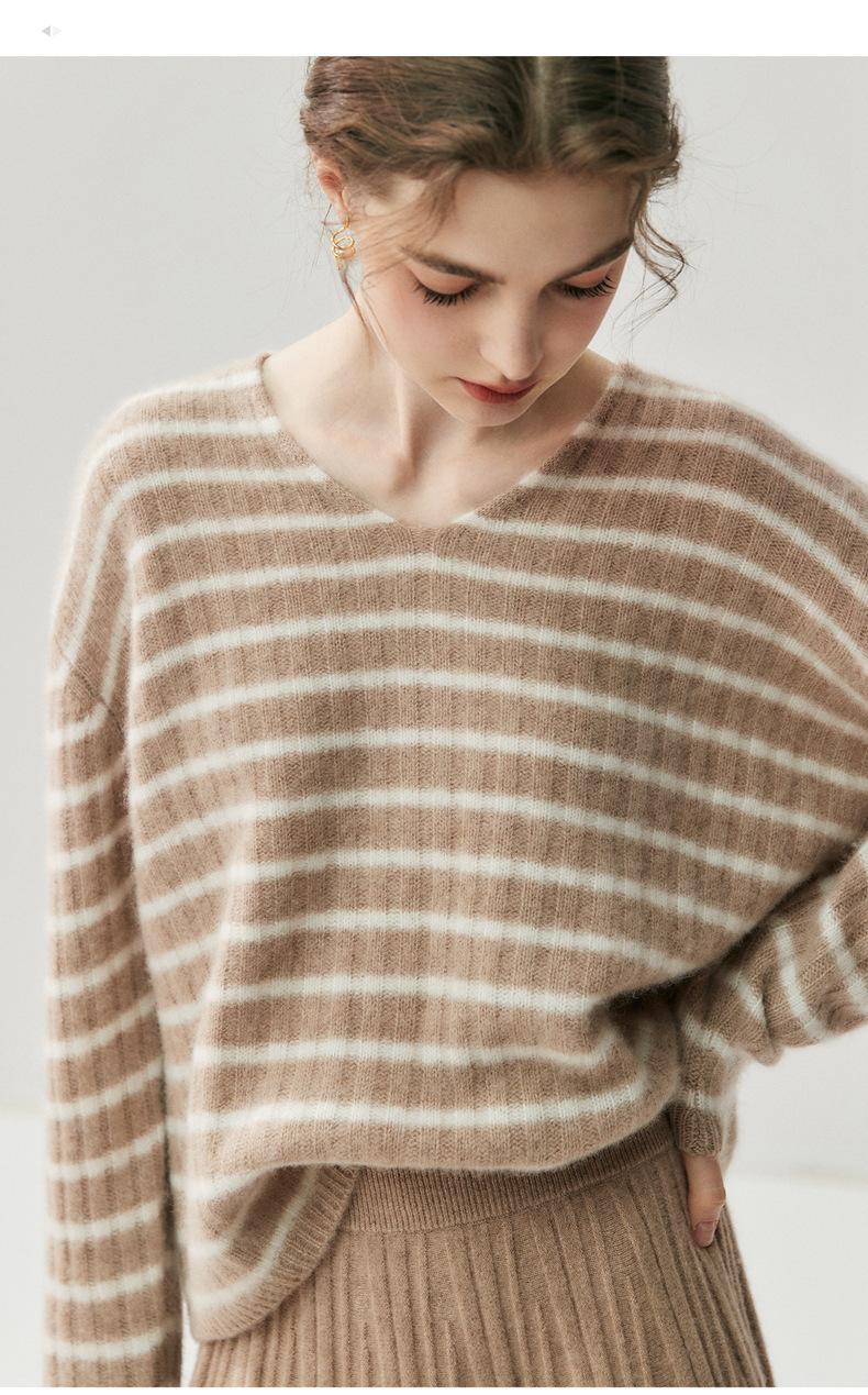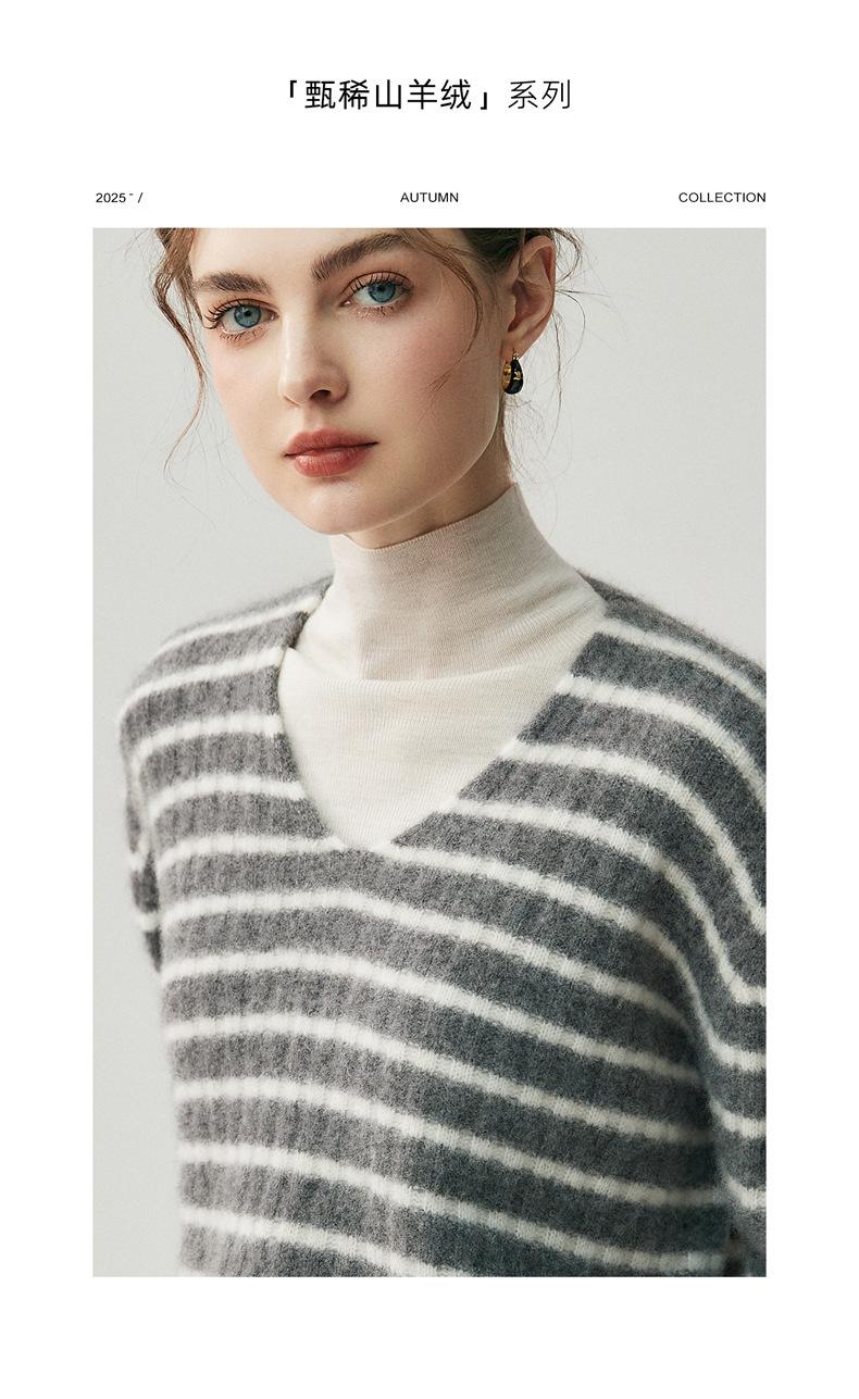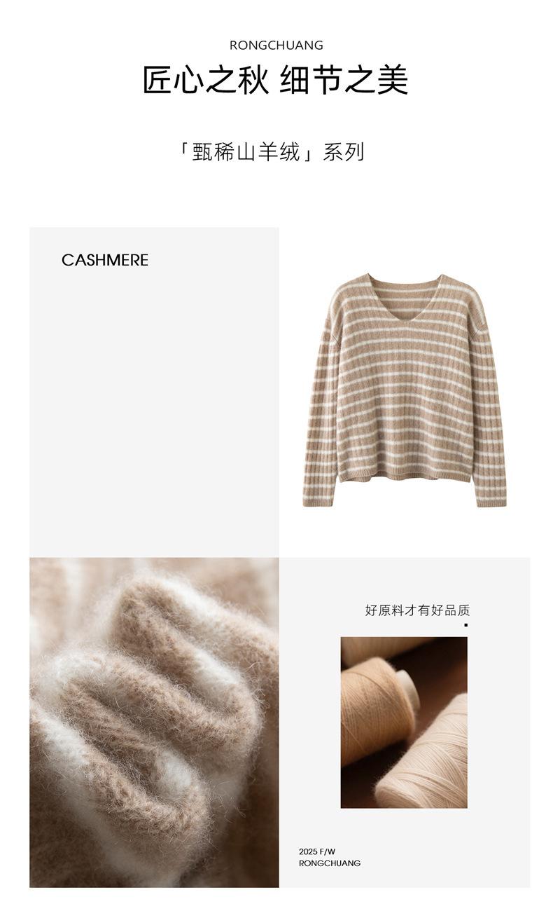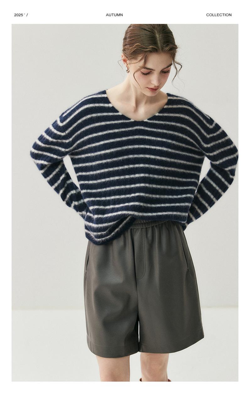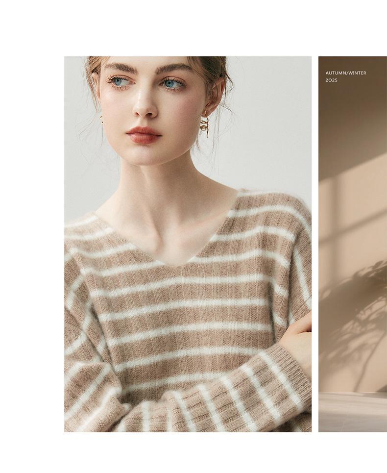 Suéter de Cachemira Holgado y Perezoso de Moda Europea y Americana para Mujer, Tejido de Punto a Rayas, Otoño/Invierno 2025, Top Corto con Bloque de Color y Cuello en V