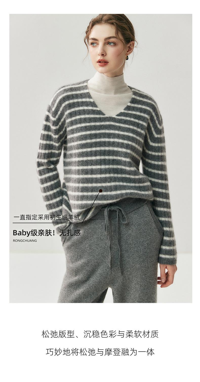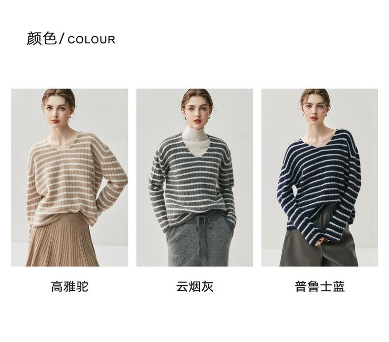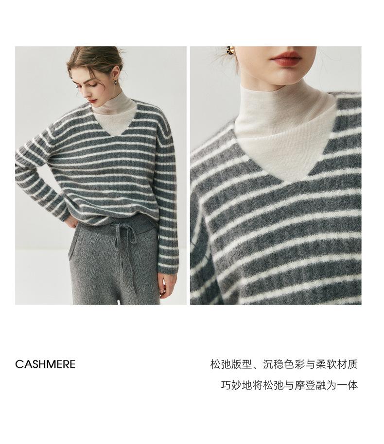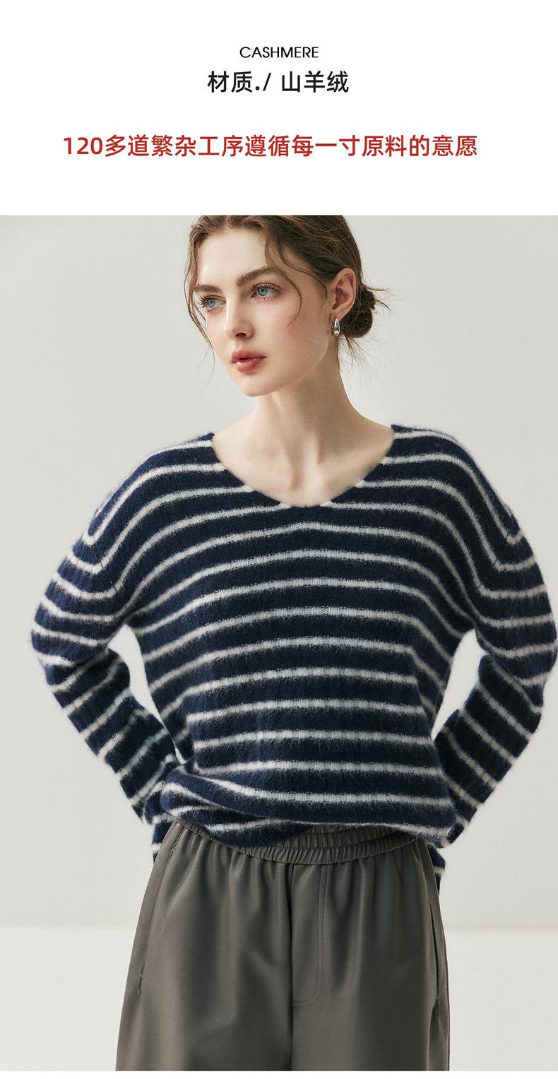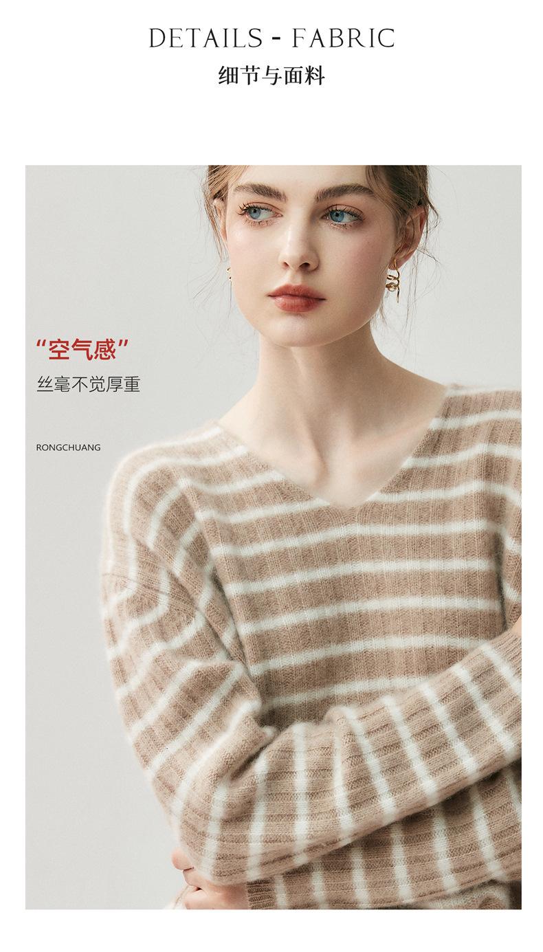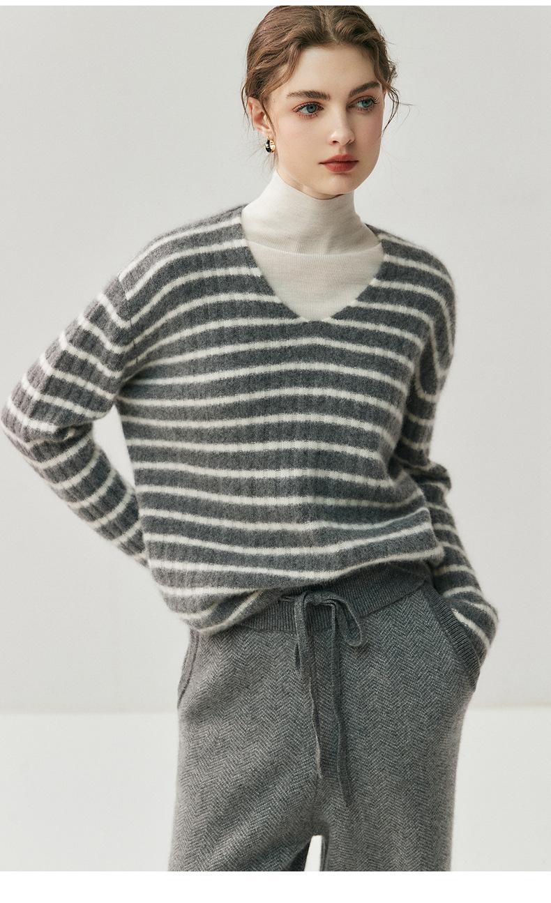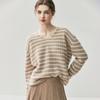 Suéter de Cachemira Holgado y Perezoso de Moda Europea y Americana para Mujer, Tejido de Punto a Rayas, Otoño/Invierno 2025, Top Corto con Bloque de Color y Cuello en V