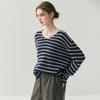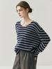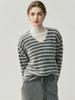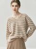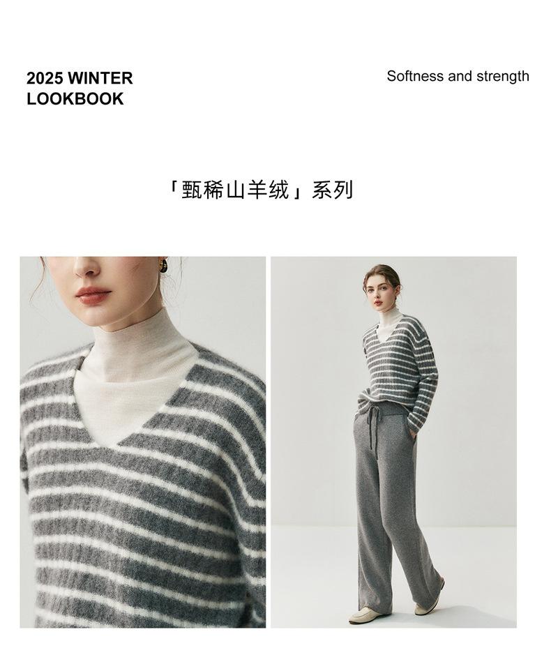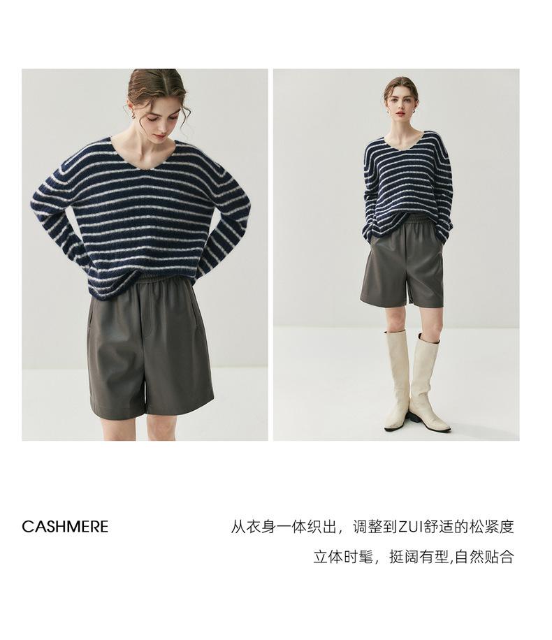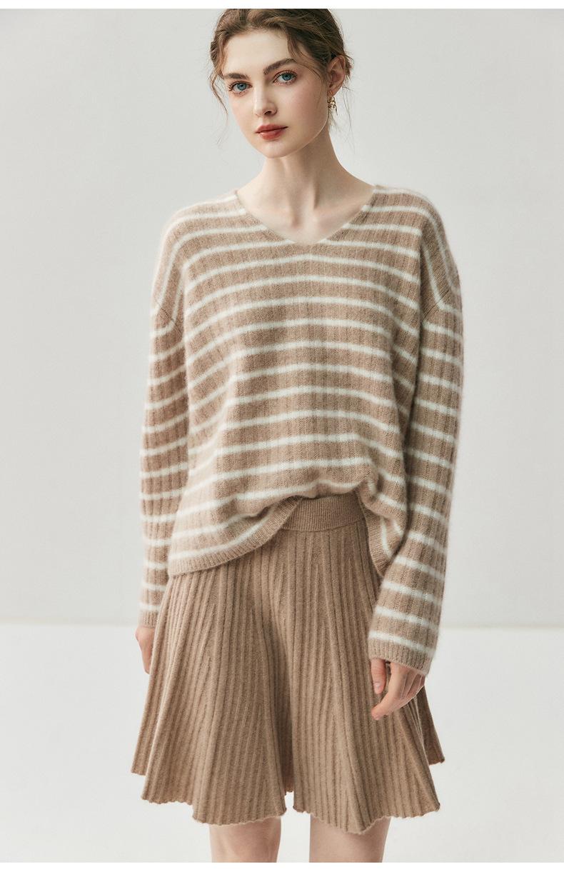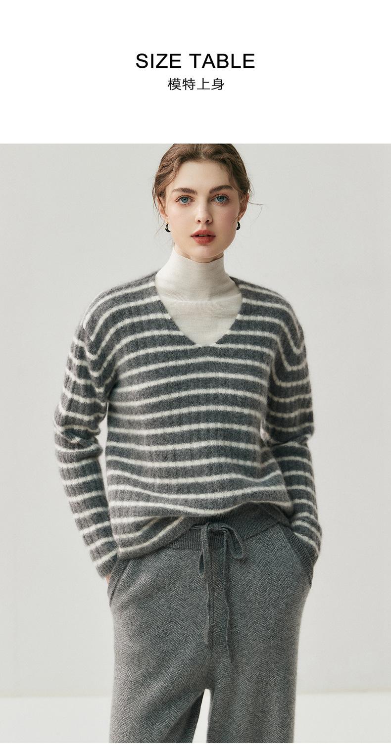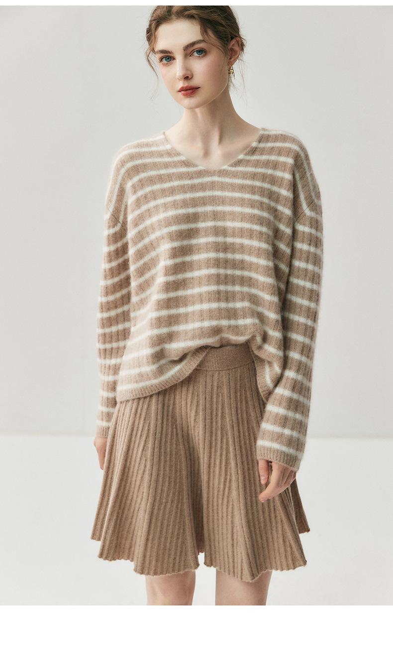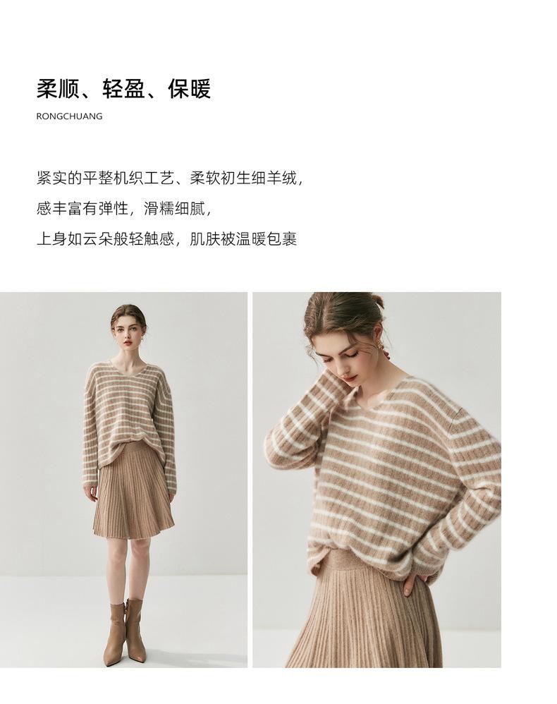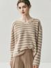 Suéter de Cachemira Holgado y Perezoso de Moda Europea y Americana para Mujer, Tejido de Punto a Rayas, Otoño/Invierno 2025, Top Corto con Bloque de Color y Cuello en V