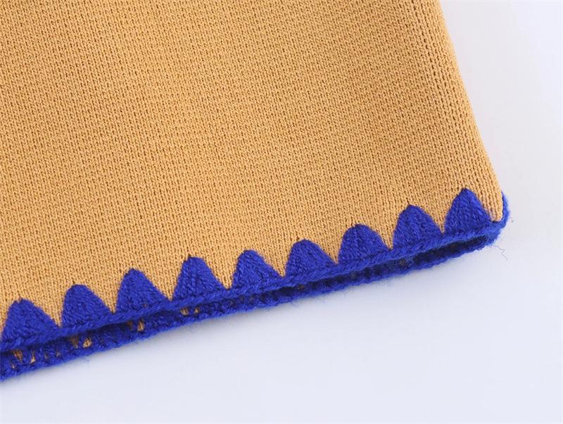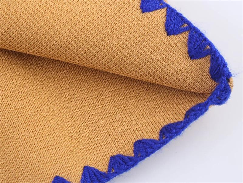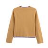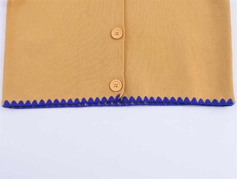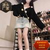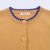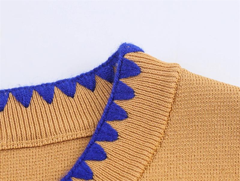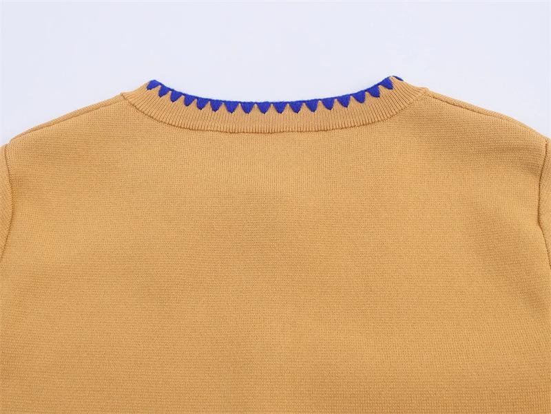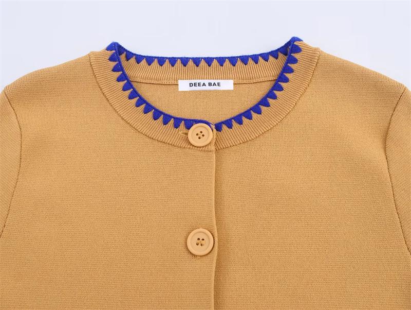 Cárdigan corto de punto de estilo europeo y americano con bloques de color bordados, cuello redondo y abotonadura sencilla, nuevo de otoño, versátil y ajustado