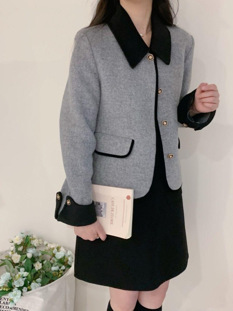 Nuevo Abrigo Corto Estilo Chanel Pequeño Otoño/Invierno Temperamento de Pequeña Socialité Nuevo Cárdigan de Punto Francés Doble Faz