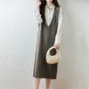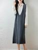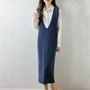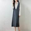 2025 nuevo estilo chaleco de punto de lana pura para mujer punto cuatro planos cuello en V holgado color sólido casual sin mangas cárdigan largo simple
