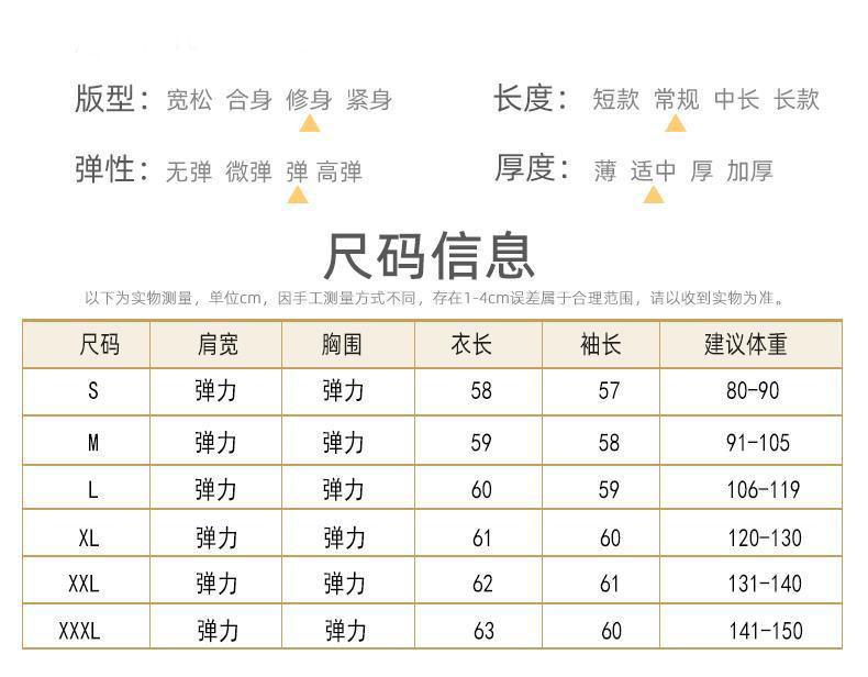 S Recommended 80-90 catties, M Recommended 91-105 catties, L Recommended 106-119 catties, XL recommended for 1...
