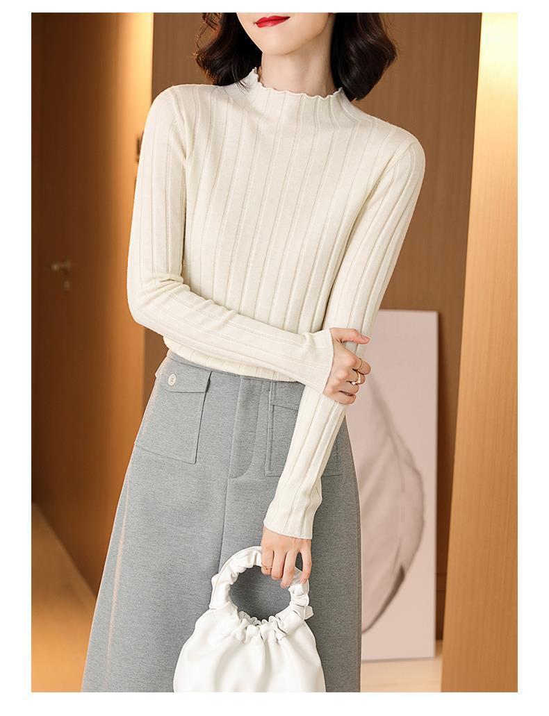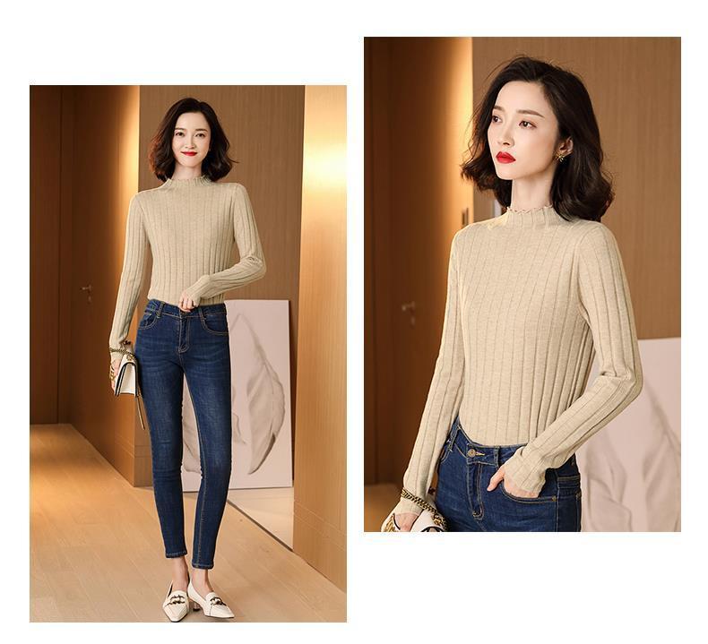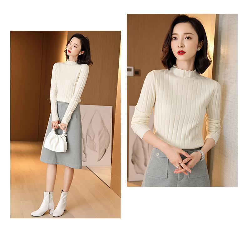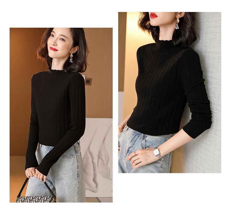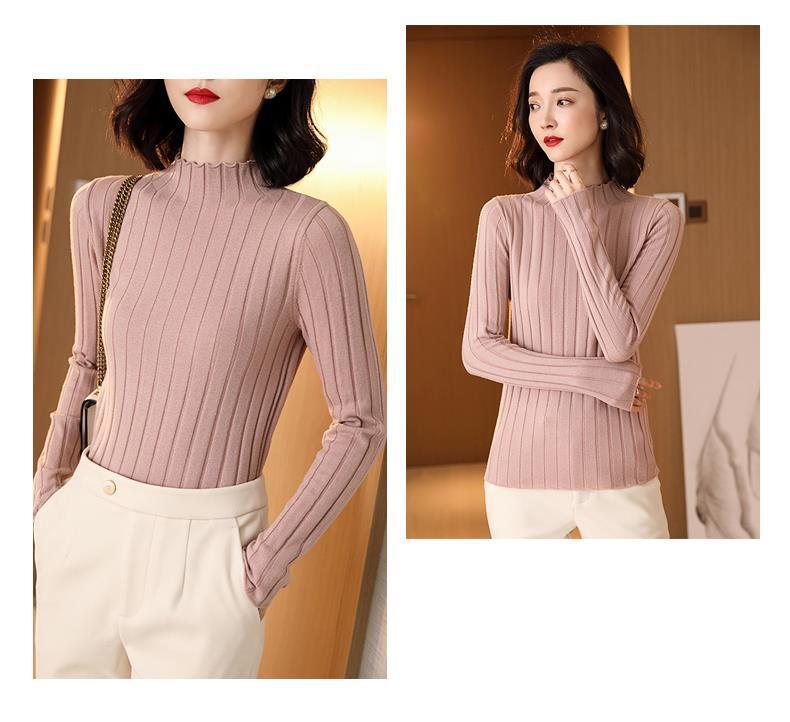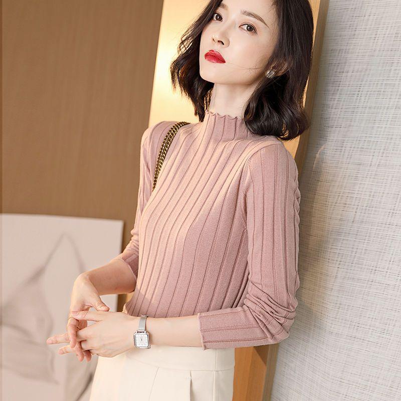 Suéter Básico de Cuello Medio Alto para Mujer Ropa Interior Top Ajustado 2025 Nuevo Otoño Invierno Ropa Exterior Estilo Coreano Top de Punto de Manga Larga