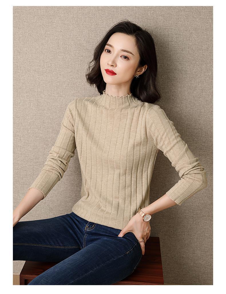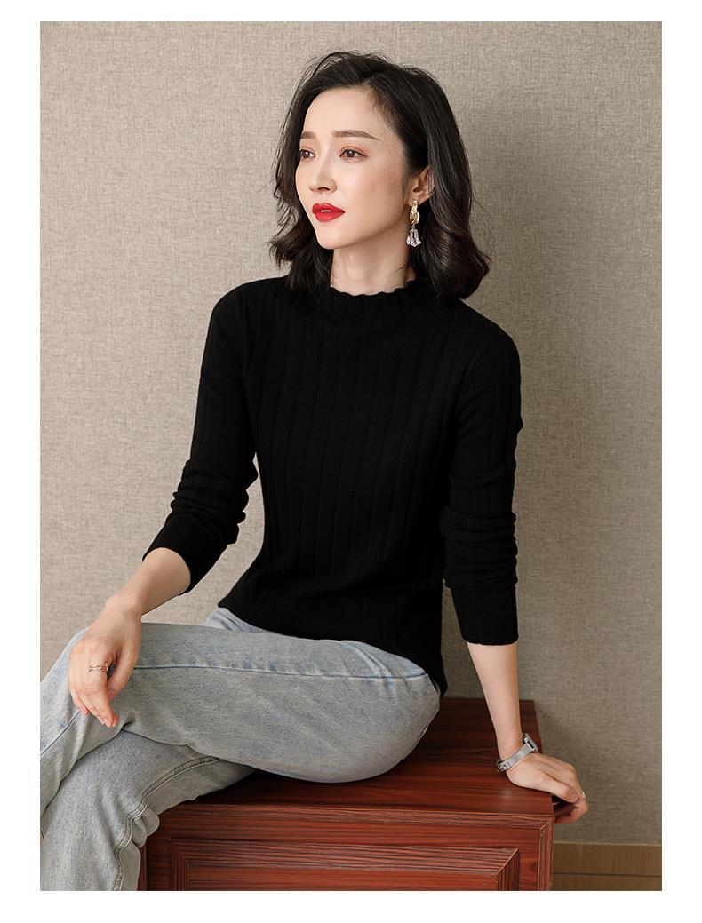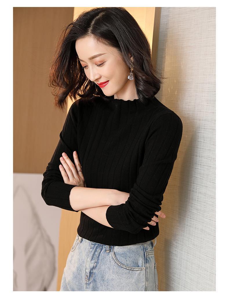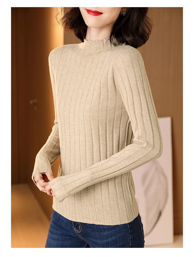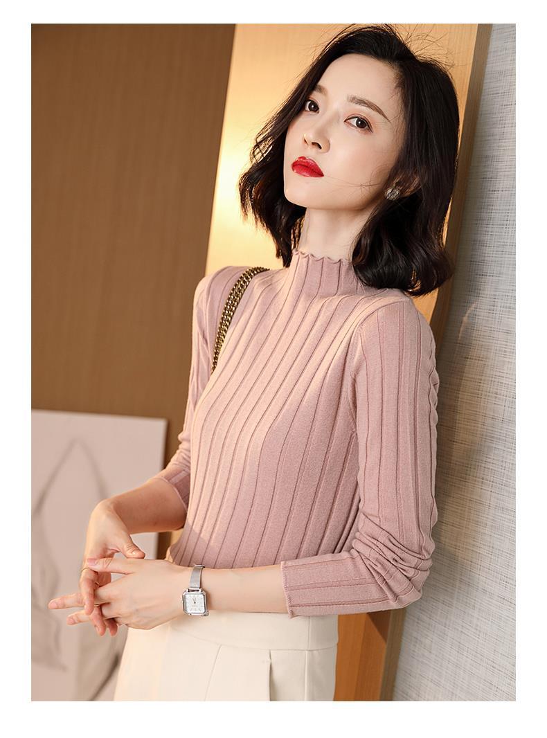 Suéter Básico de Cuello Medio Alto para Mujer Ropa Interior Top Ajustado 2025 Nuevo Otoño Invierno Ropa Exterior Estilo Coreano Top de Punto de Manga Larga