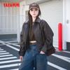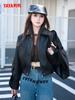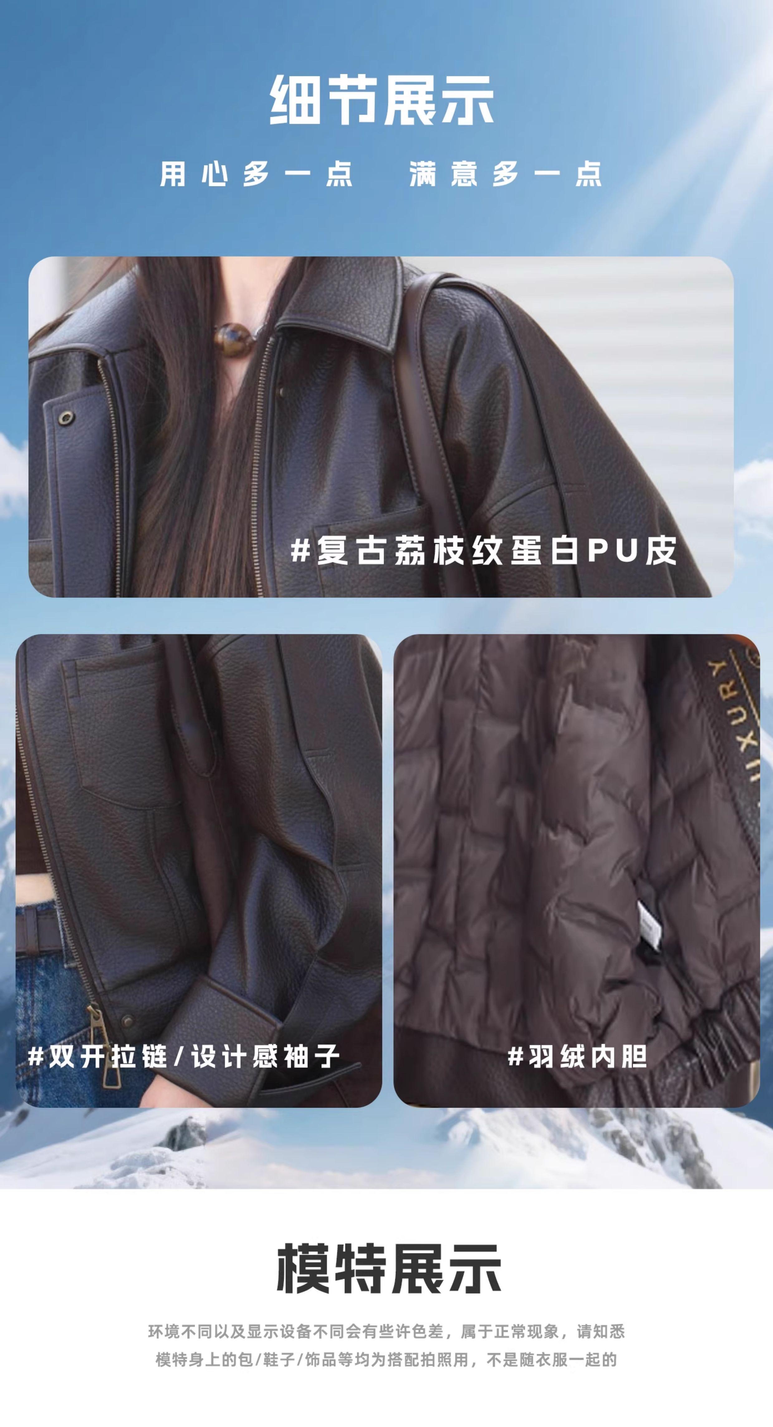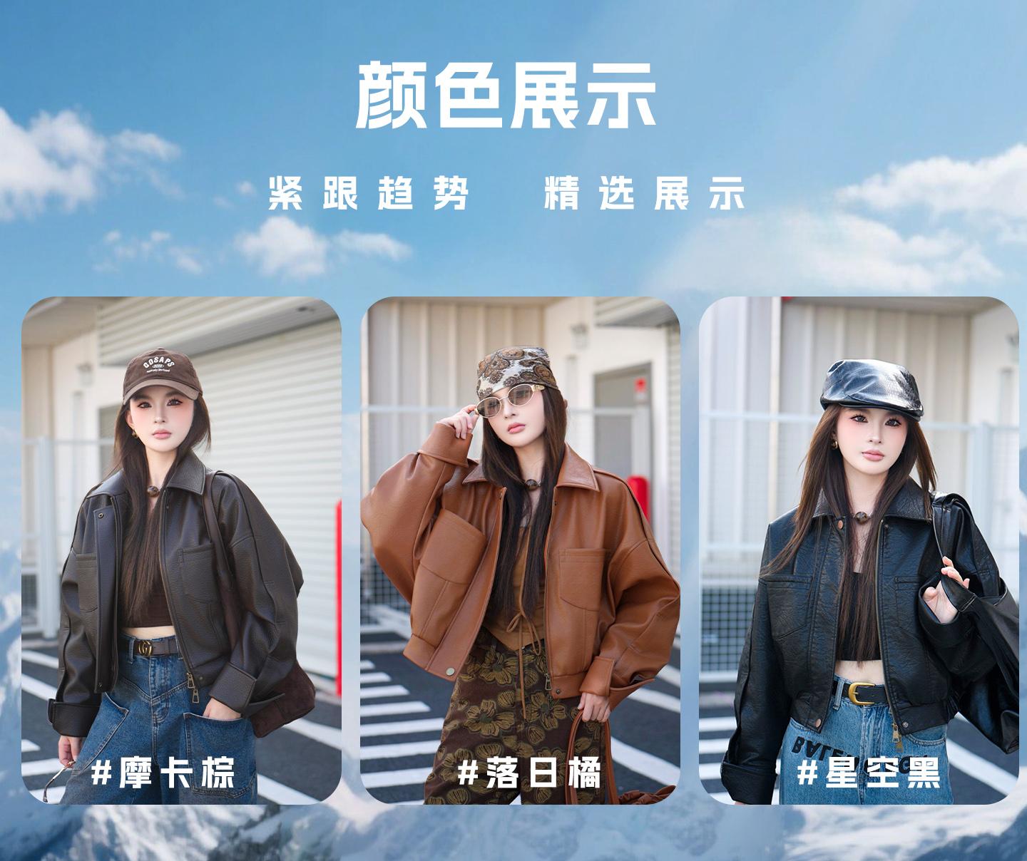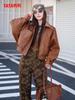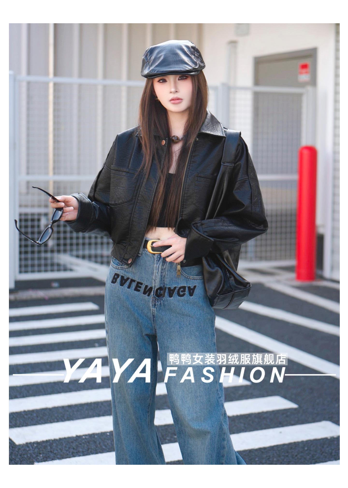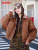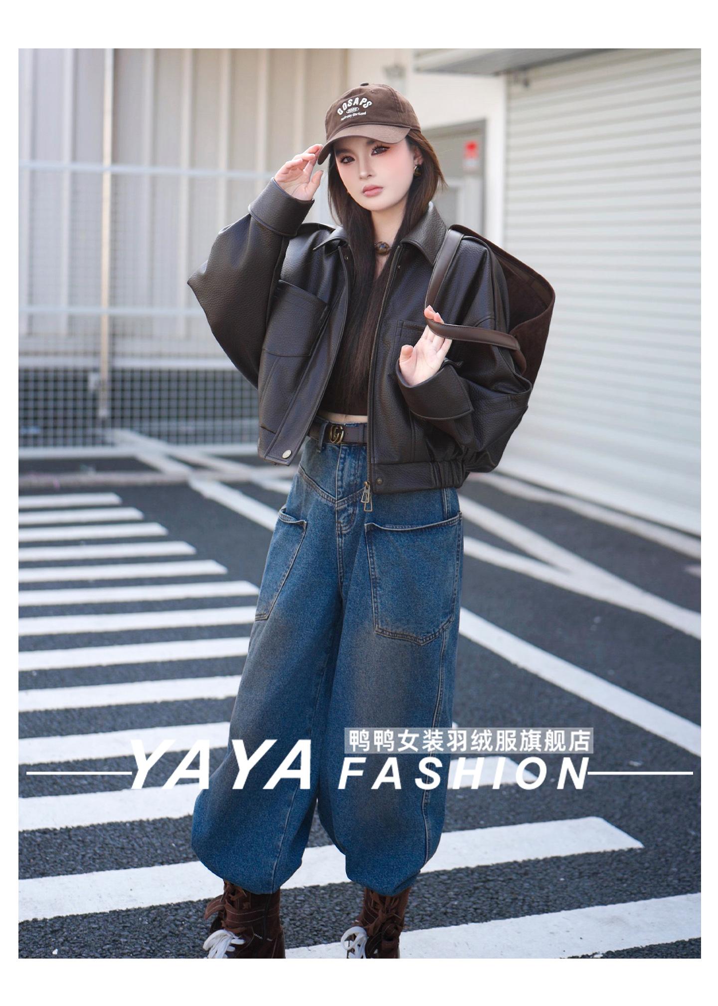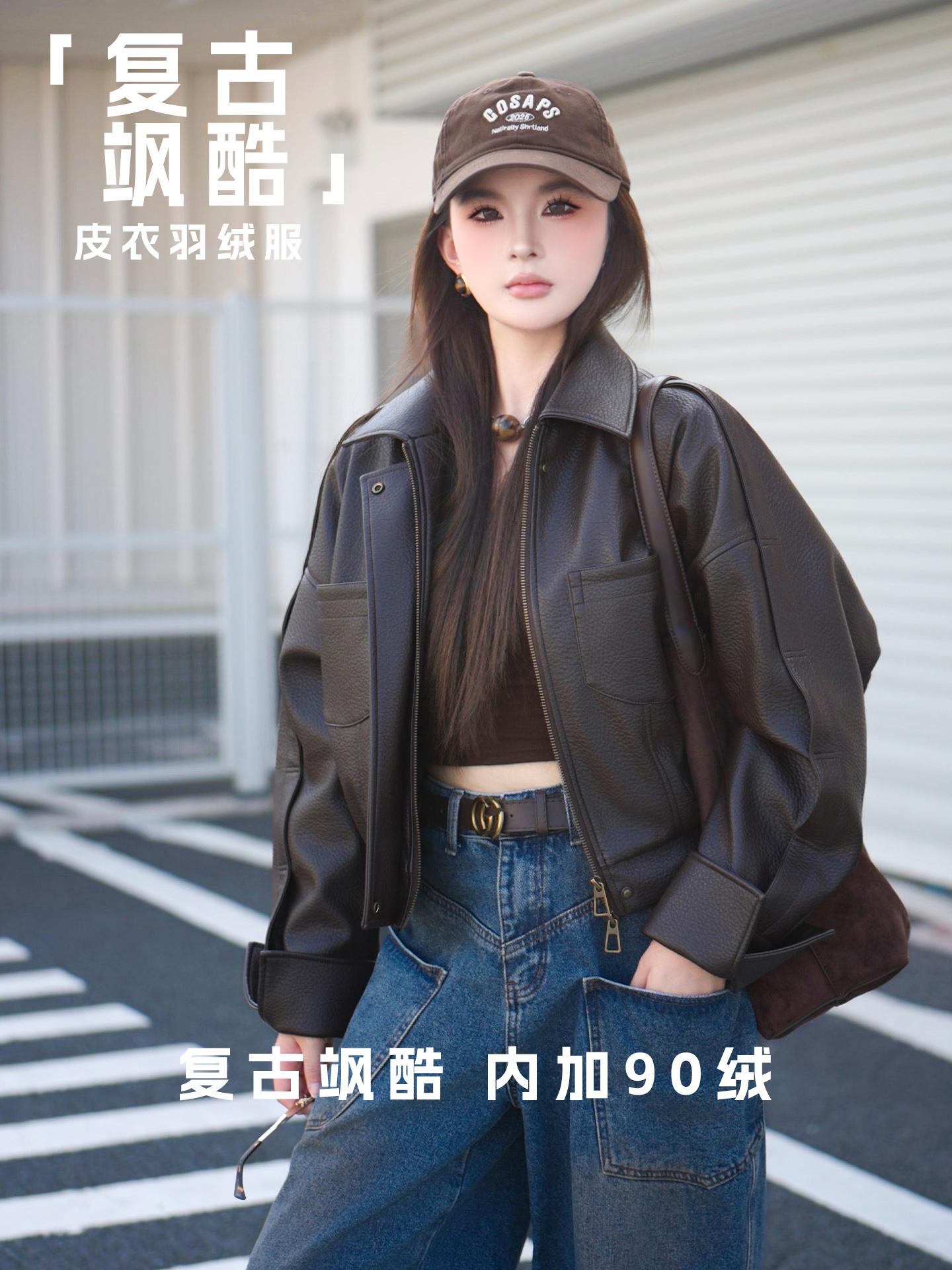 Yaya 2025 Otoño Nuevo Chaqueta de Plumas de Cuero Moda Retro Ámbar Brillante Color Café Chaqueta de Cuero Ropa Exterior de Alta Gama Mujer