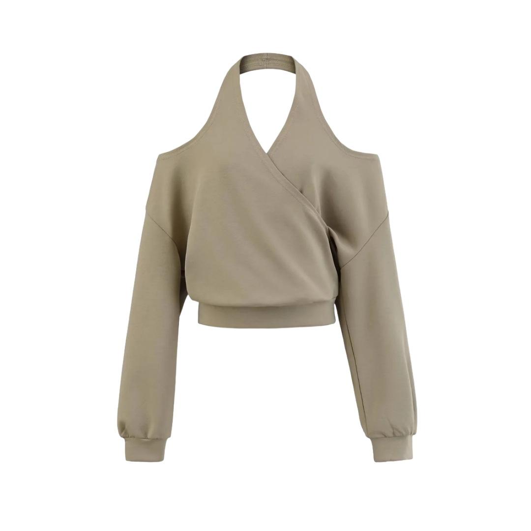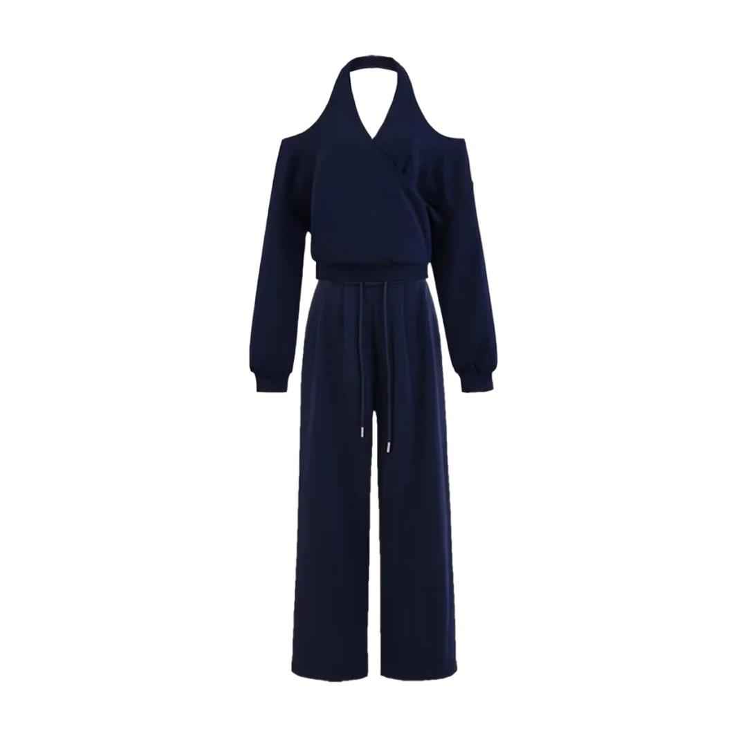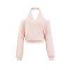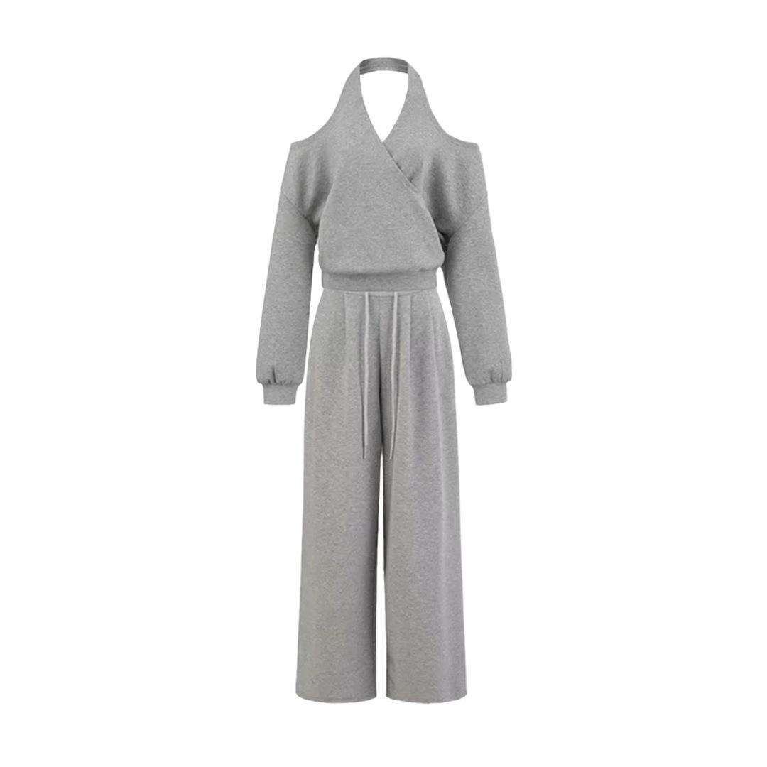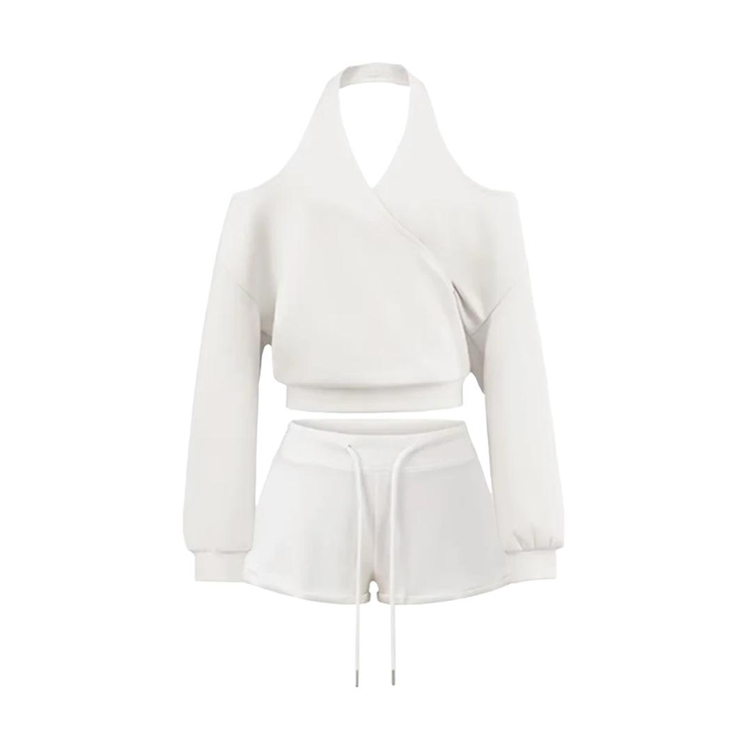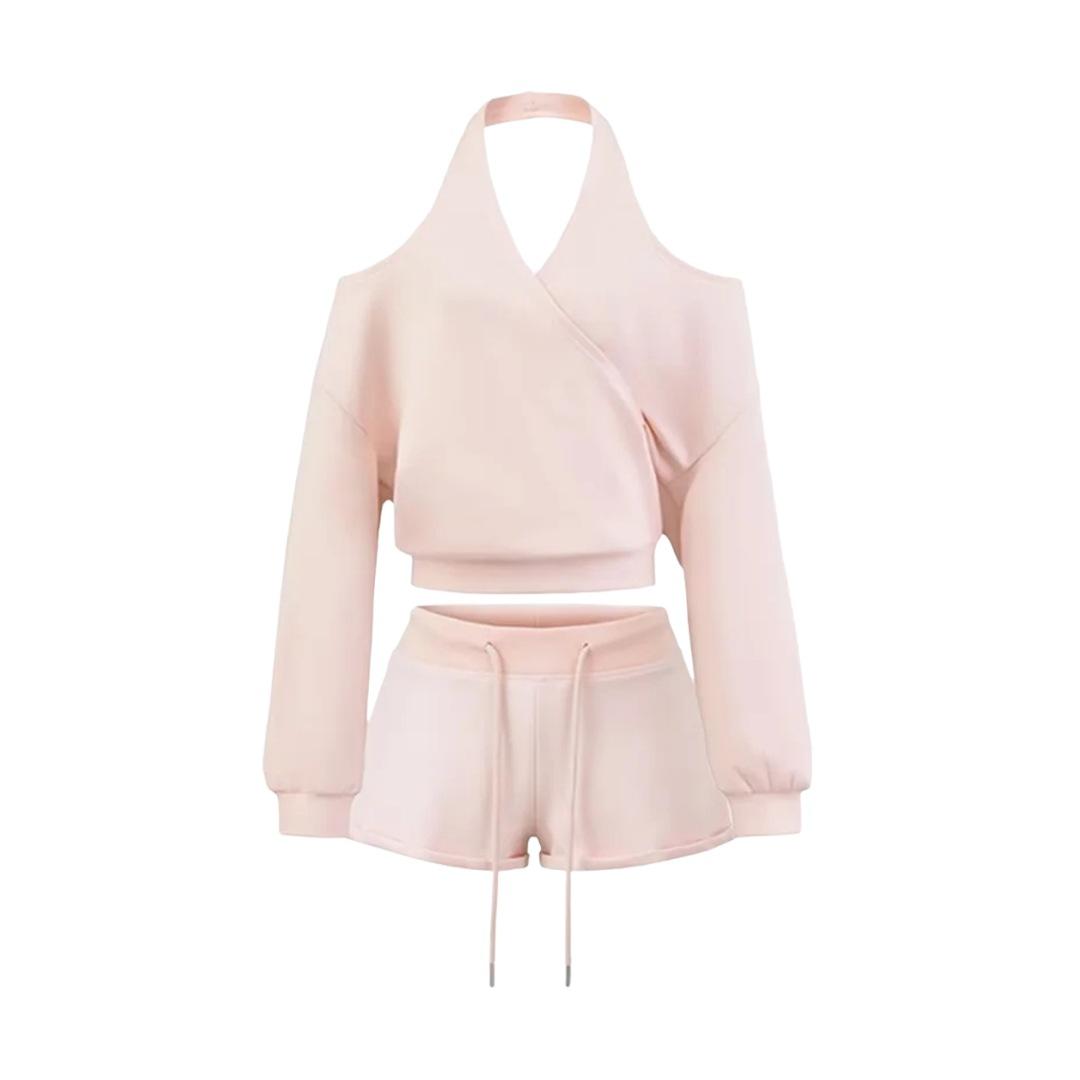Sudadera de cuello en V halter sin espalda de manga larga para mujer, conjunto de pantalones cortos y sudadera de pierna recta casual holgados con cordón y cintura elástica