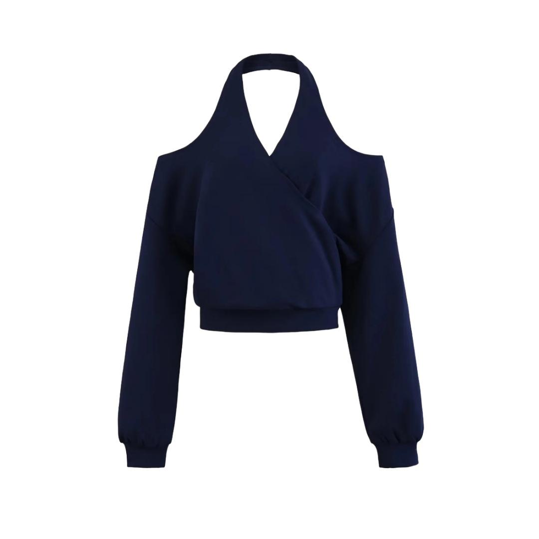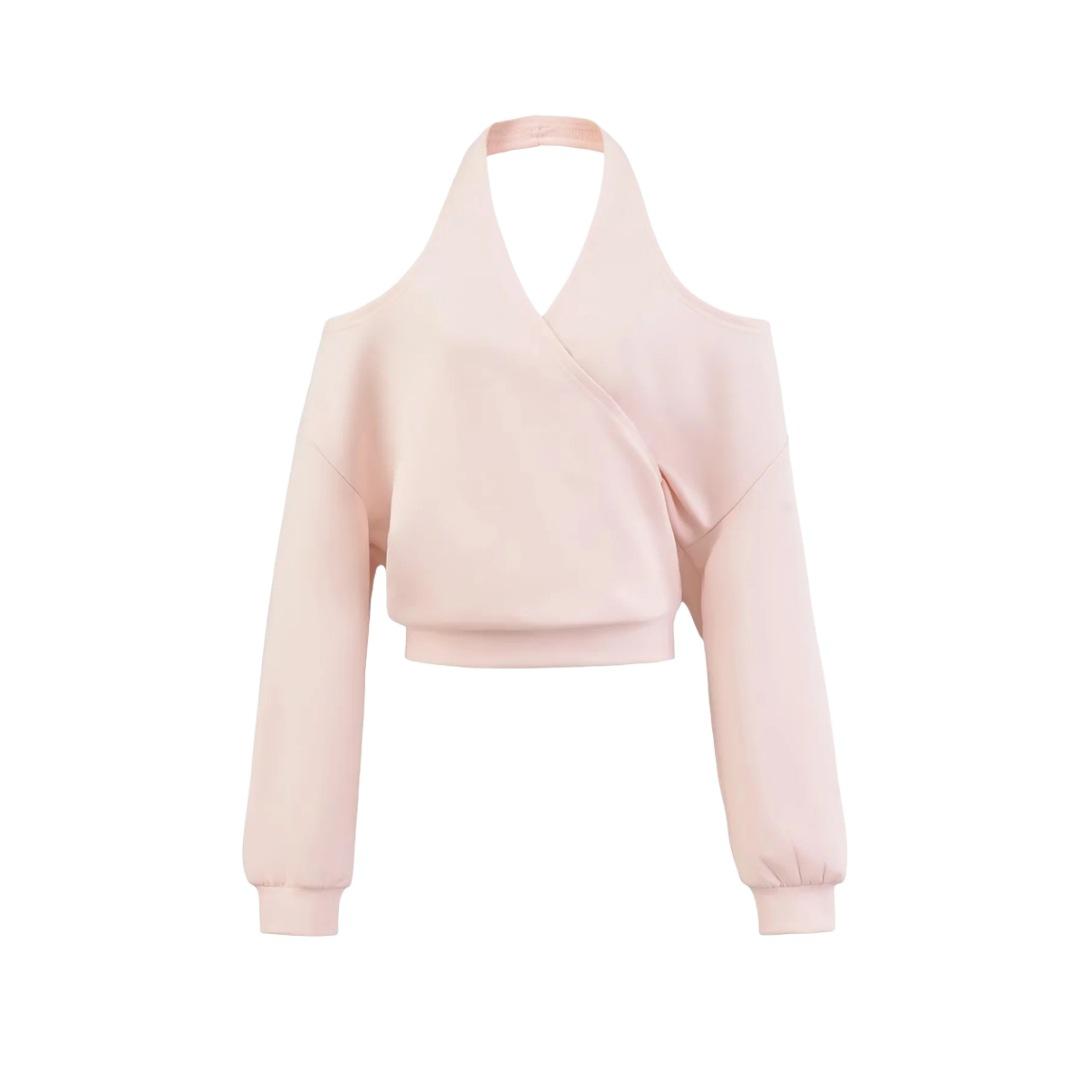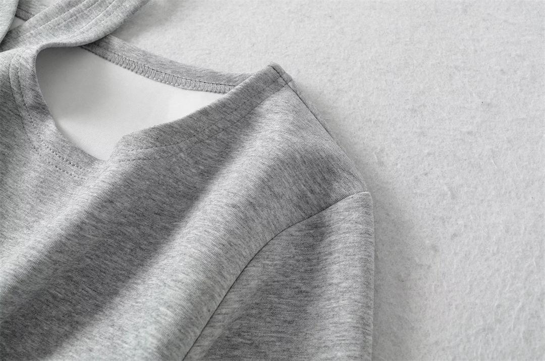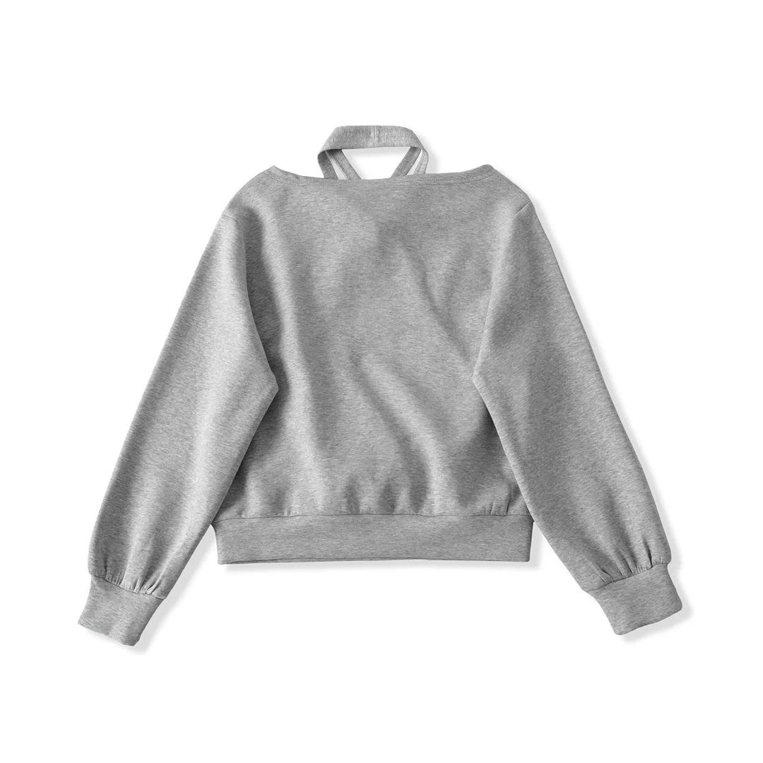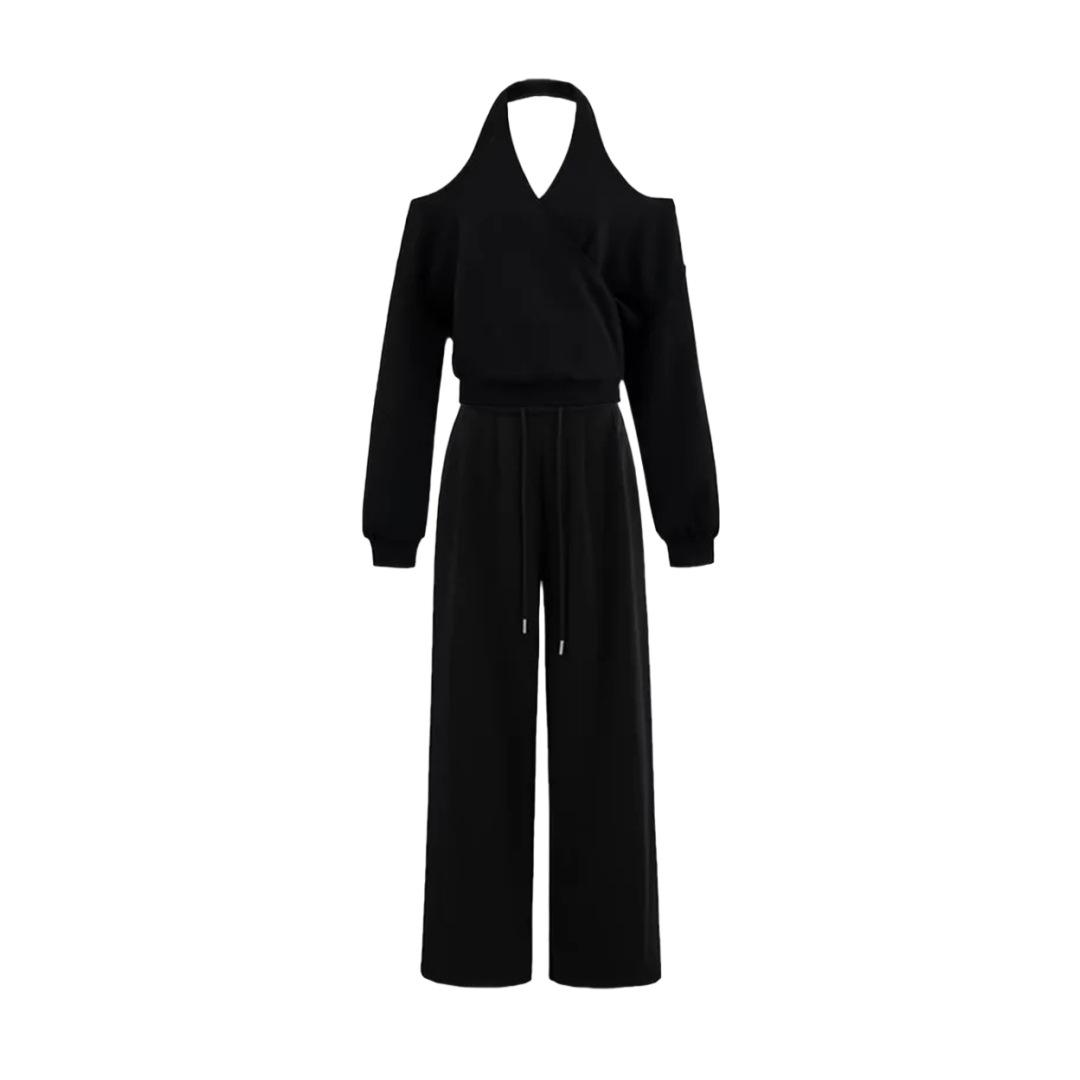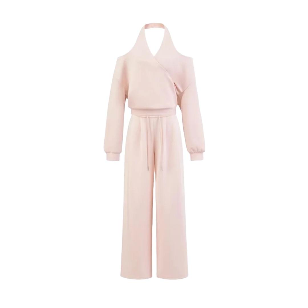 Sudadera de cuello en V halter sin espalda de manga larga para mujer, conjunto de pantalones cortos y sudadera de pierna recta casual holgados con cordón y cintura elástica