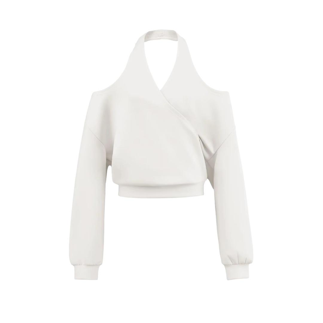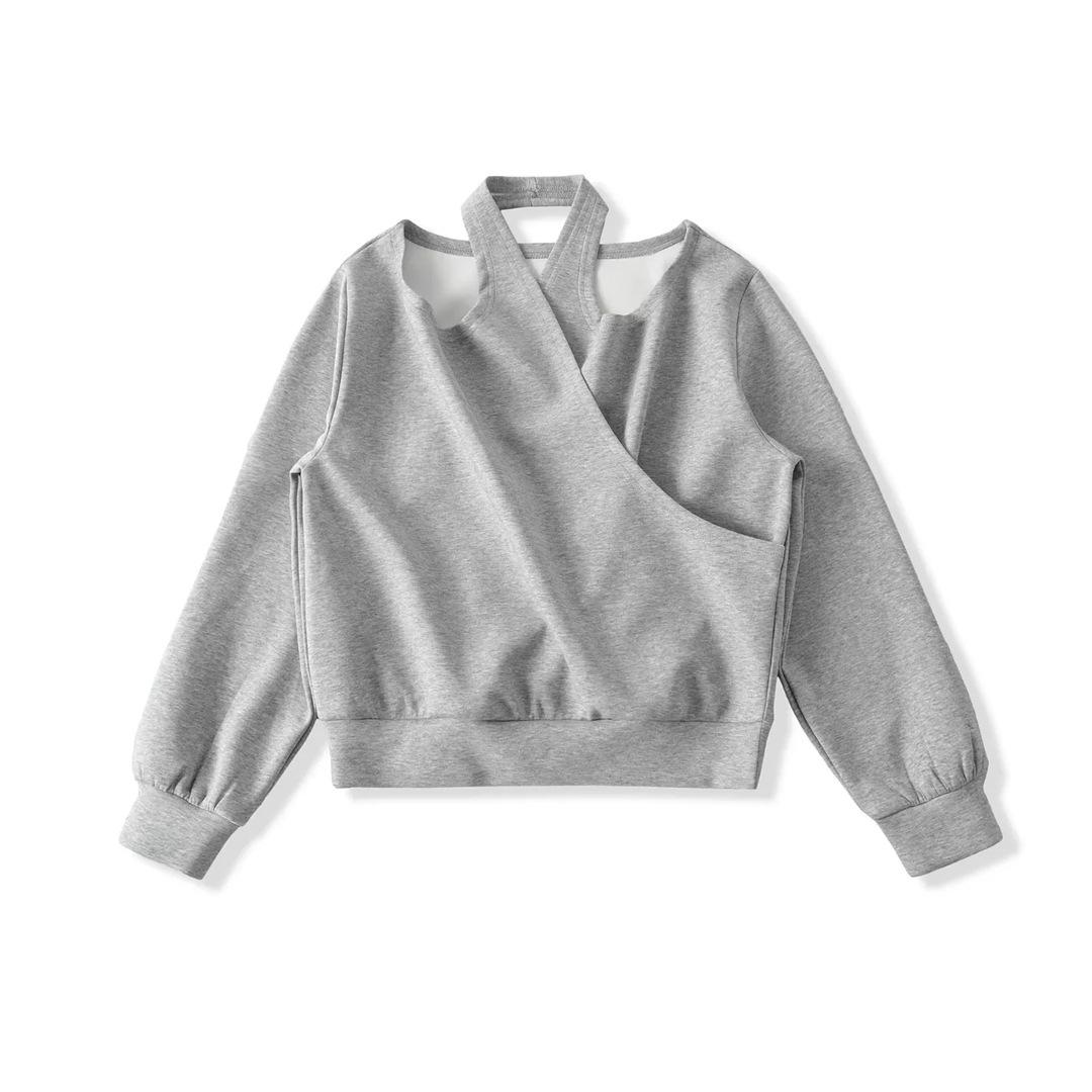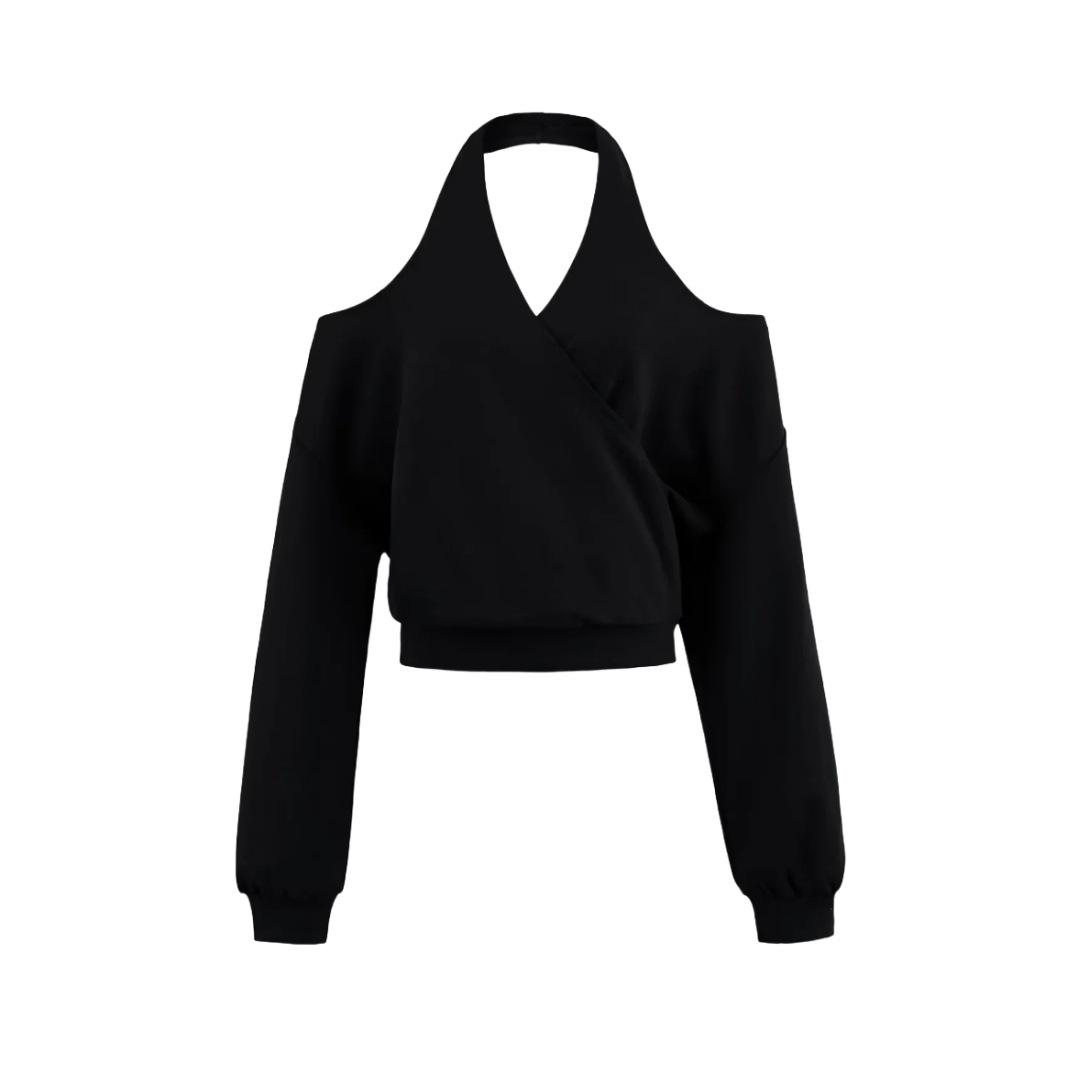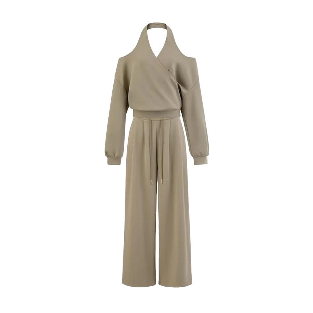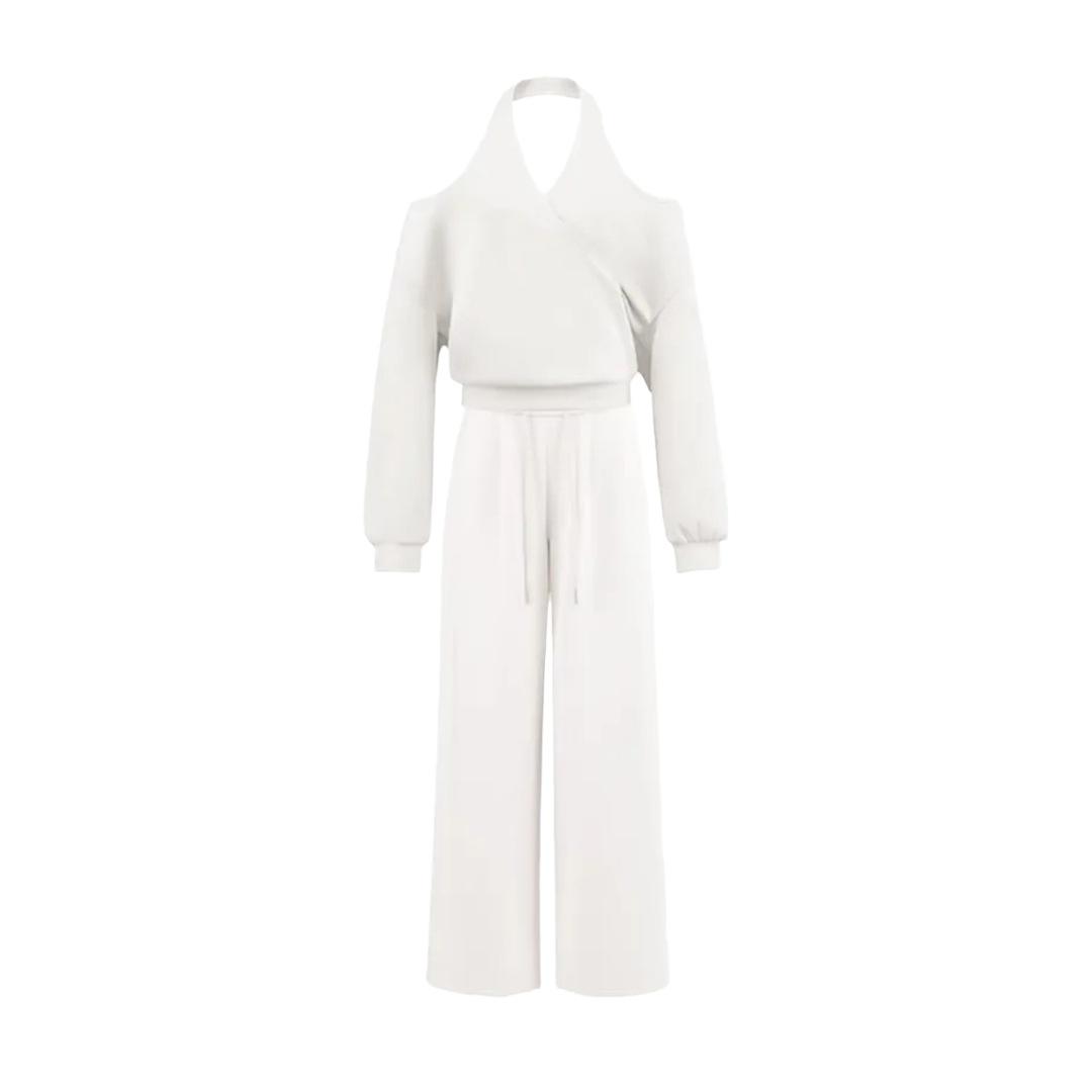 Sudadera de cuello en V halter sin espalda de manga larga para mujer, conjunto de pantalones cortos y sudadera de pierna recta casual holgados con cordón y cintura elástica