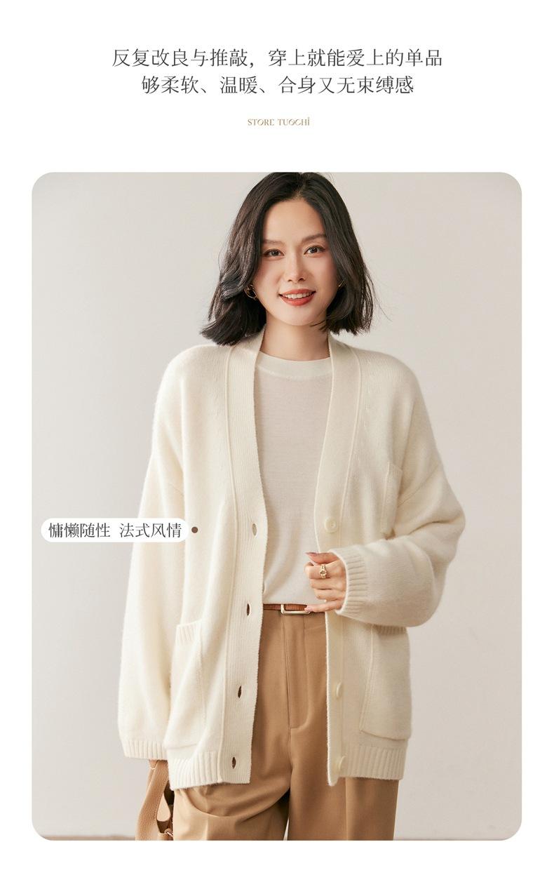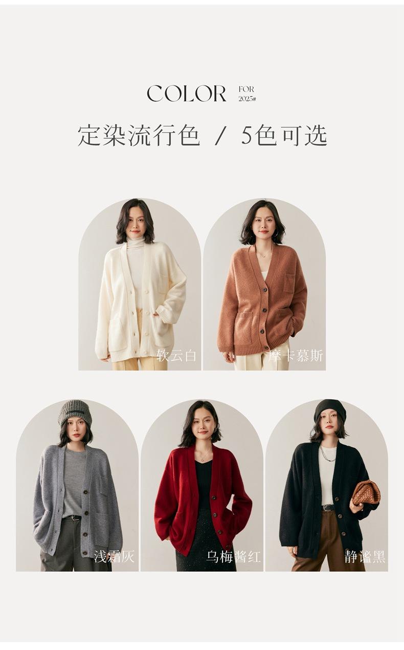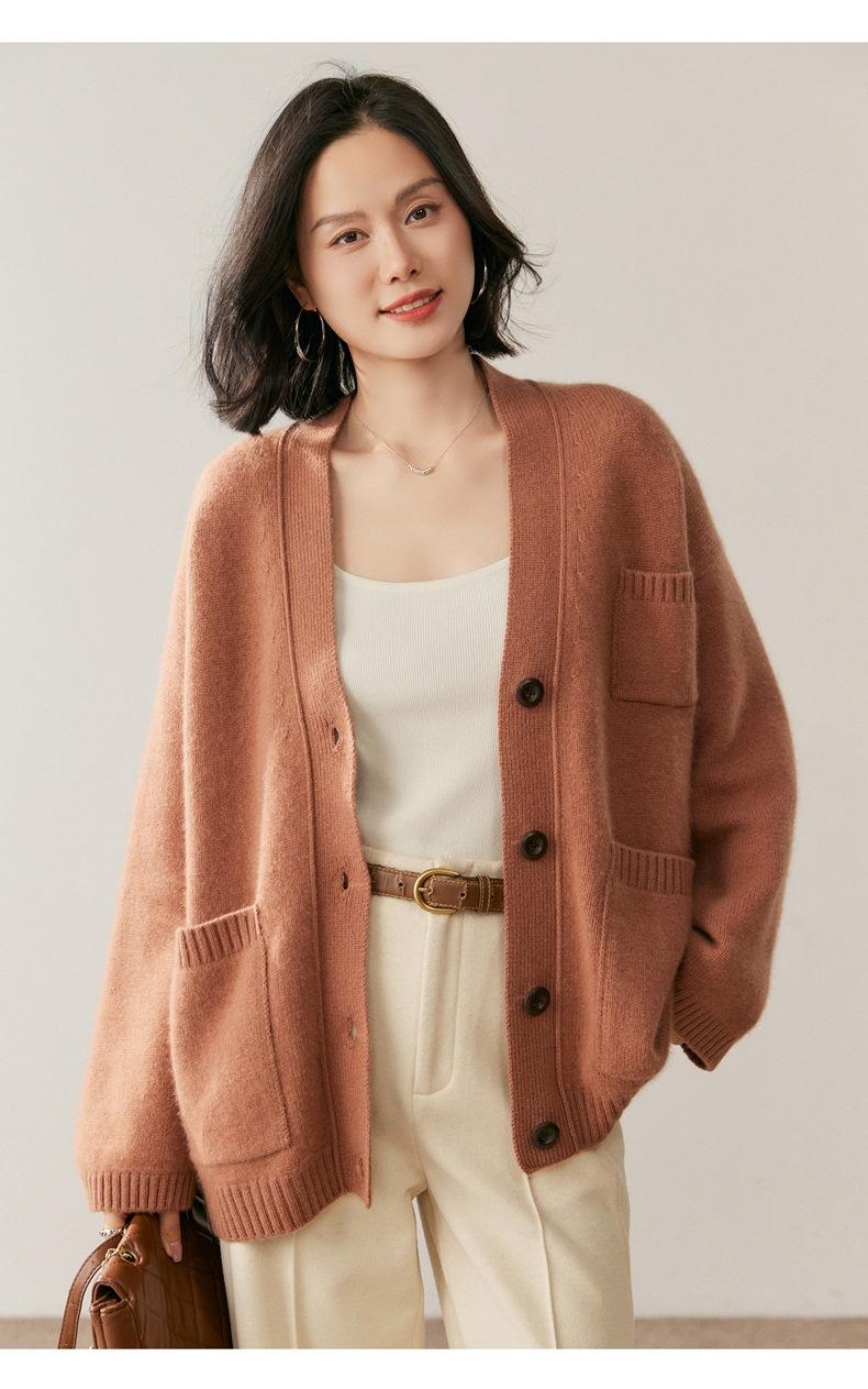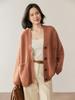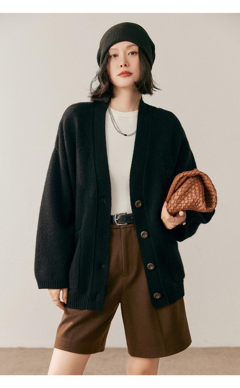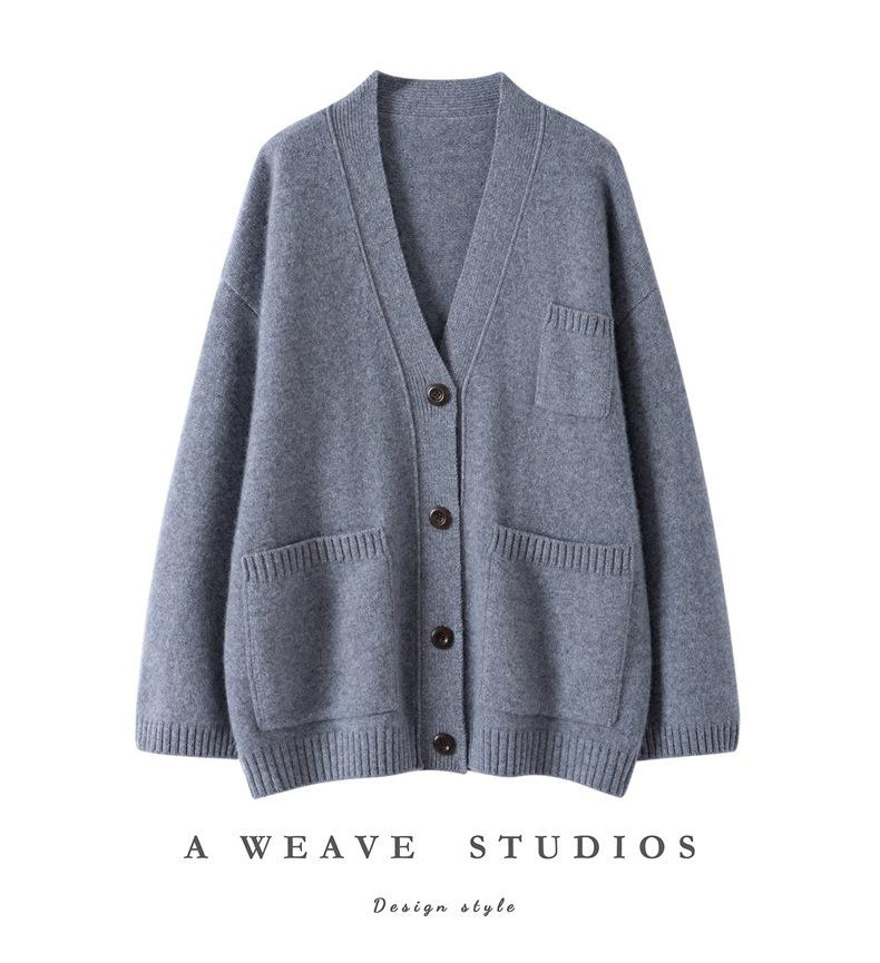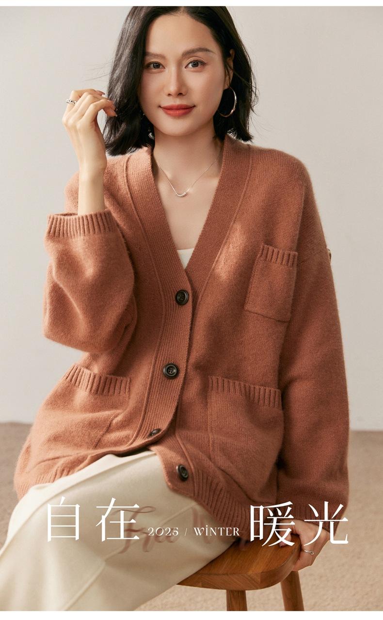 Cárdigan de Cachemira Otoño/Invierno 2025 Nuevo Camiseta Base de Cuello en V para Mujer Estilo Elegante Holgado Adelgazante Abrigo de Botonadura Simple