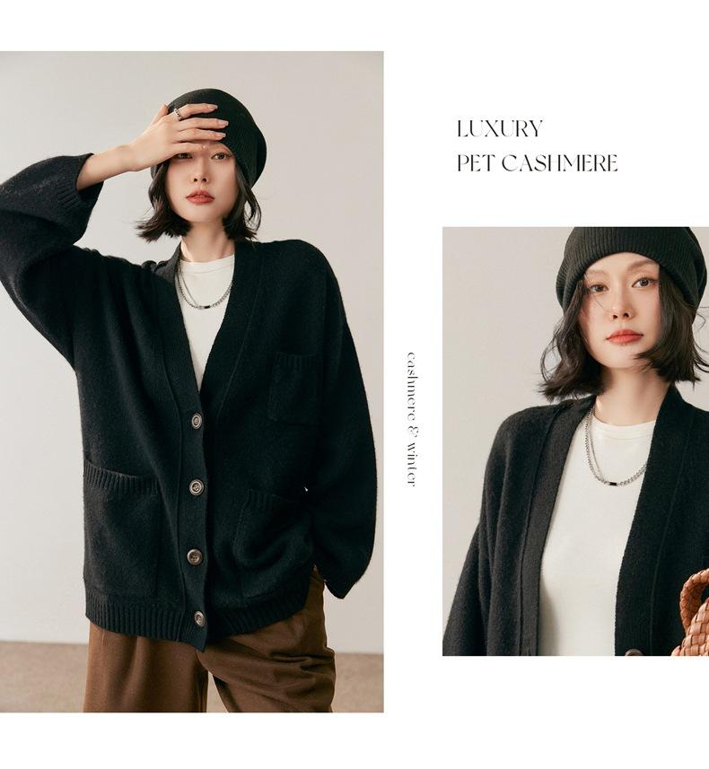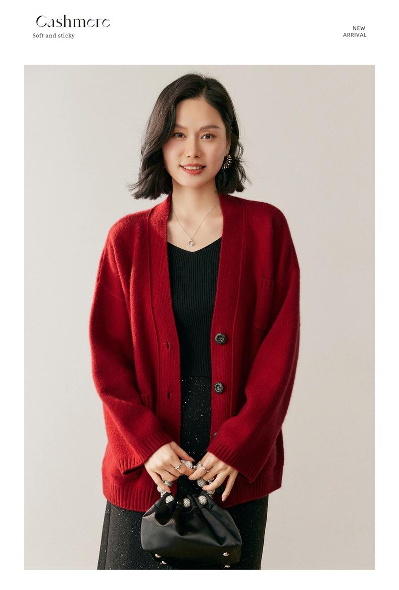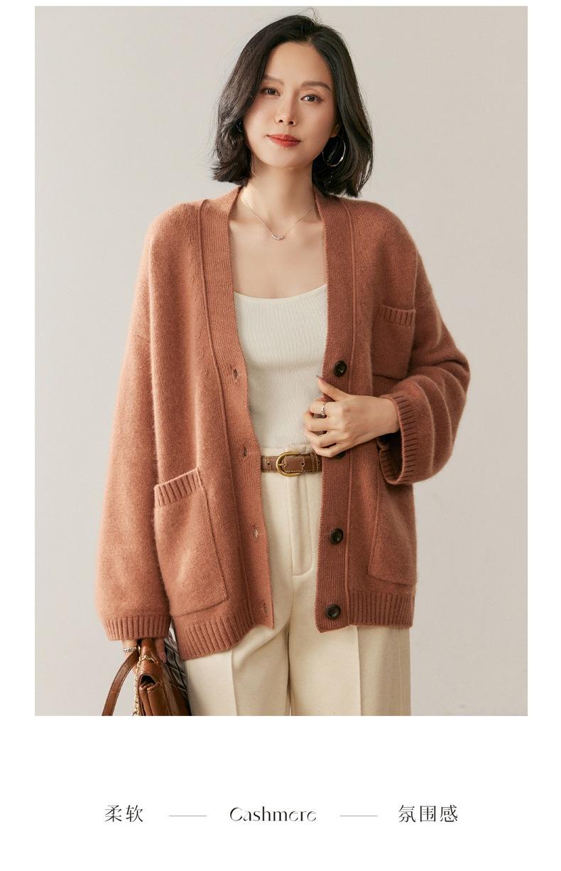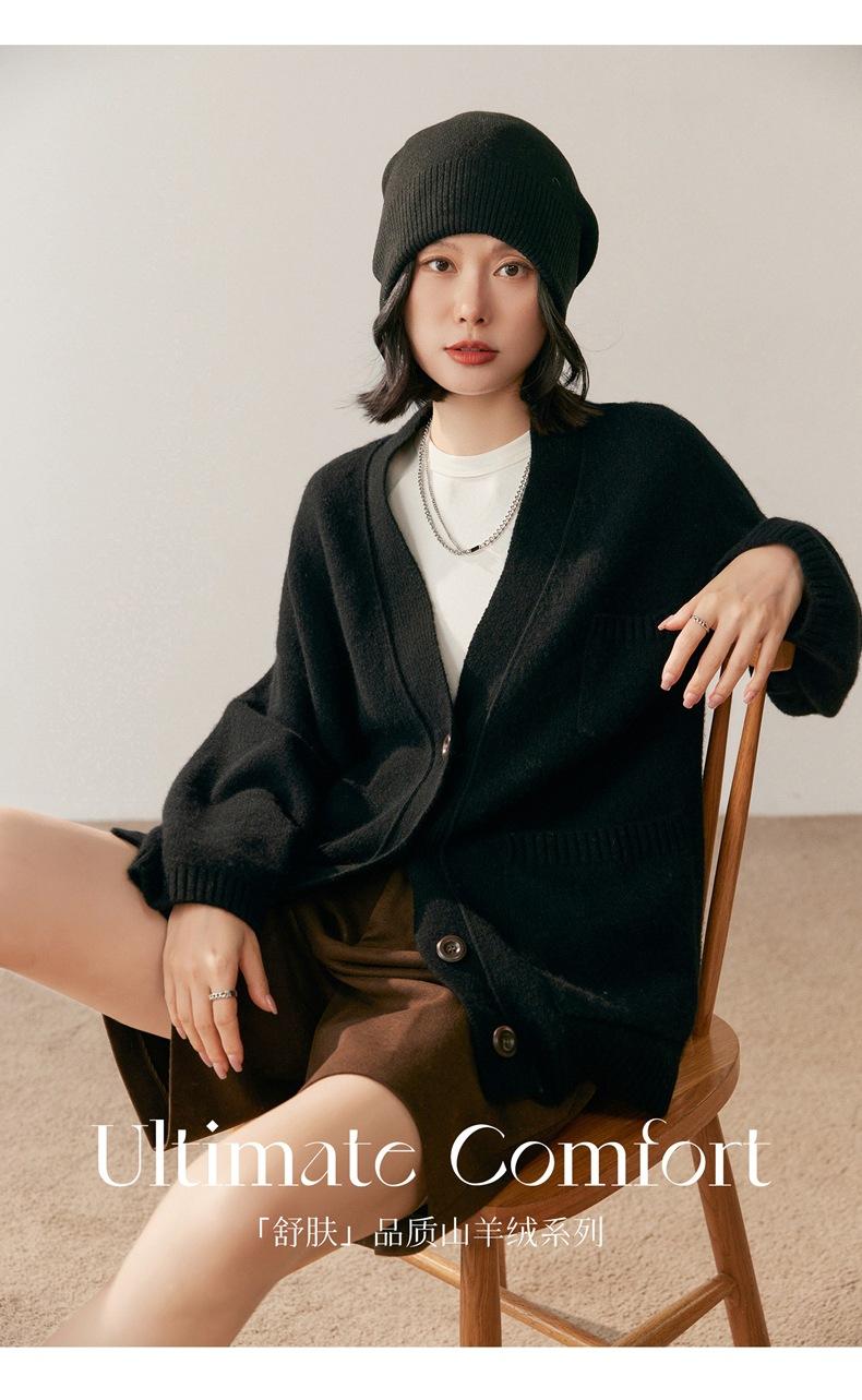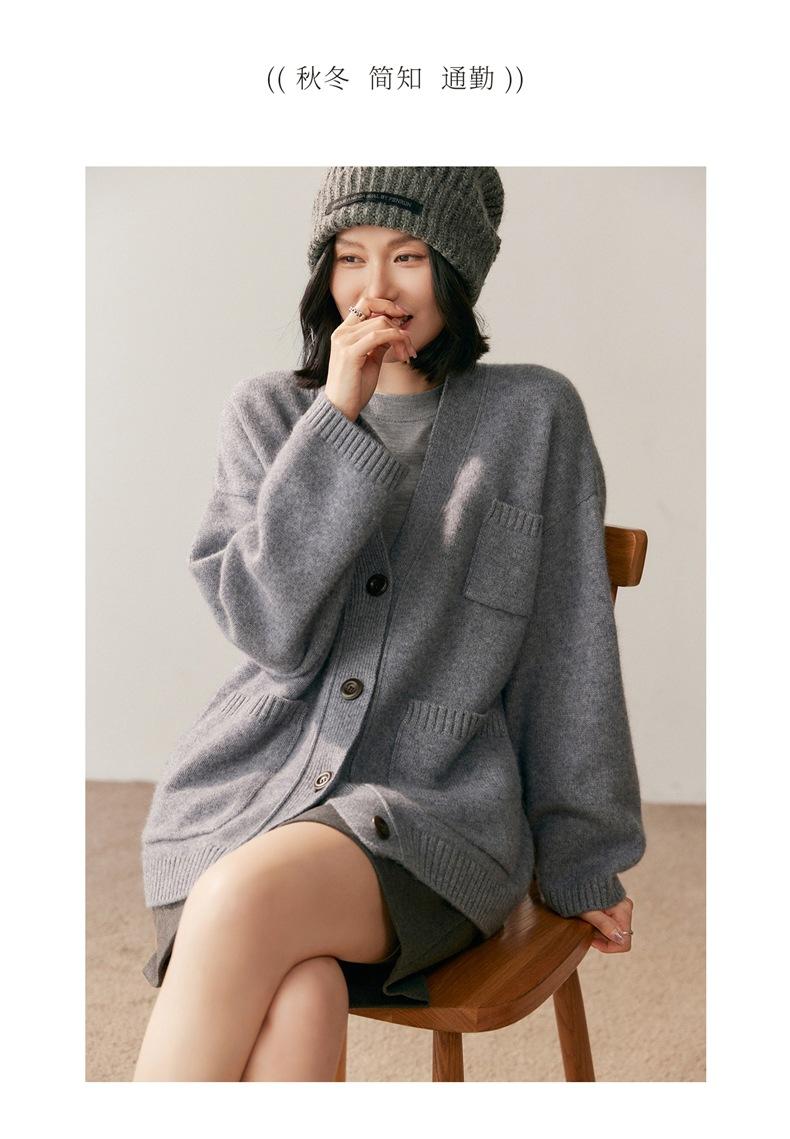 Cárdigan de Cachemira Otoño/Invierno 2025 Nuevo Camiseta Base de Cuello en V para Mujer Estilo Elegante Holgado Adelgazante Abrigo de Botonadura Simple