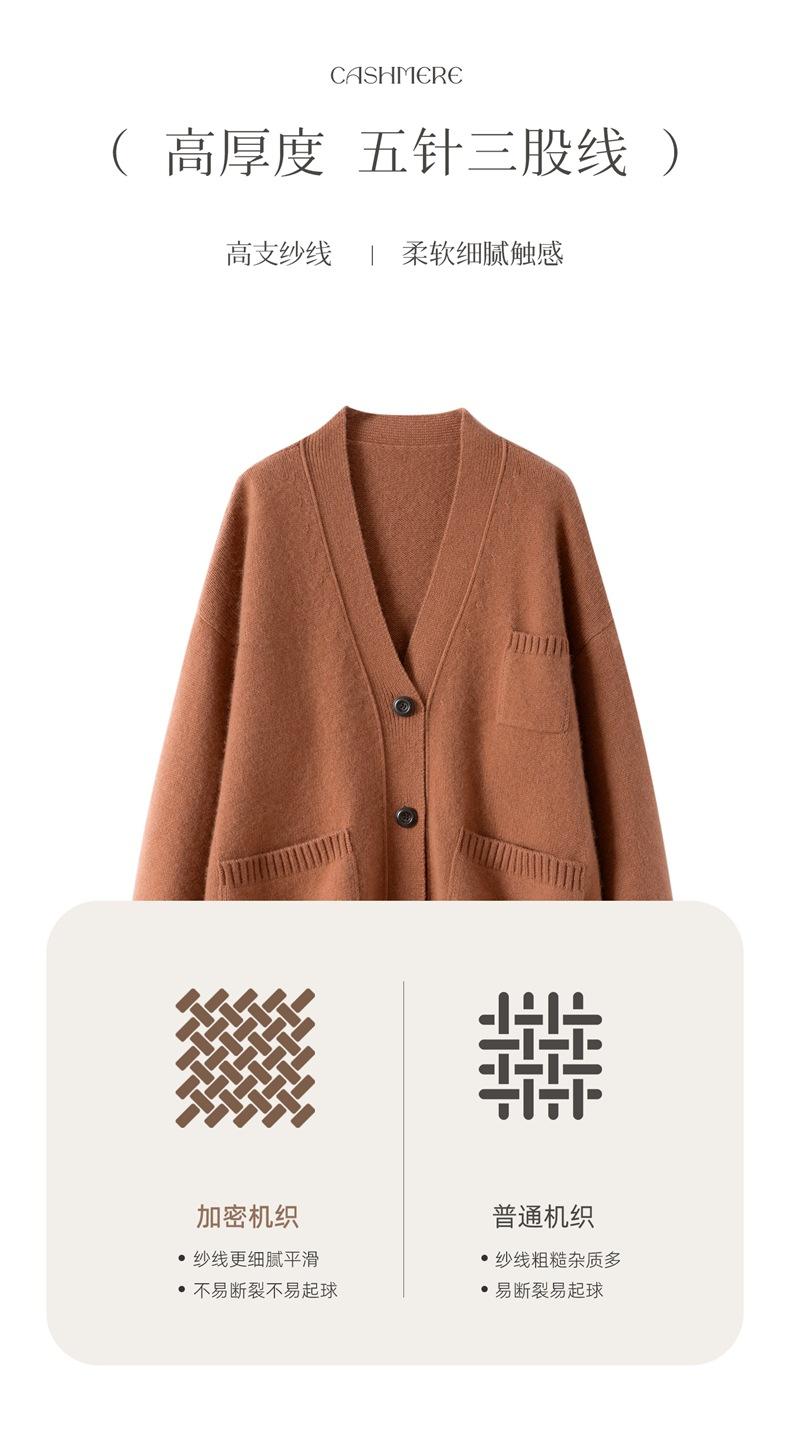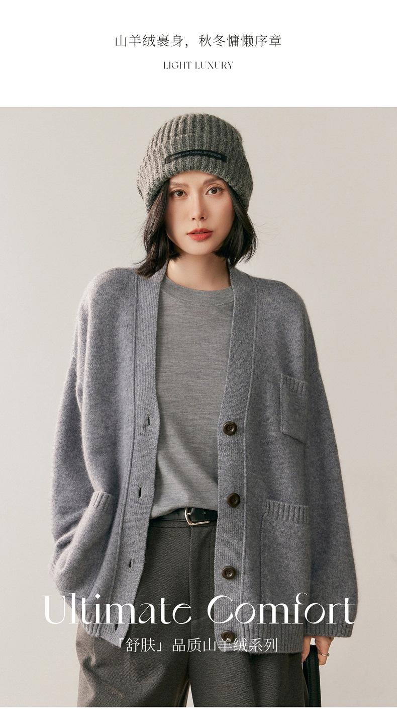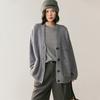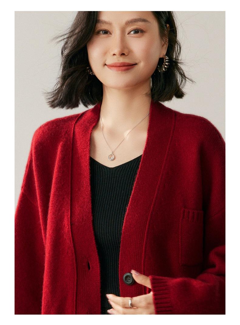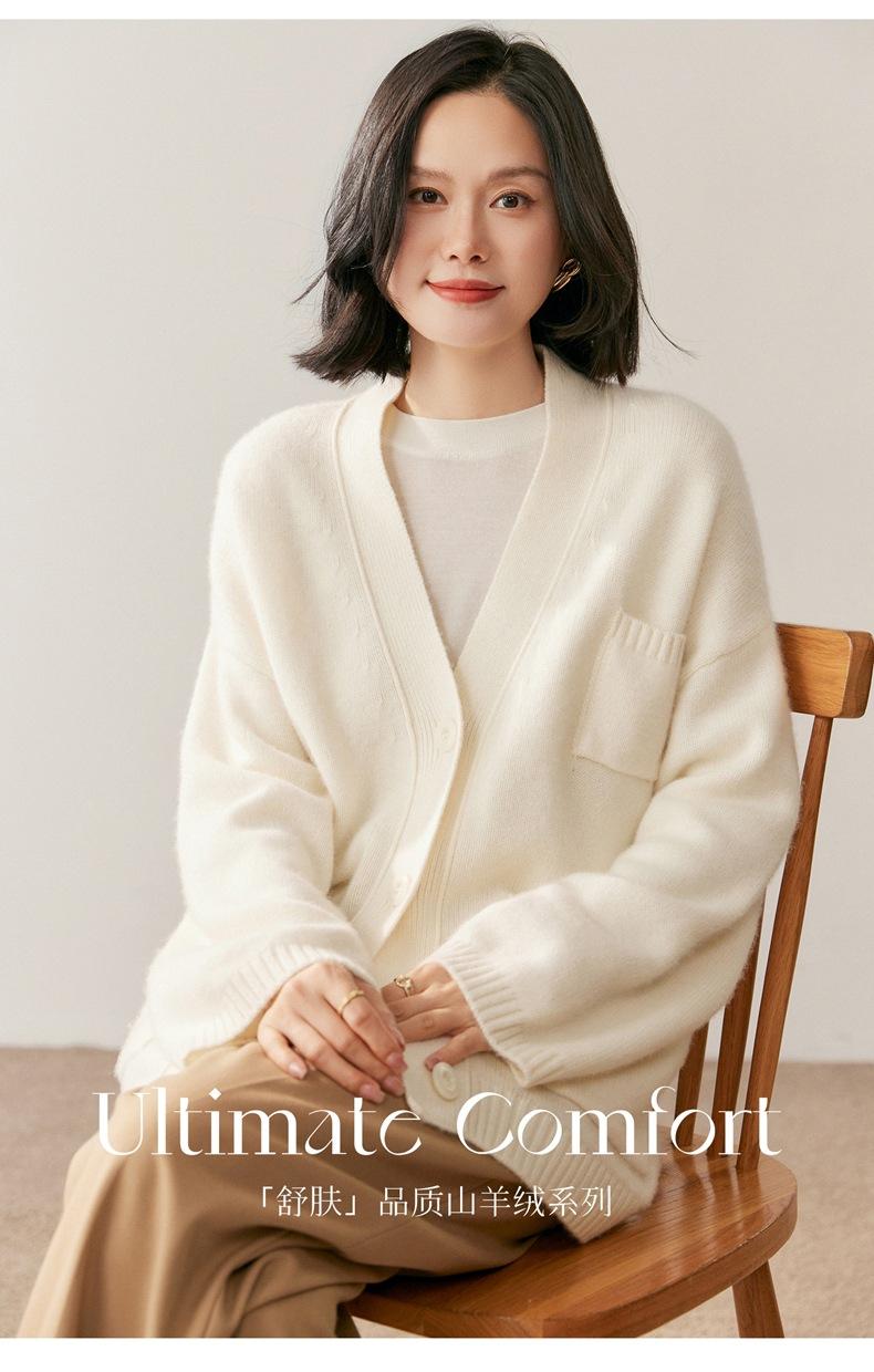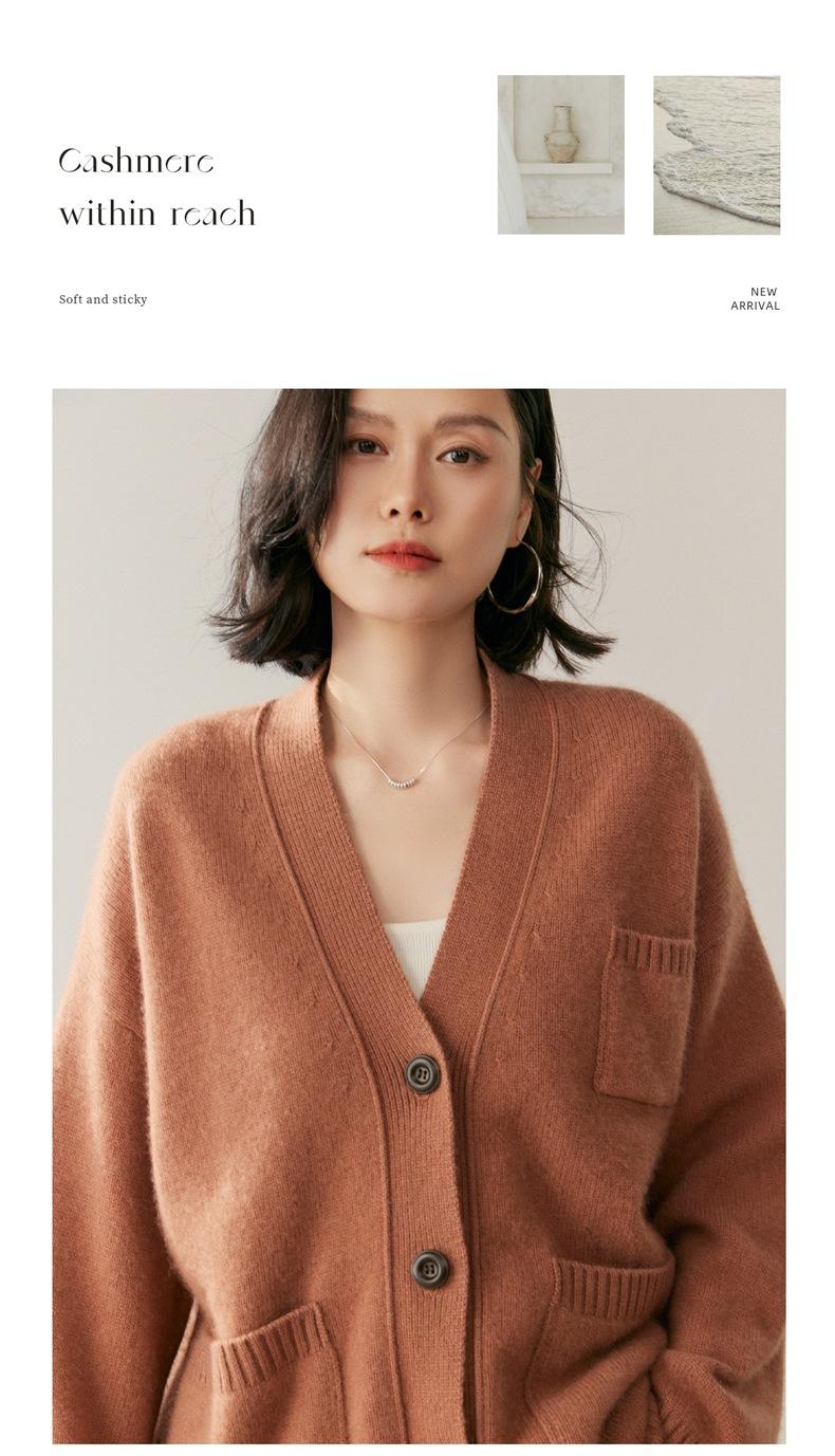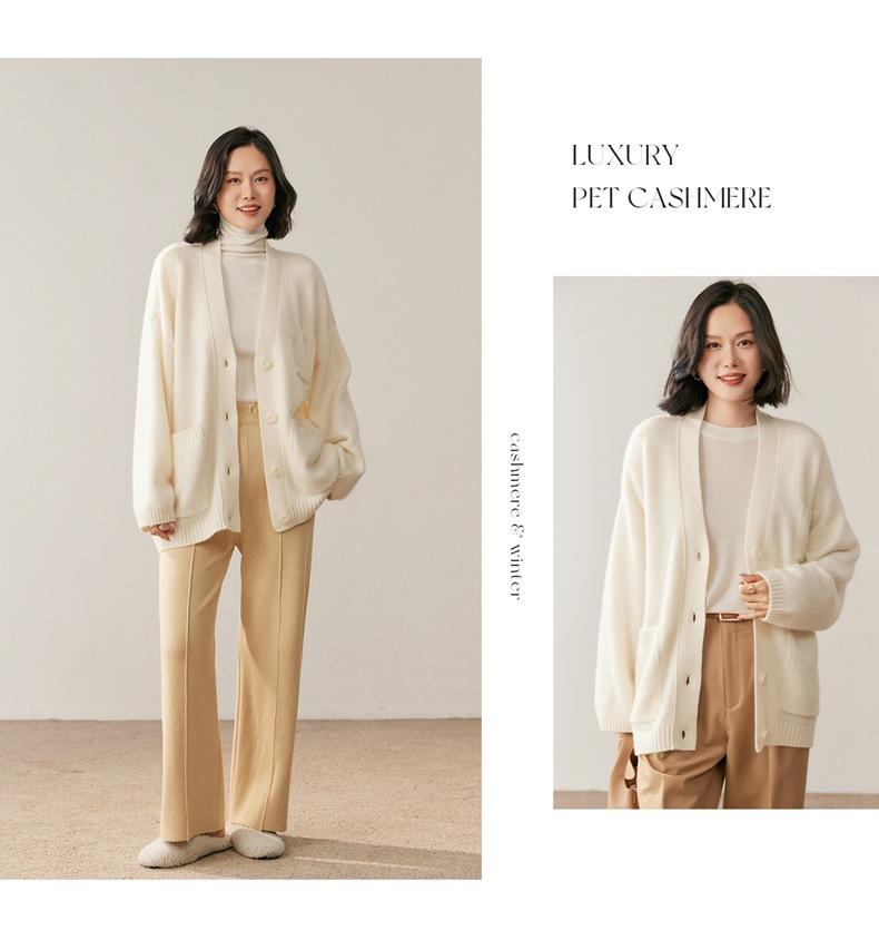 Cárdigan de Cachemira Otoño/Invierno 2025 Nuevo Camiseta Base de Cuello en V para Mujer Estilo Elegante Holgado Adelgazante Abrigo de Botonadura Simple