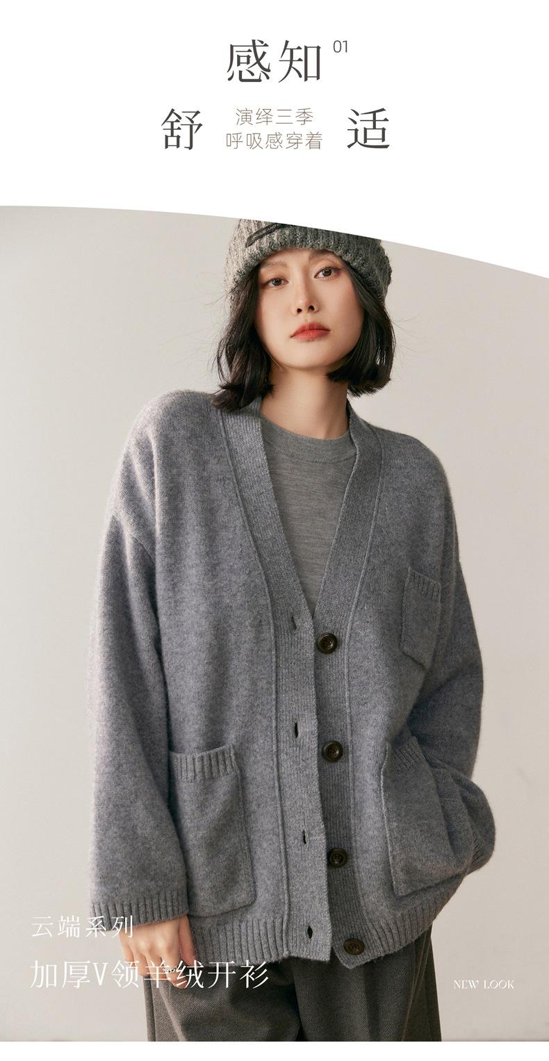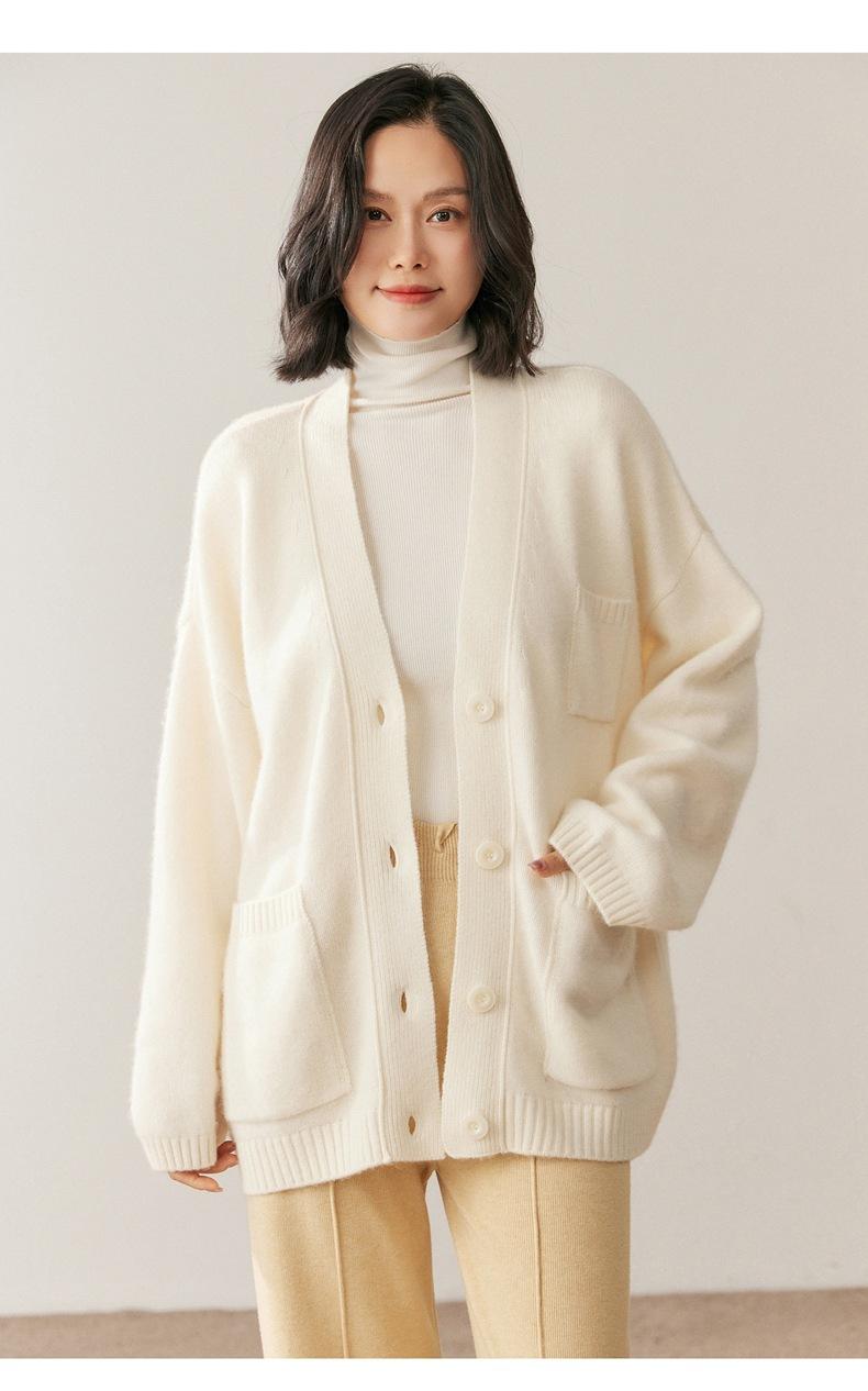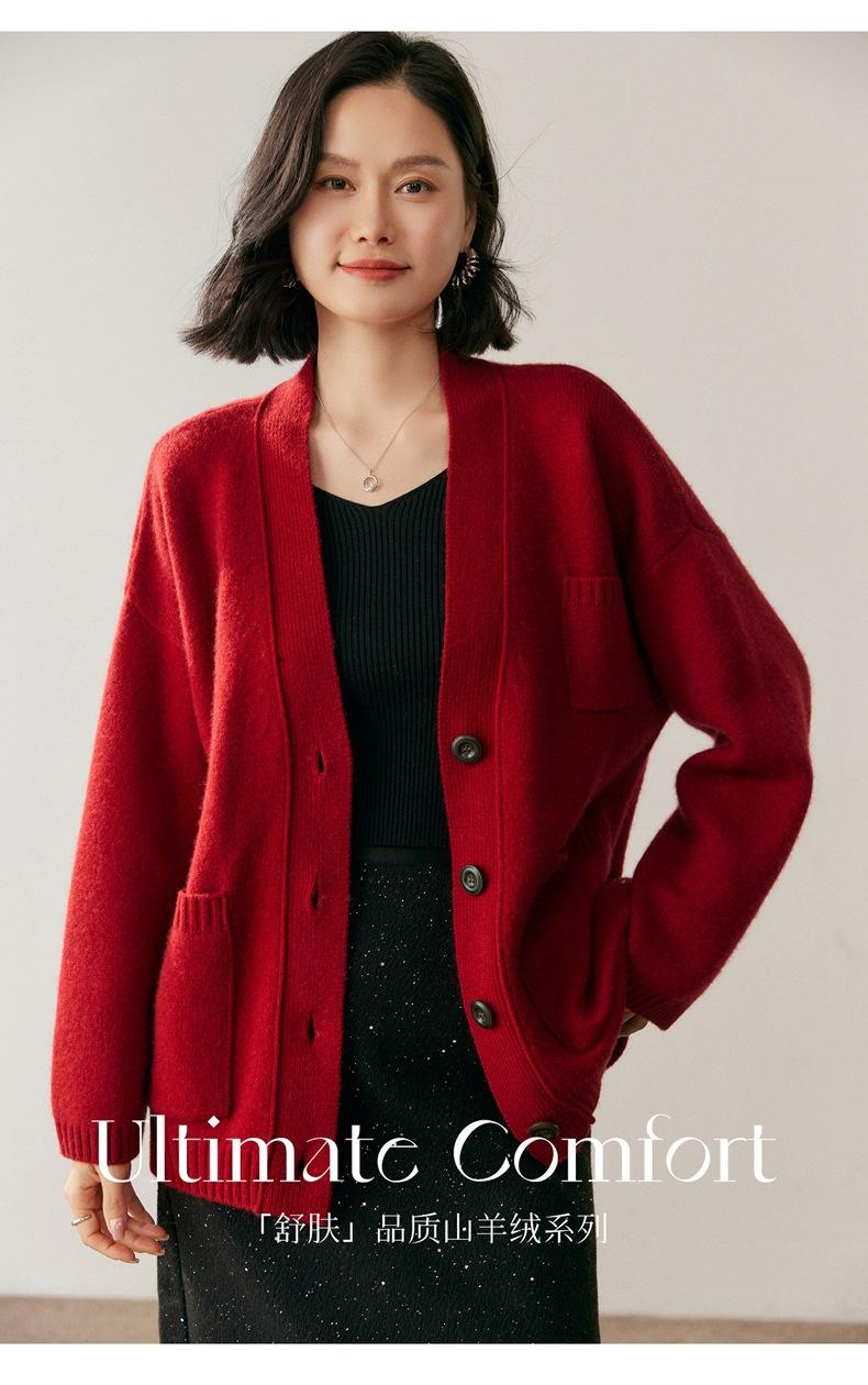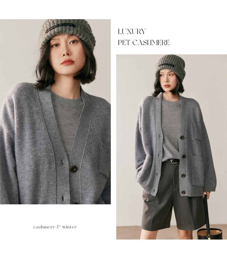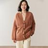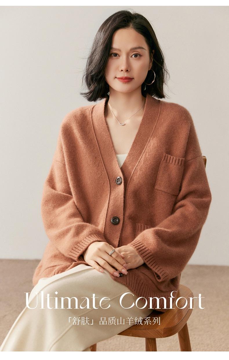 Cárdigan de Cachemira Otoño/Invierno 2025 Nuevo Camiseta Base de Cuello en V para Mujer Estilo Elegante Holgado Adelgazante Abrigo de Botonadura Simple