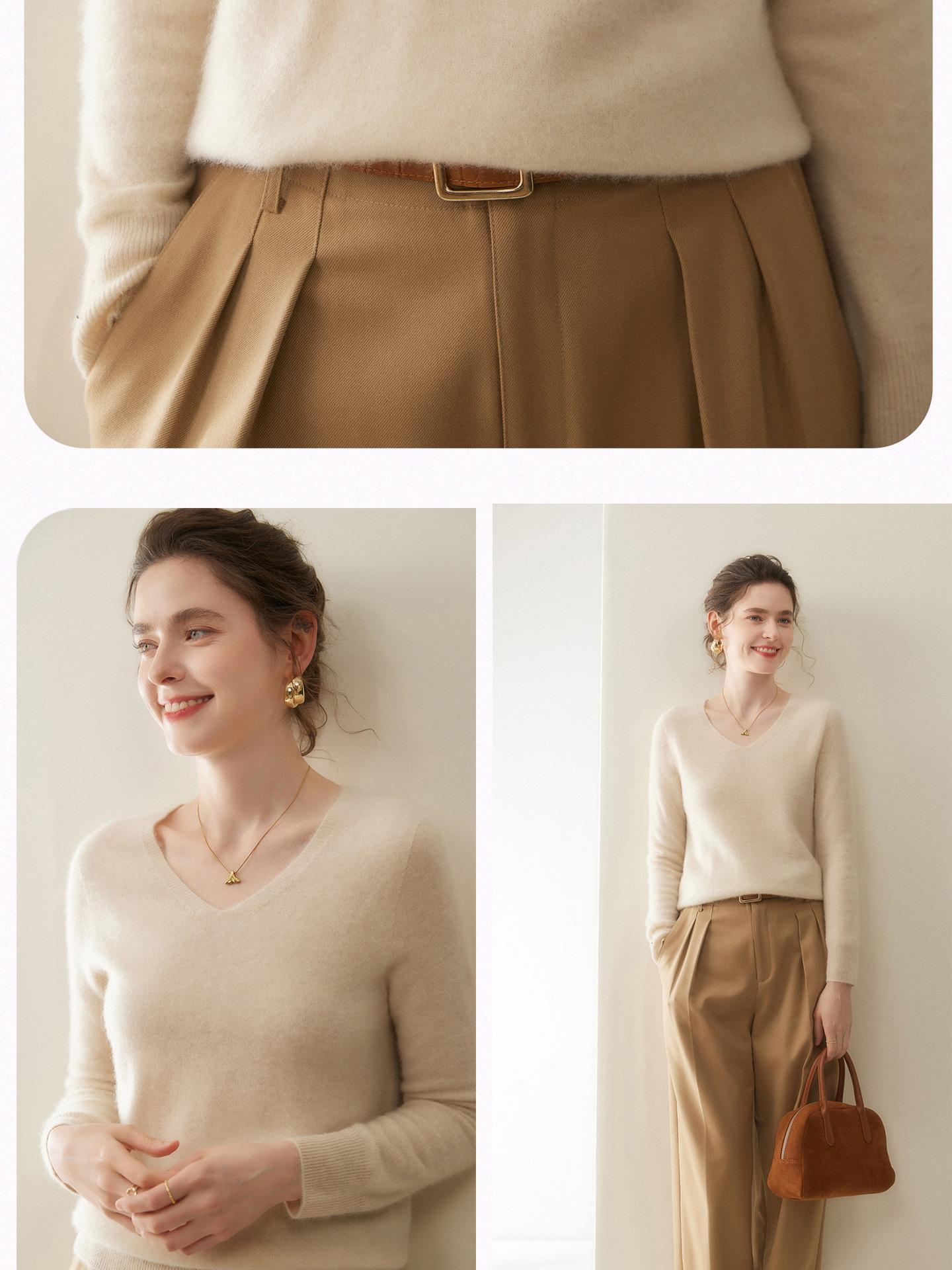 Suéter de Cachemira Suave y Ceroso para Mujer, Moda Simple y Versátil, Base Holgada, Nuevo Suéter de Punto Interior para Otoño e Invierno