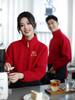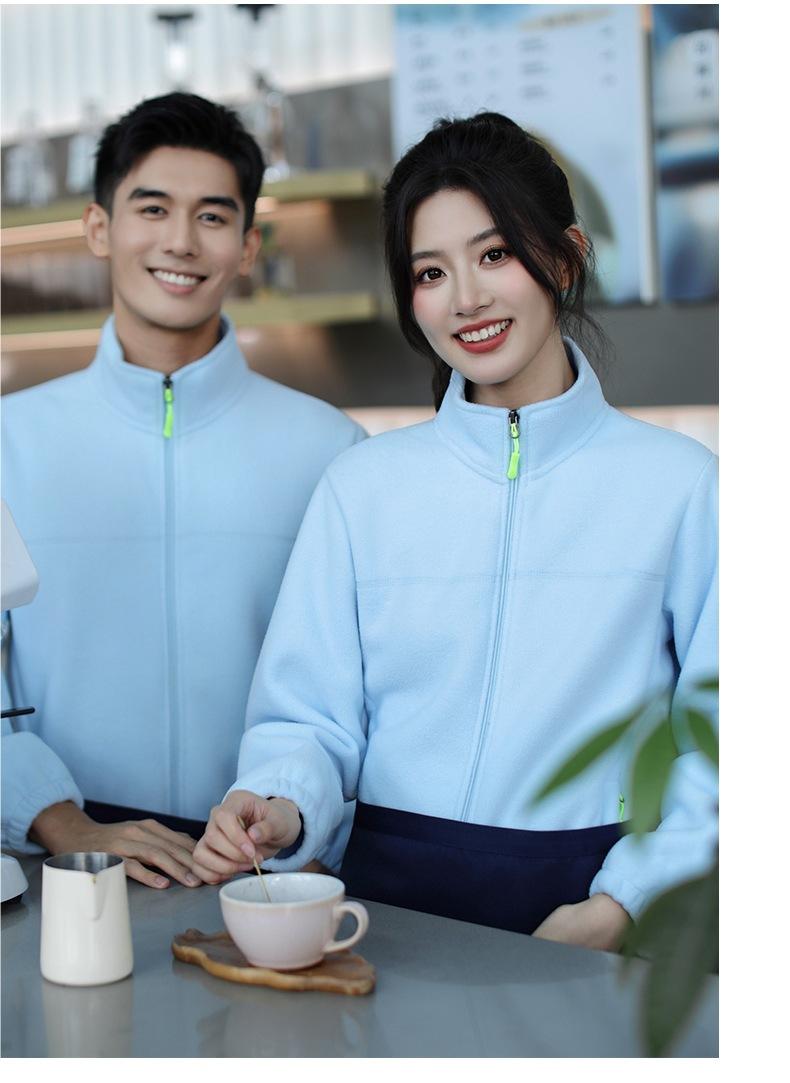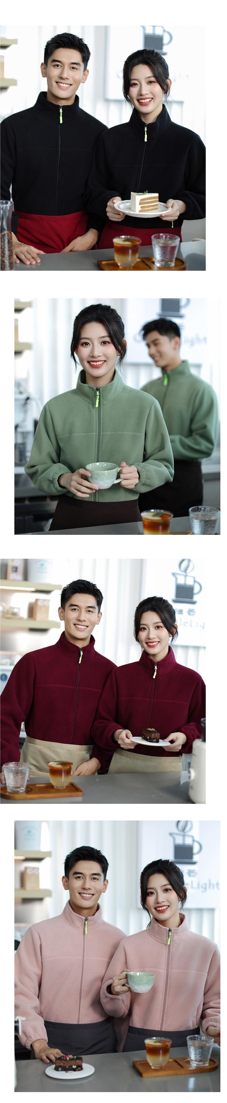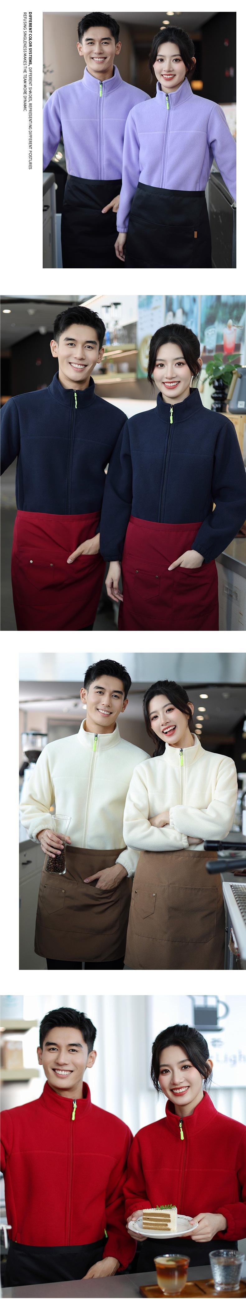Uniforme de trabajo para restaurante de olla caliente con logo bordado, ropa de otoño e invierno, catering, camarero, cuello alto, sudadera con cremallera, forro polar, abrigo grueso