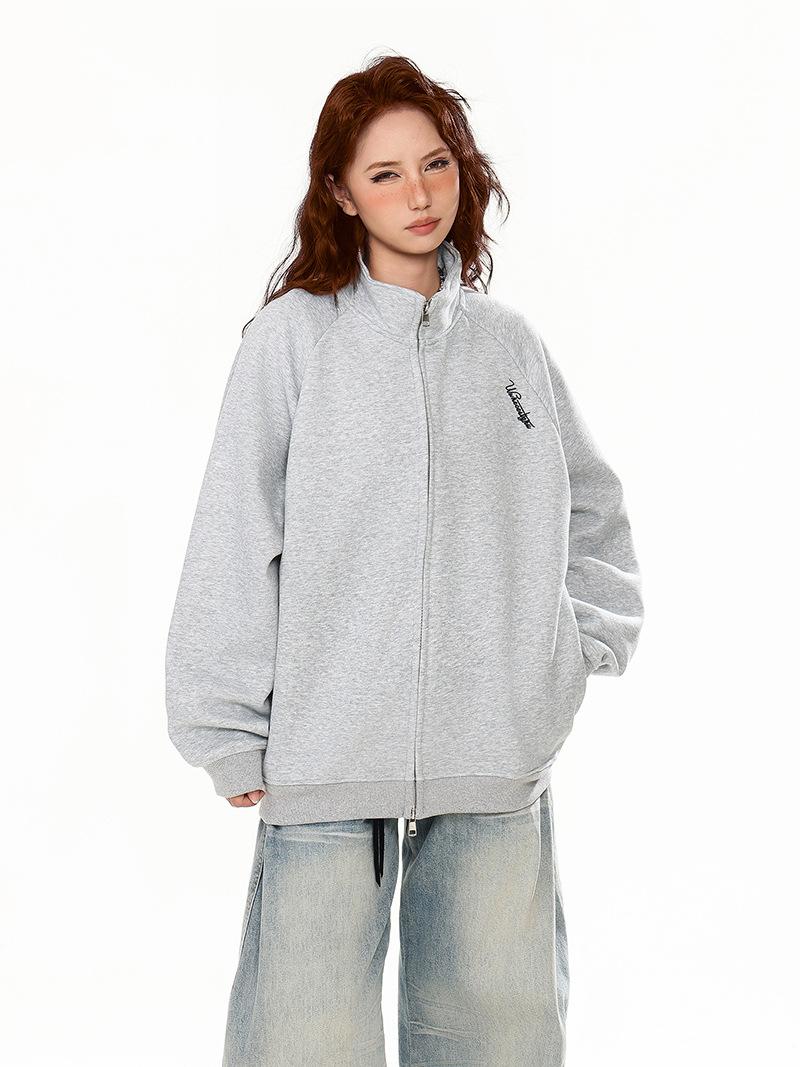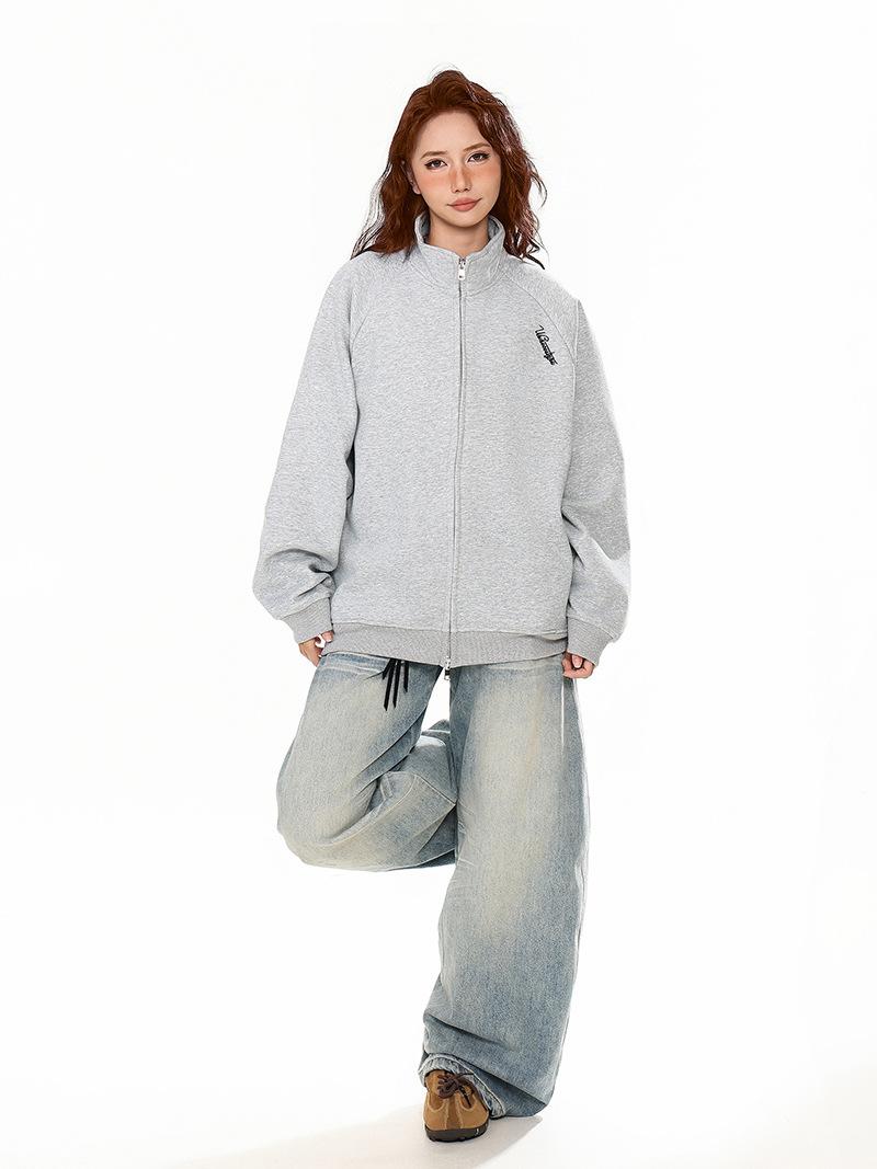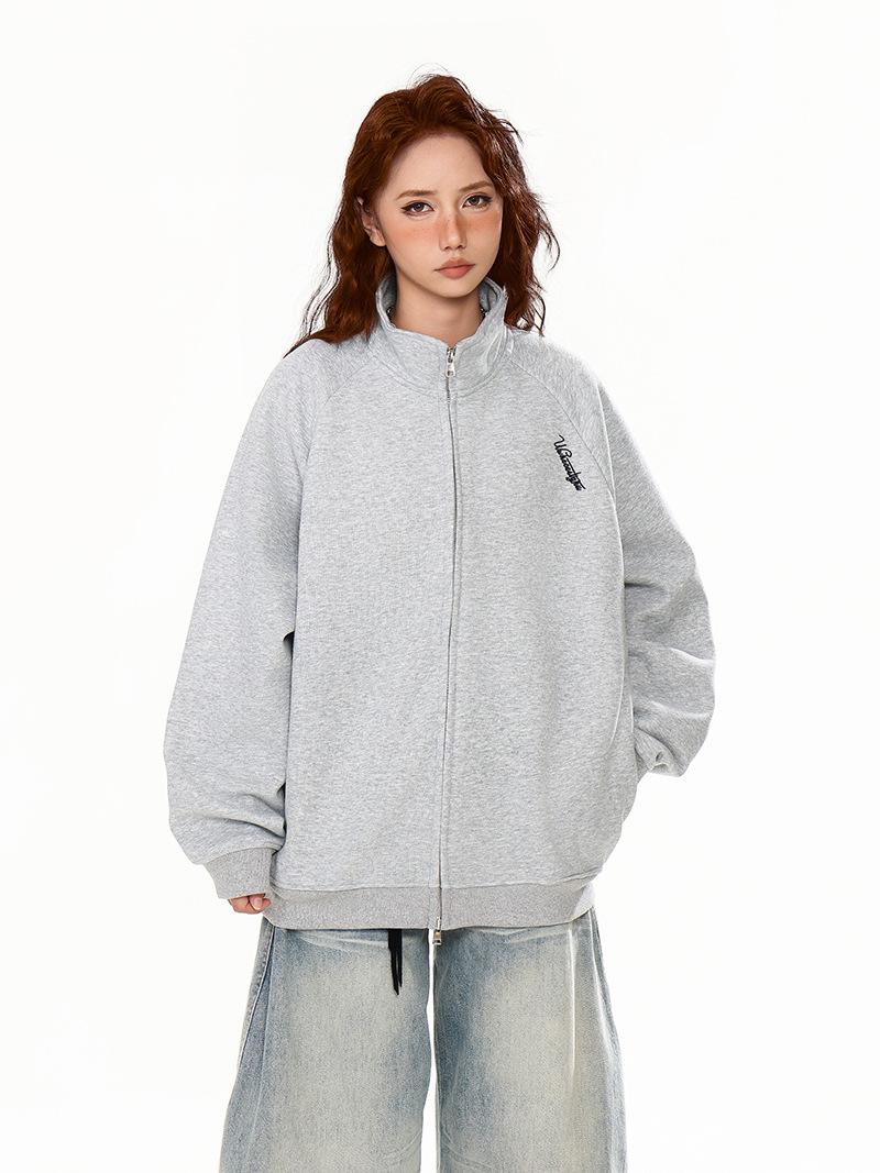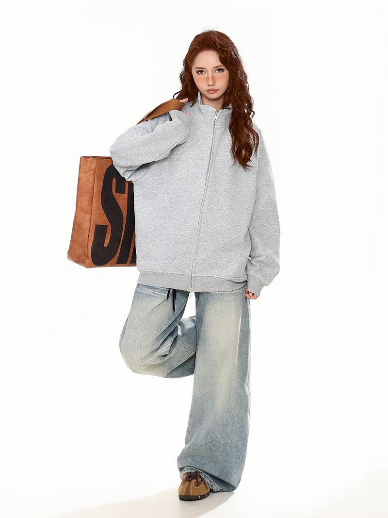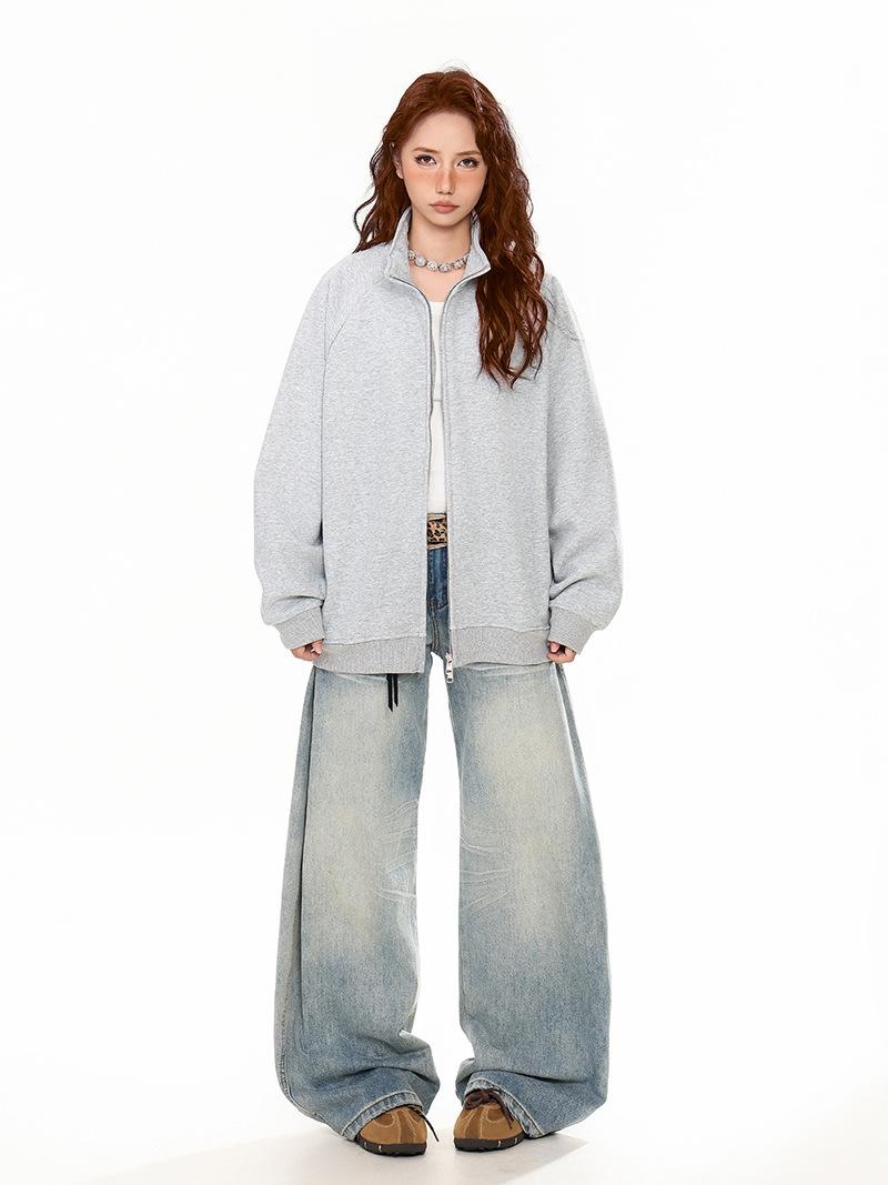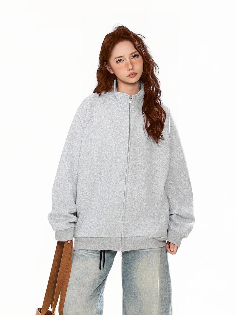 Cárdigan Sudadera Gris Pesado Americano para Mujer Casual con Cuello Alto Chaqueta Primavera y Otoño Nuevo Ropa de Pareja Top Versátil Holgado