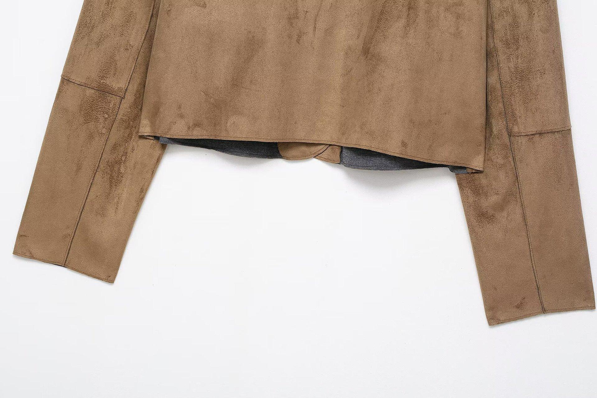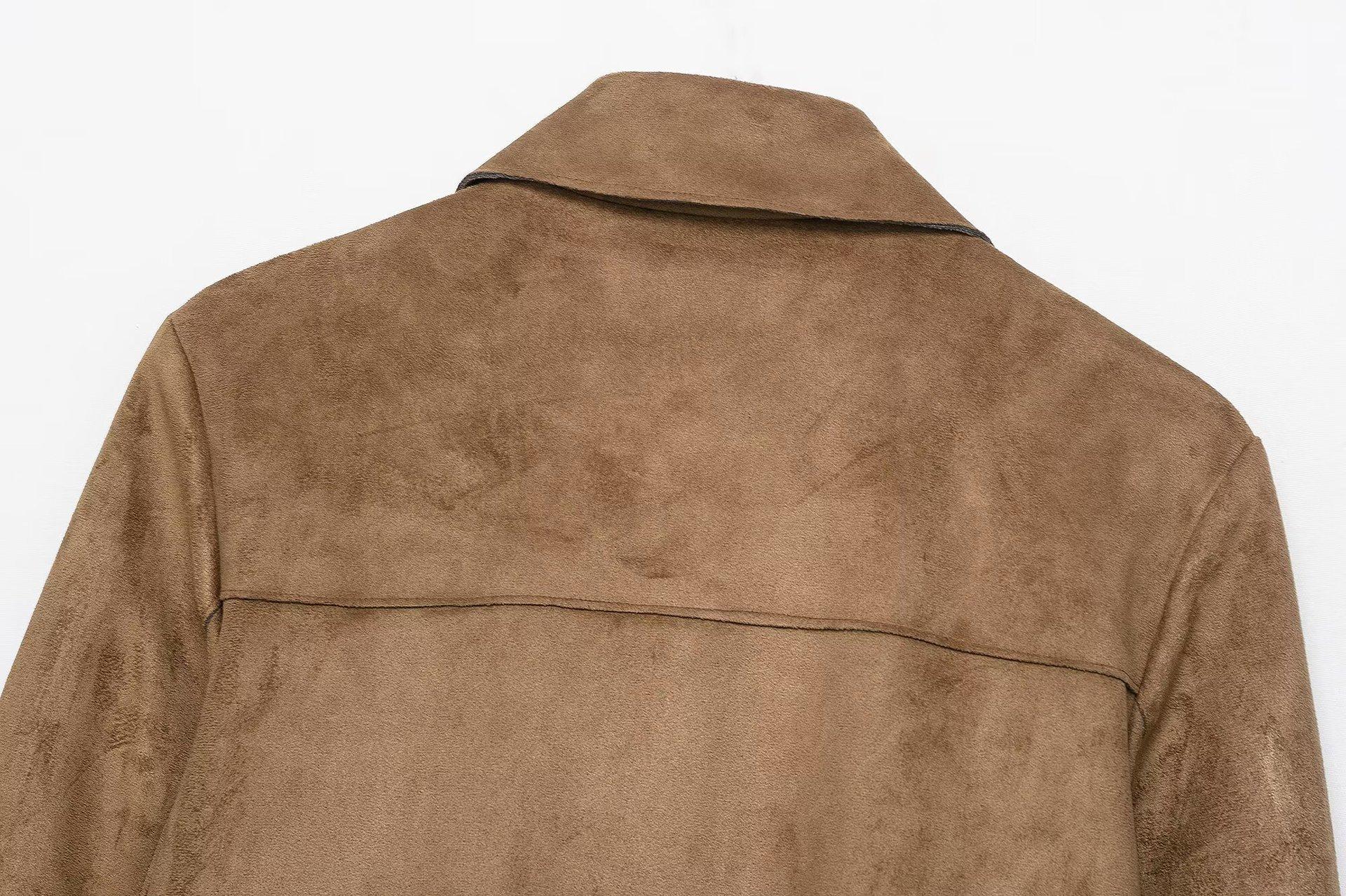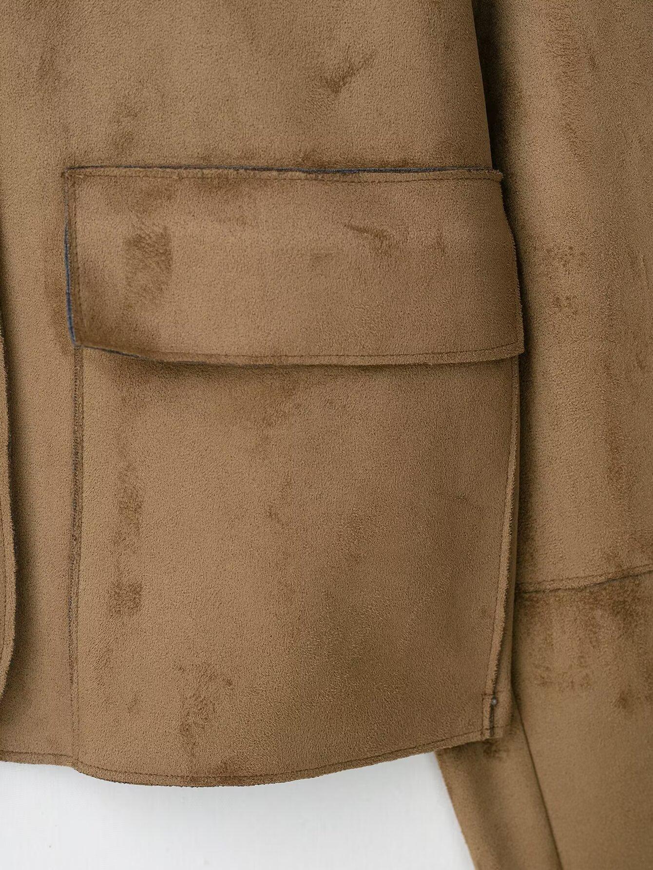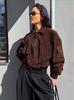 Ropa de mujer de comercio exterior transfronterizo 2025 otoño chaqueta europea y americana con solapa de manga larga con textura de gamuza uniforme de béisbol para mujer D6355027