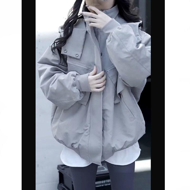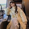 Estilo Europeo Otoño e Invierno Nuevo Manga Larga Moda Bolsillo Largo Medio Suelto Cárdigan Acolchado de Algodón Chaqueta Acolchada de Algodón