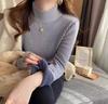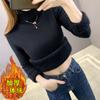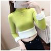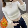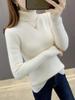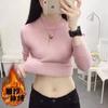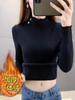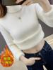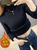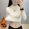 Suéter de lana de una pieza engrosado de cuello semi alto para mujer, capa base ajustada, otoño e invierno, nuevo, engrosado y con forro polar, suéter de punto de color sólido para llevar debajo