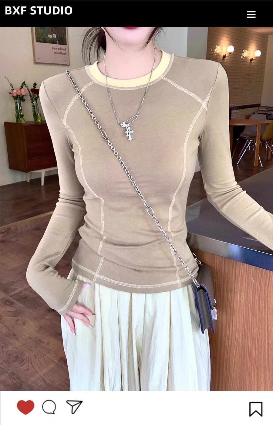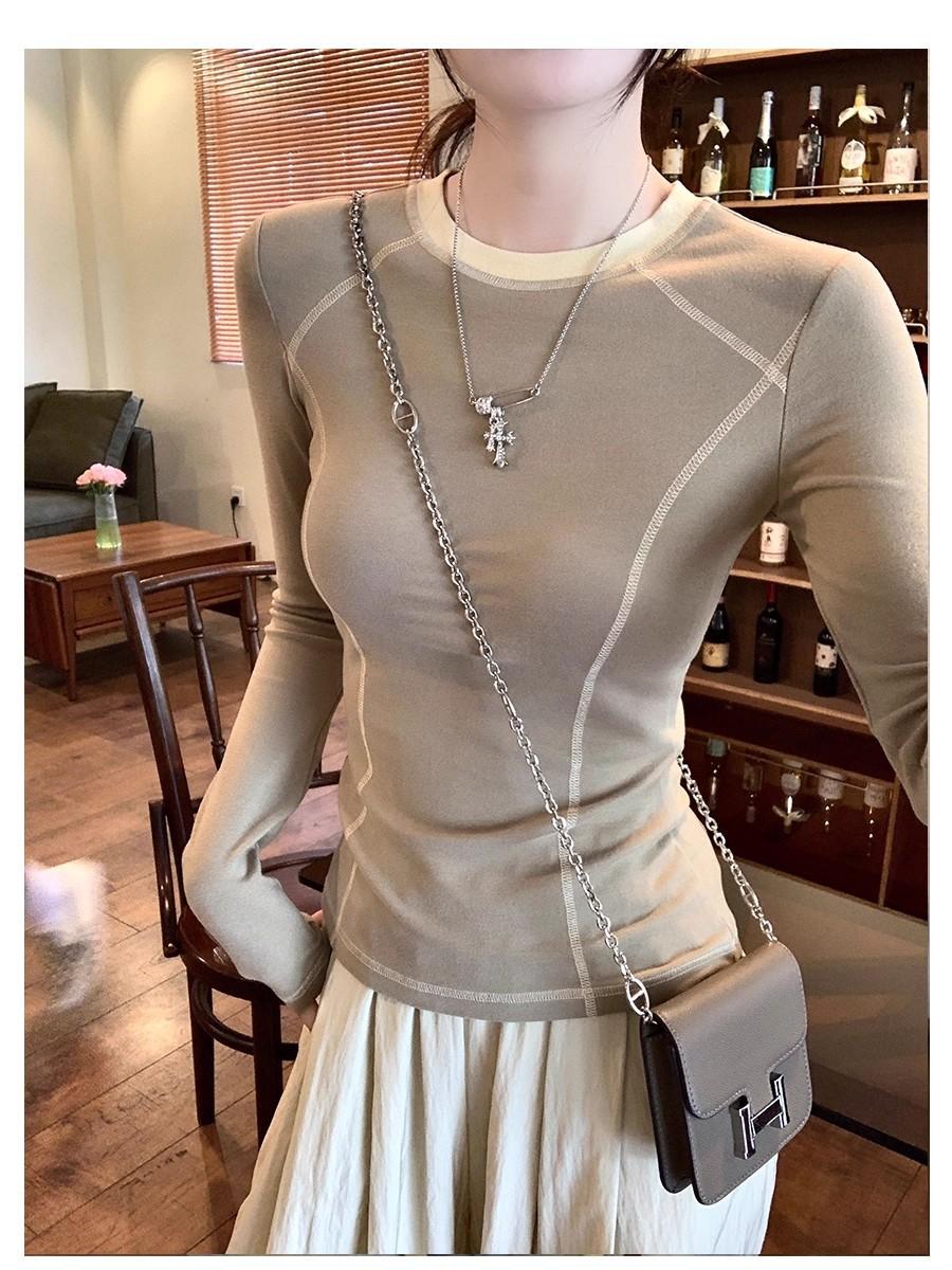 Capa base de manga larga de estilo de alta gama para mujer, nueva colección otoño-invierno 2024, estilo extranjero, corte ajustado, adelgazante, camiseta interior
