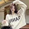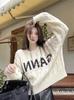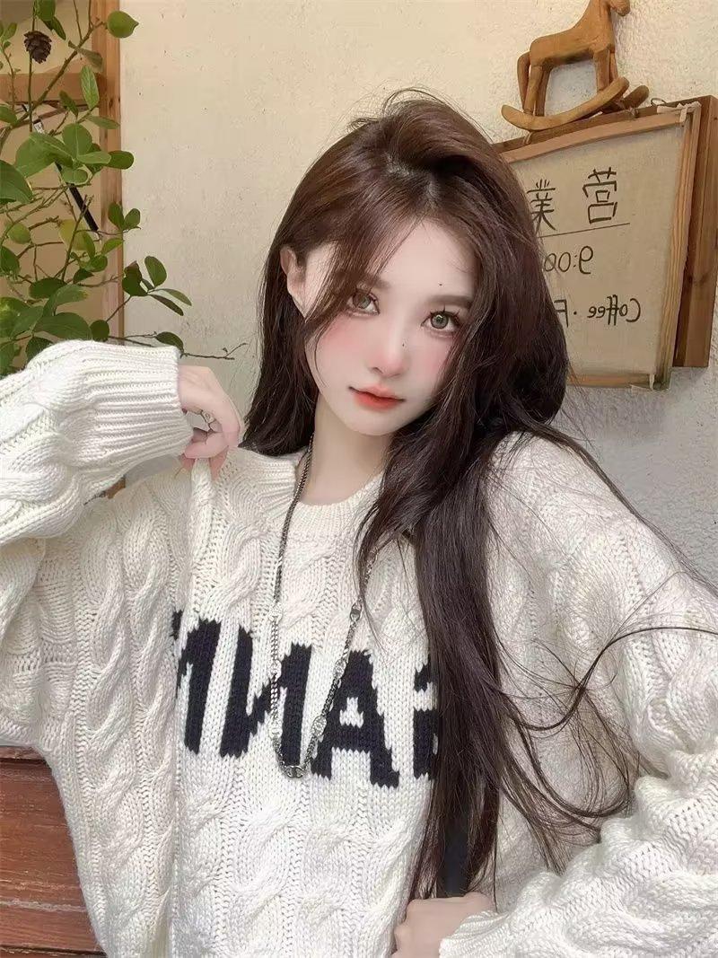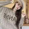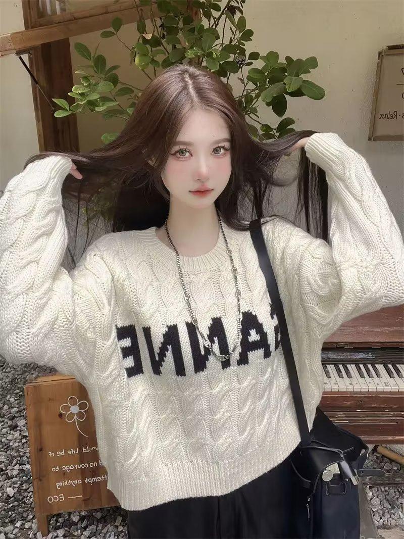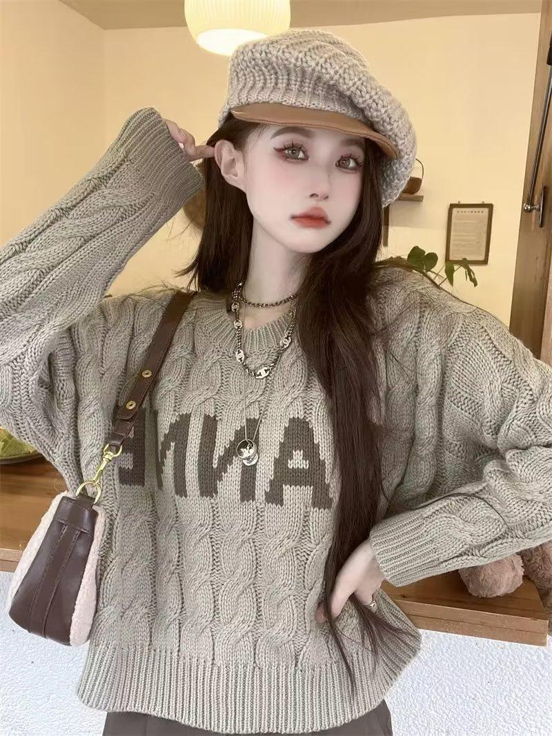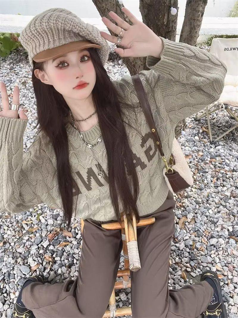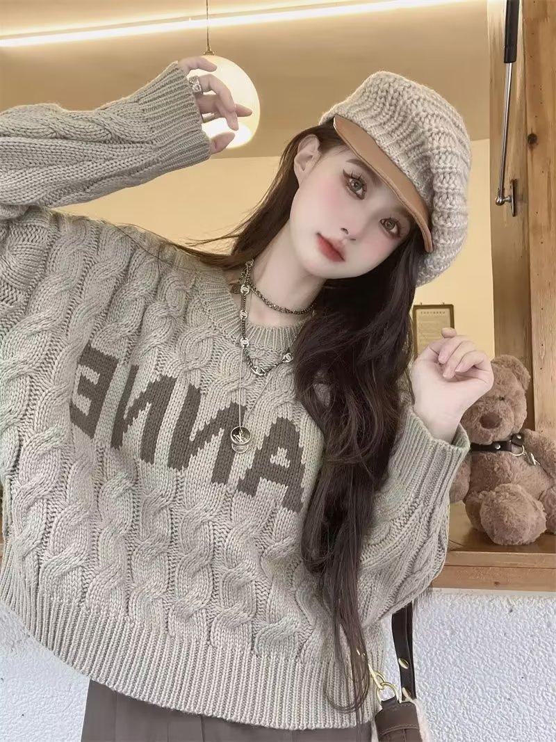 Suéter de Mujer Cuello Redondo ins Marca de Moda 2025 Otoño/Invierno Punto Retro Estilo Hong Kong Casual Suéter de Punto Albaricoque Grueso