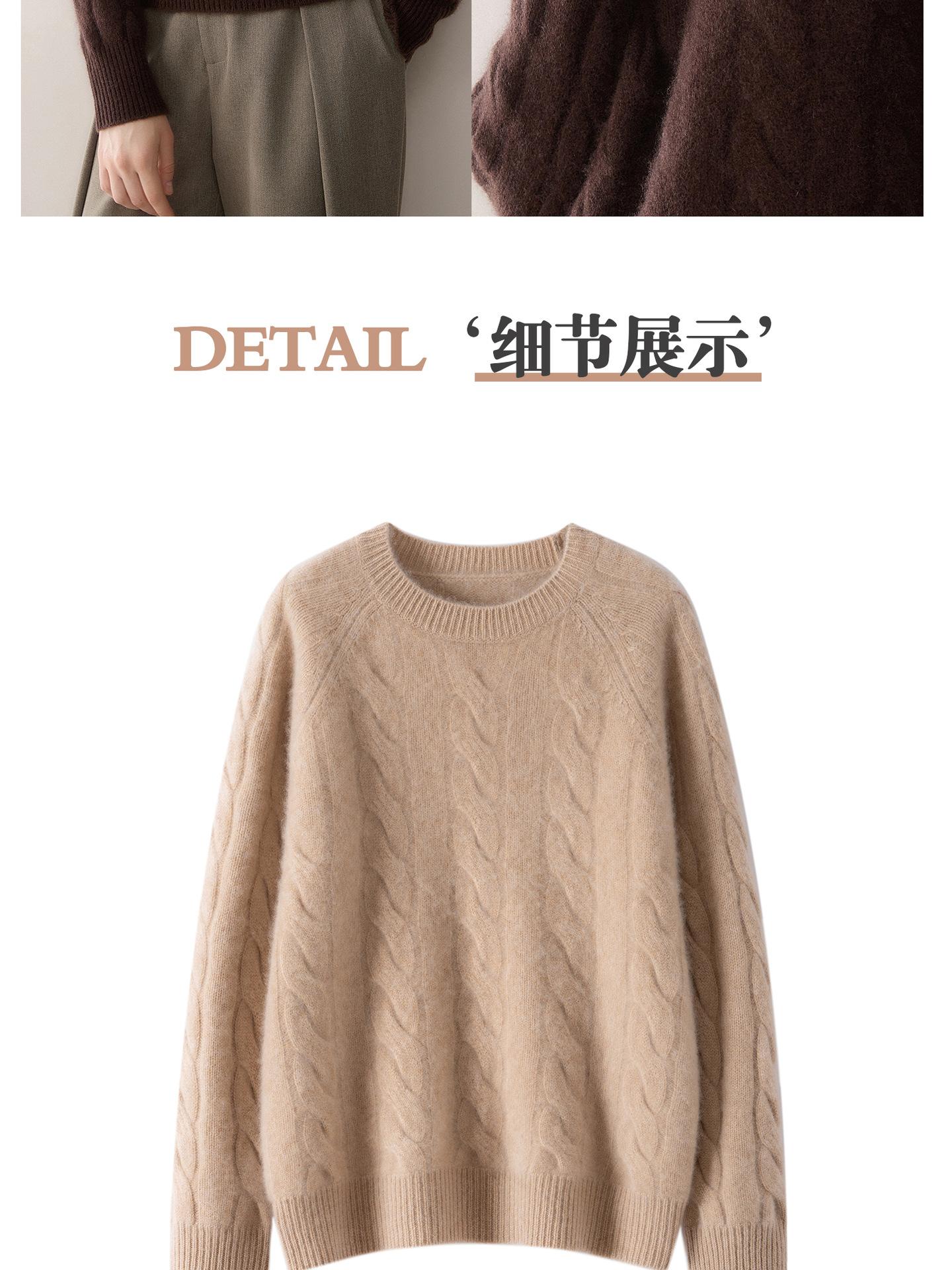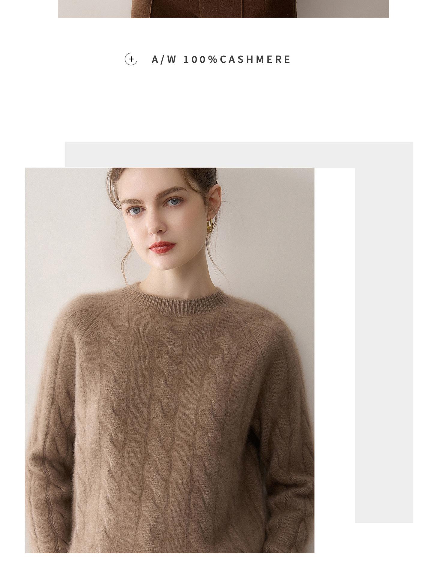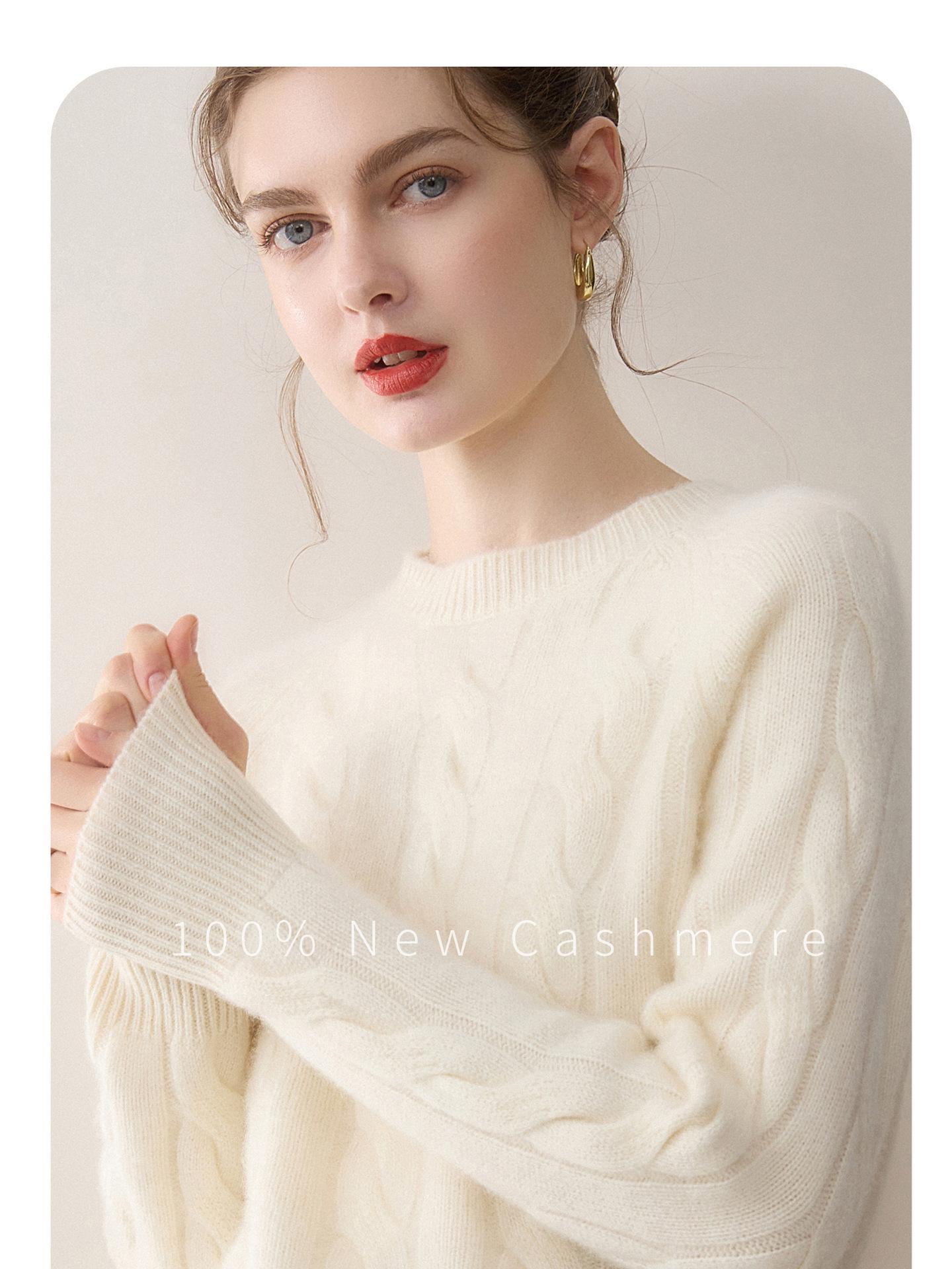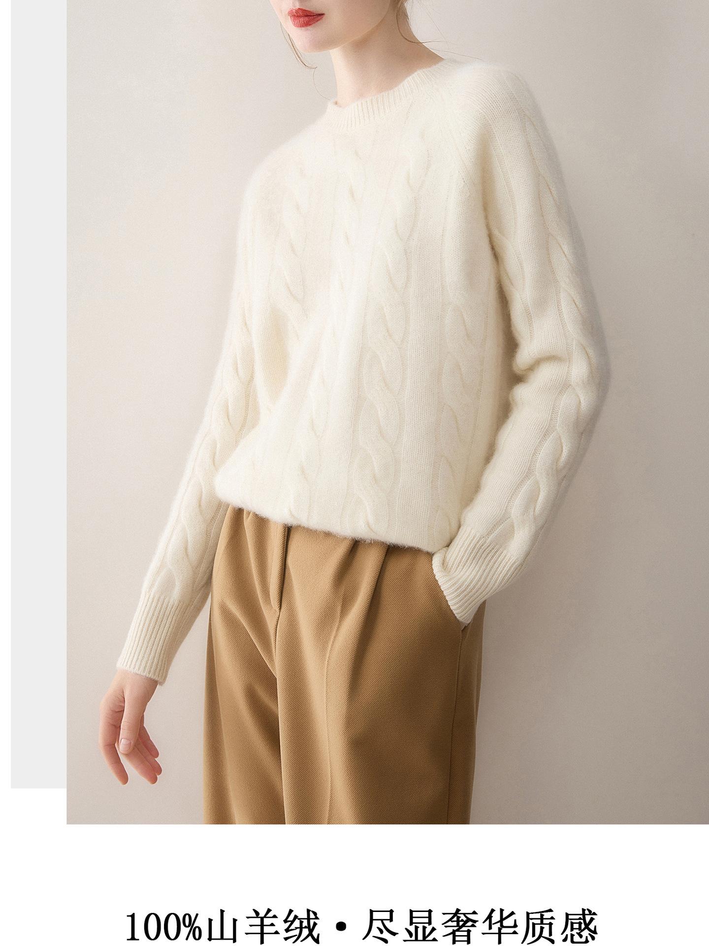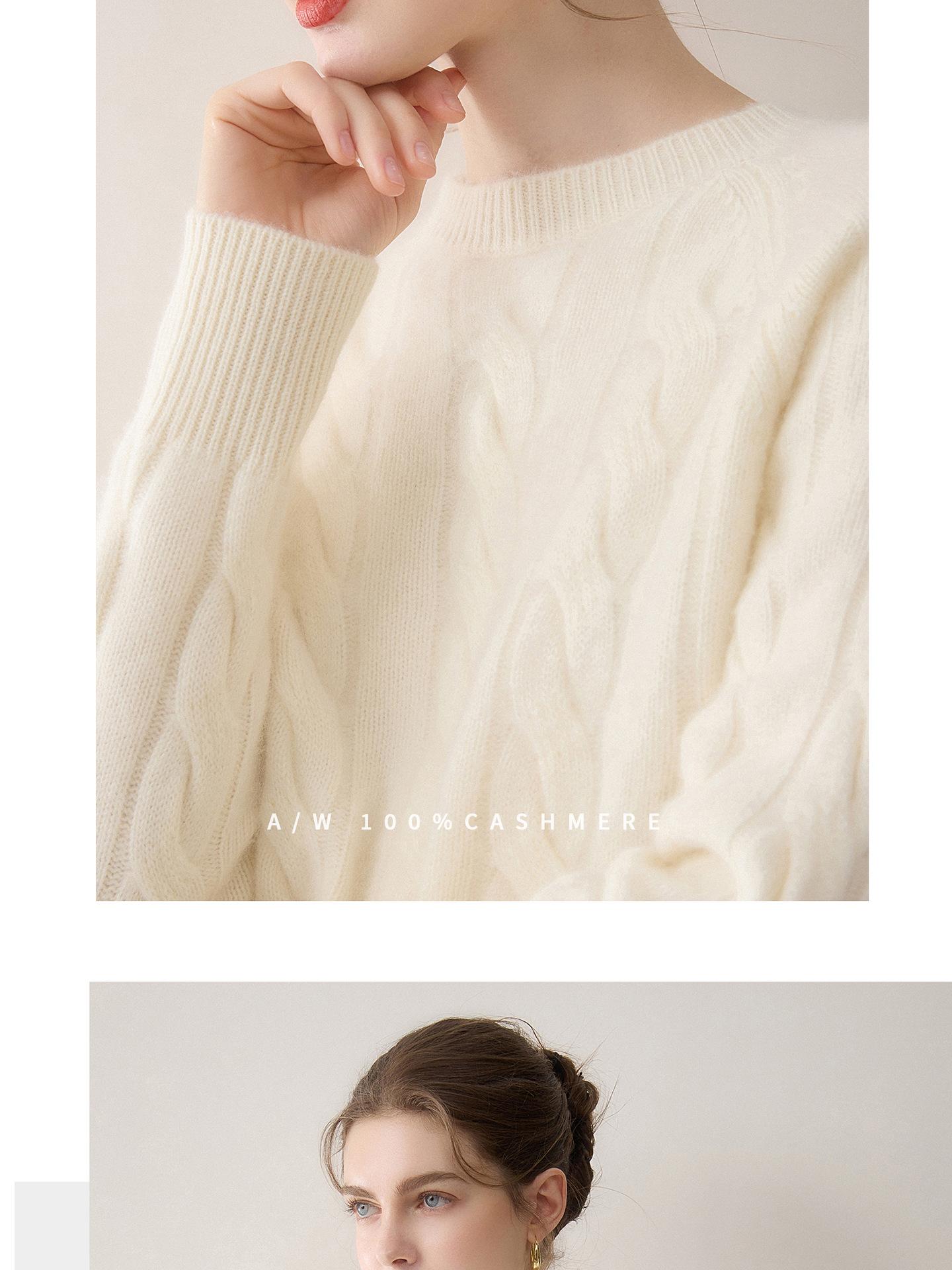 Suéter de Cachemira Nuevo Otoño/Invierno para Mujer Cuello Redondo Grueso Holgado Tejido de Cable Manga Larga Suéter Base Suave y Ceroso