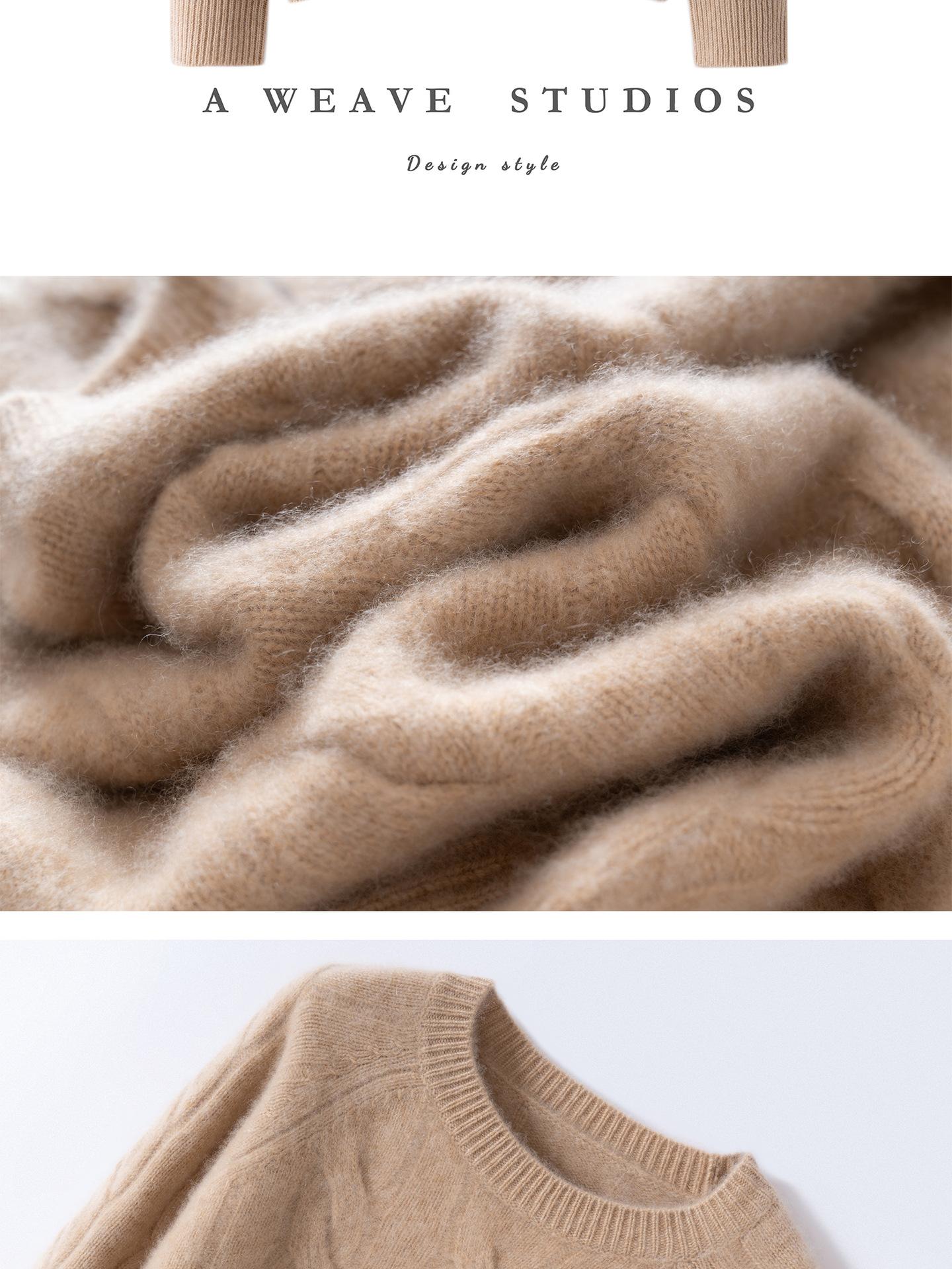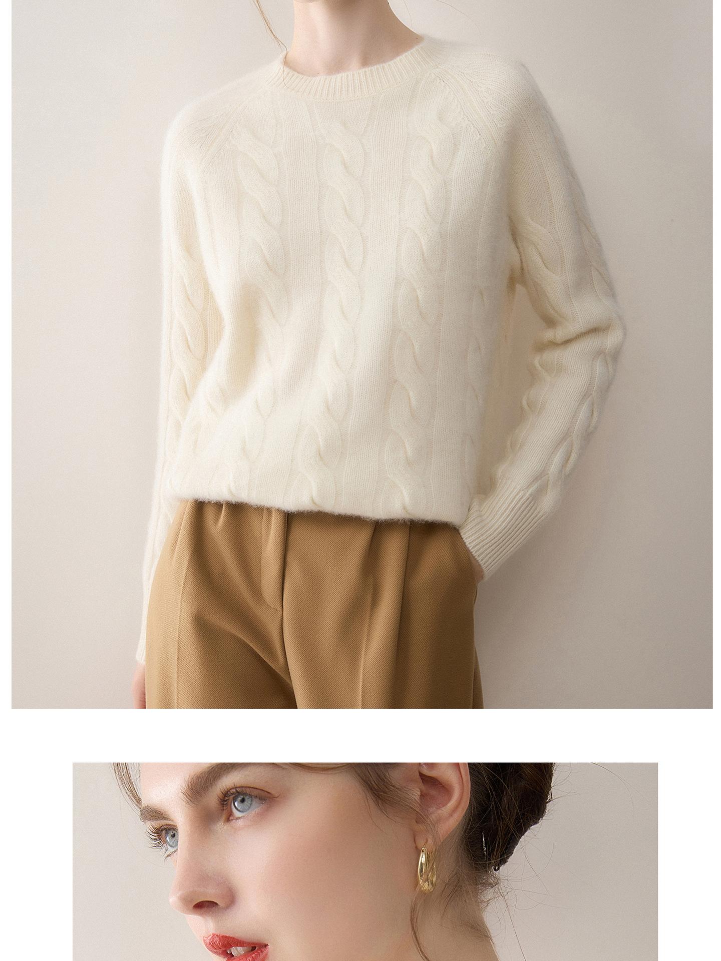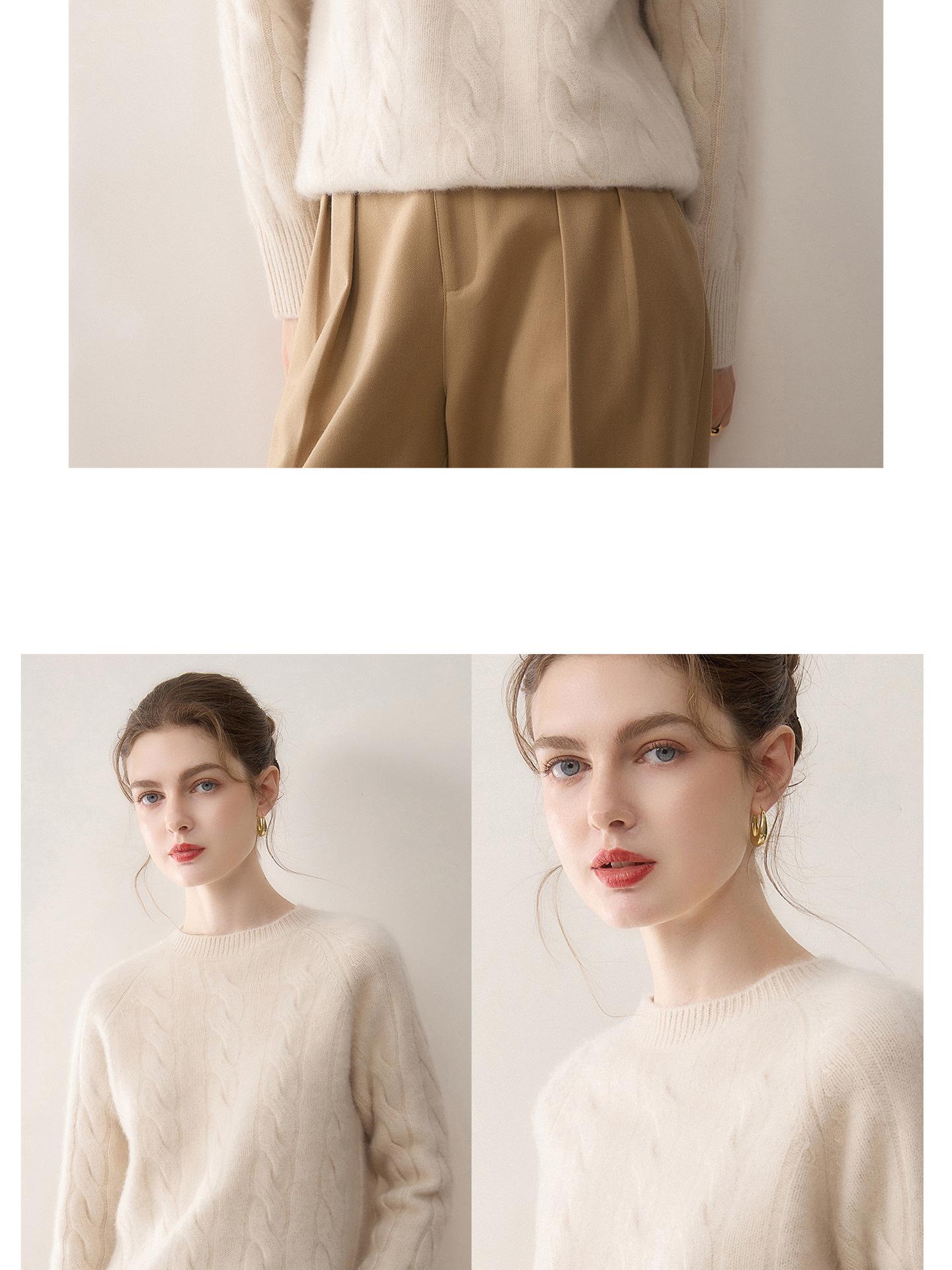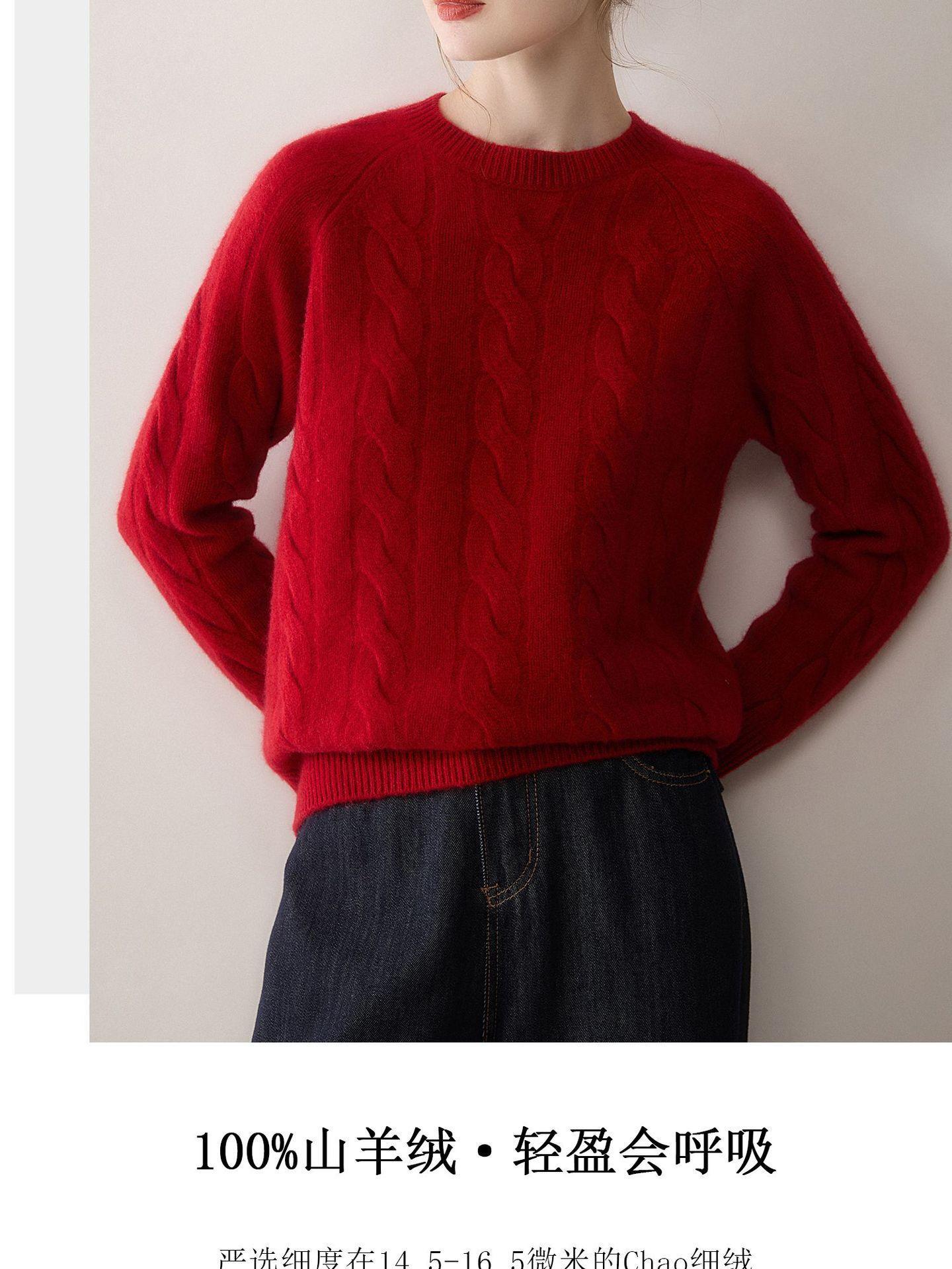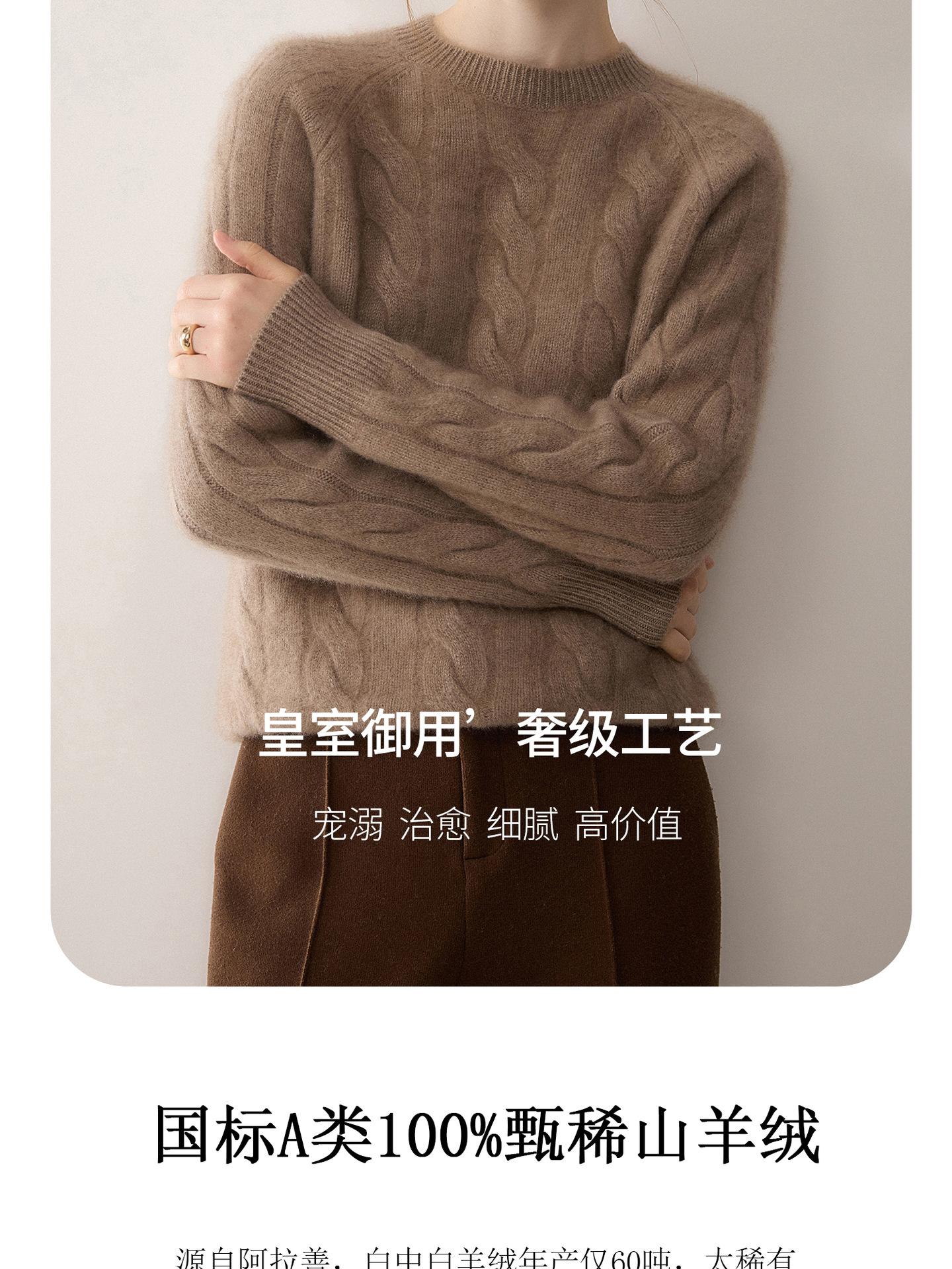 Suéter de Cachemira Nuevo Otoño/Invierno para Mujer Cuello Redondo Grueso Holgado Tejido de Cable Manga Larga Suéter Base Suave y Ceroso