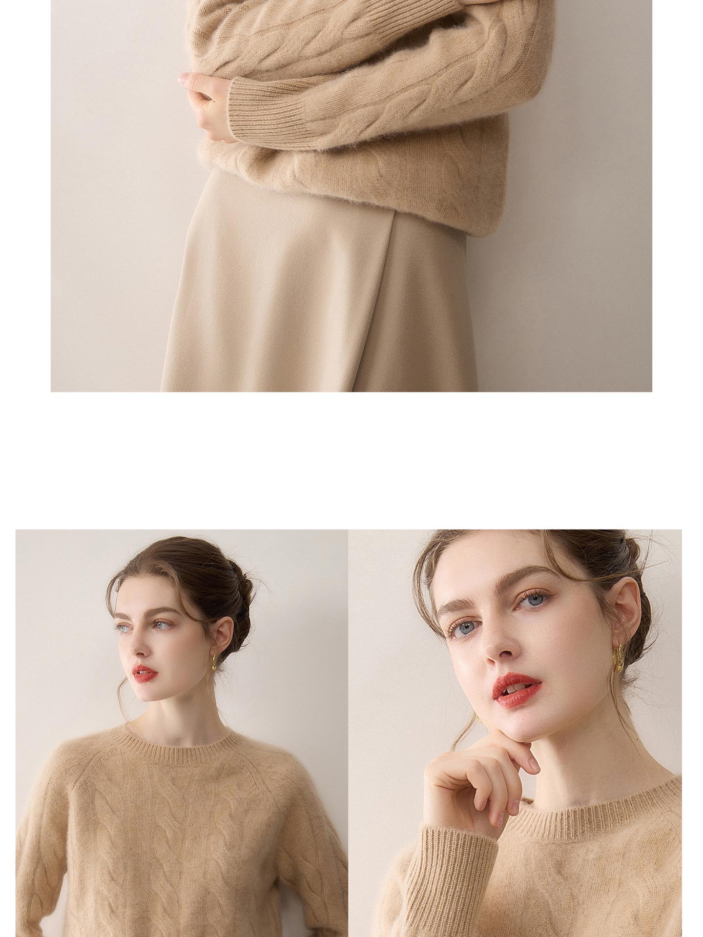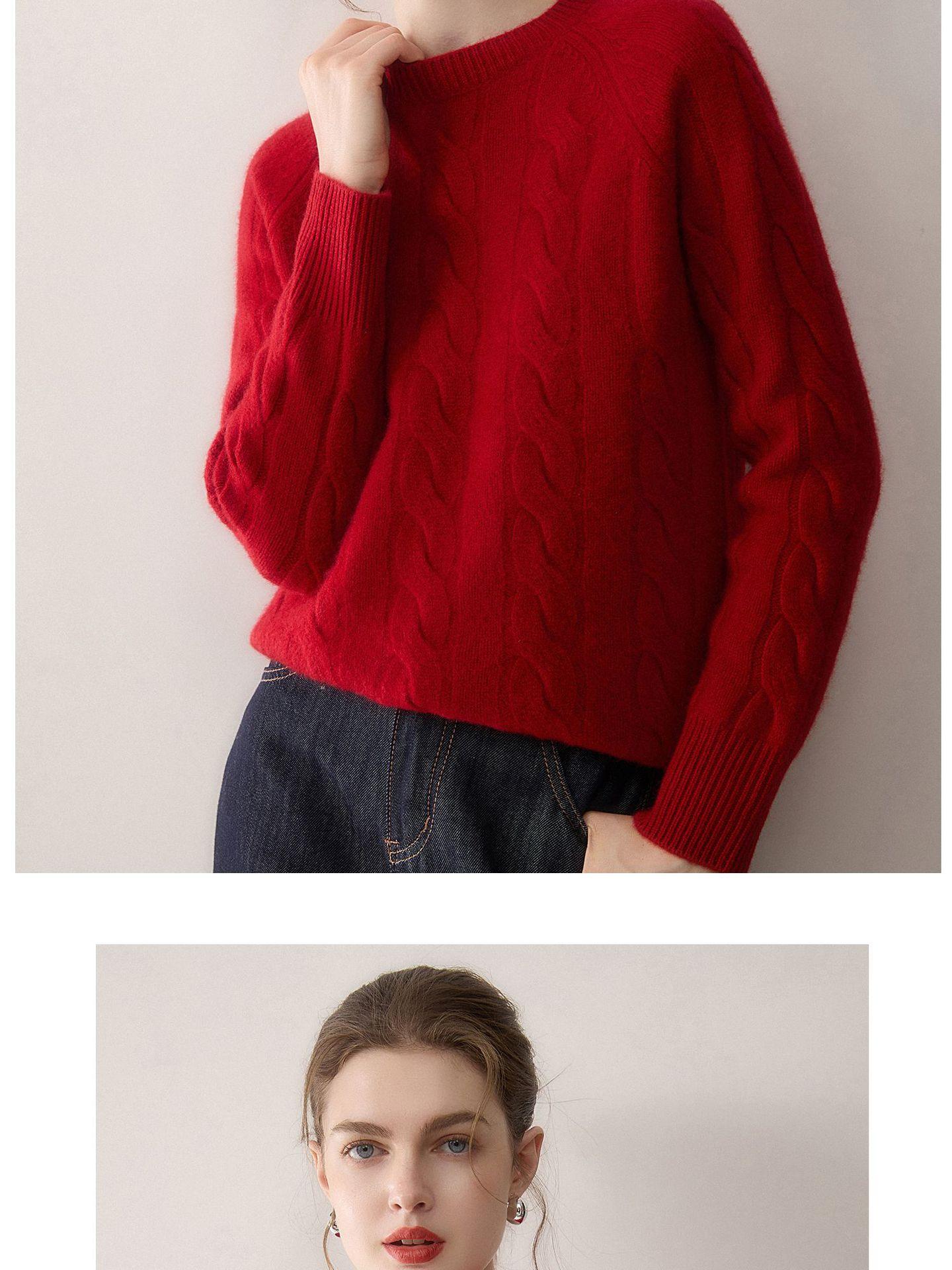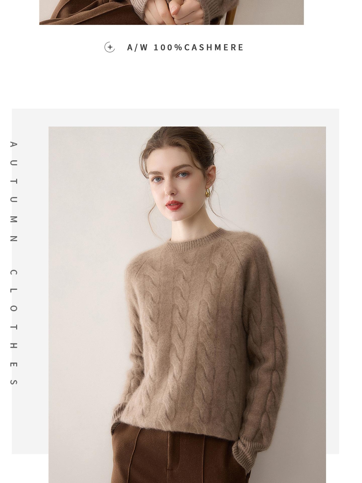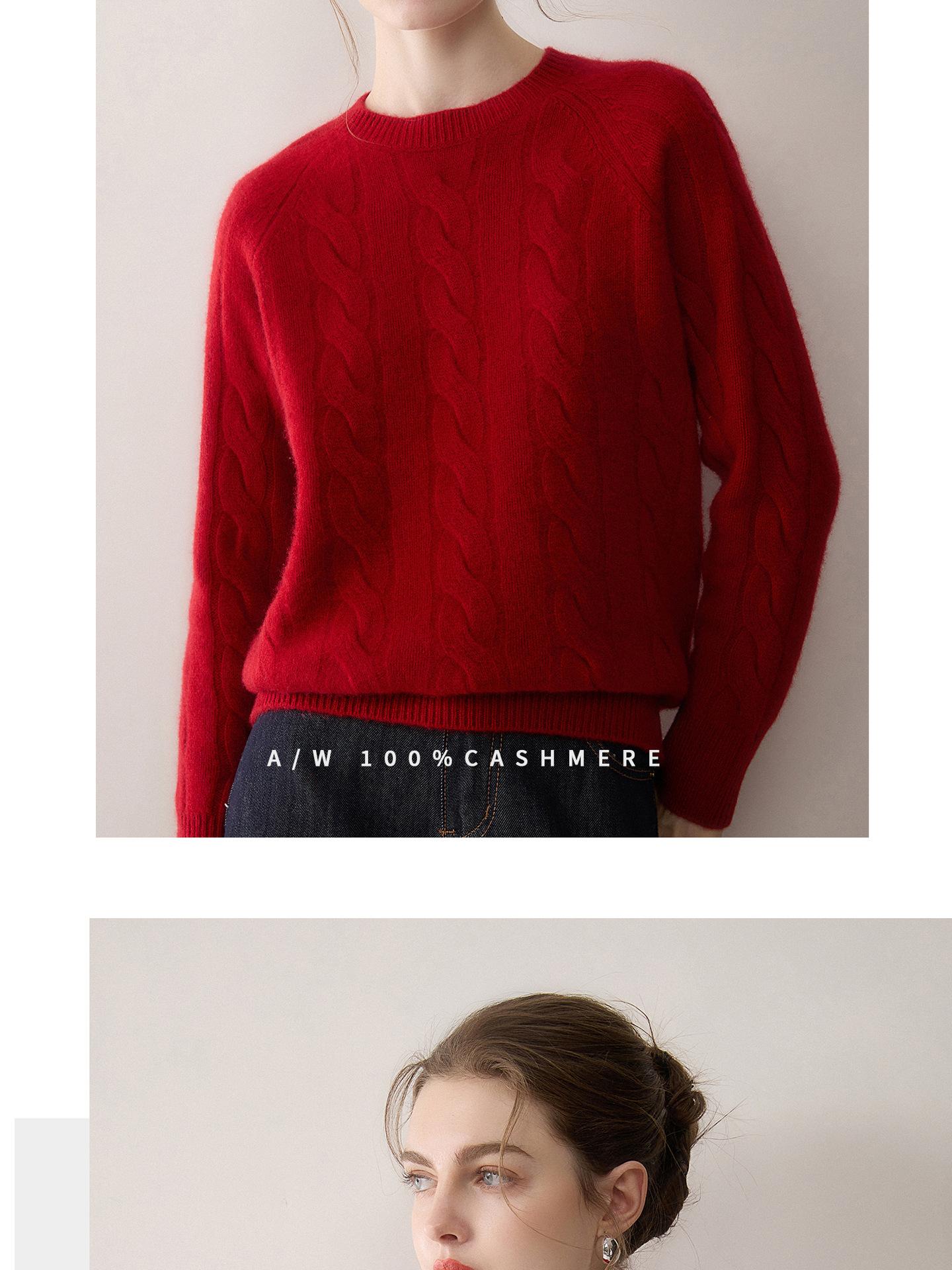Suéter de Cachemira Nuevo Otoño/Invierno para Mujer Cuello Redondo Grueso Holgado Tejido de Cable Manga Larga Suéter Base Suave y Ceroso