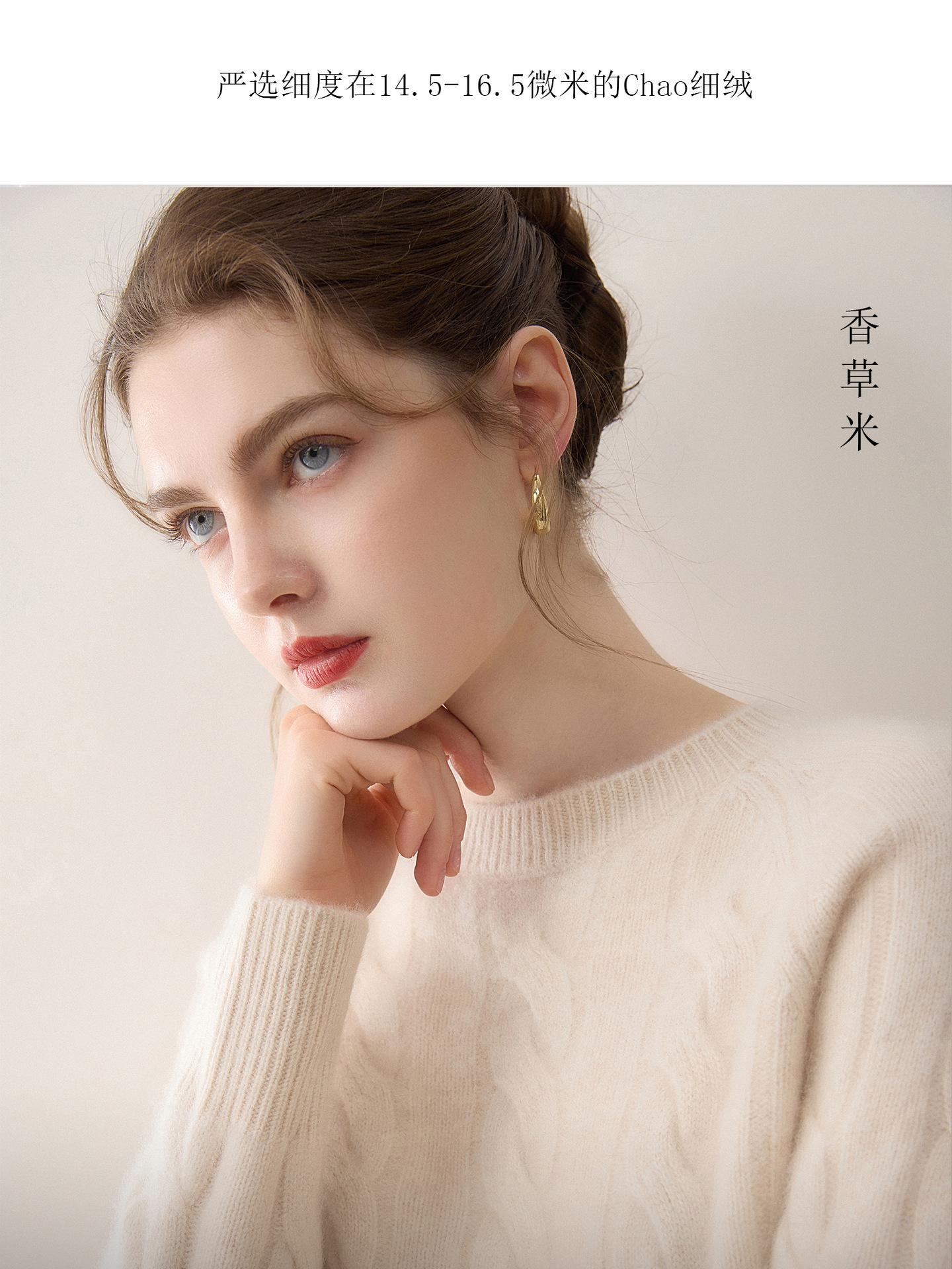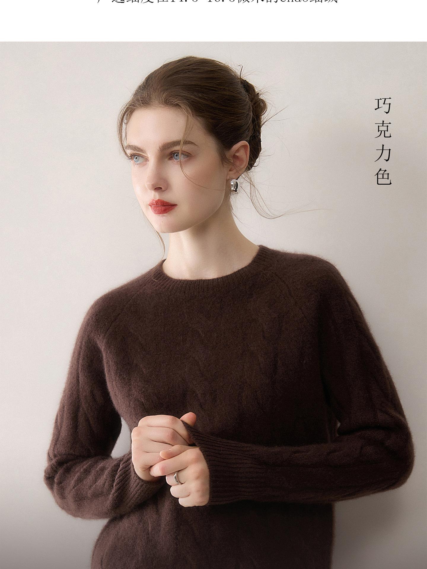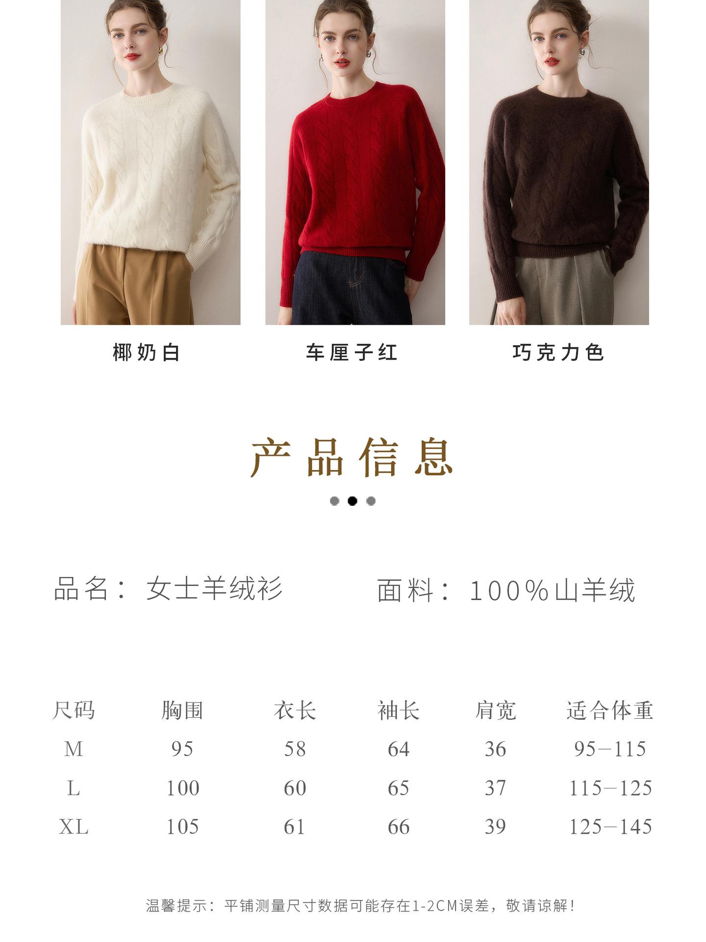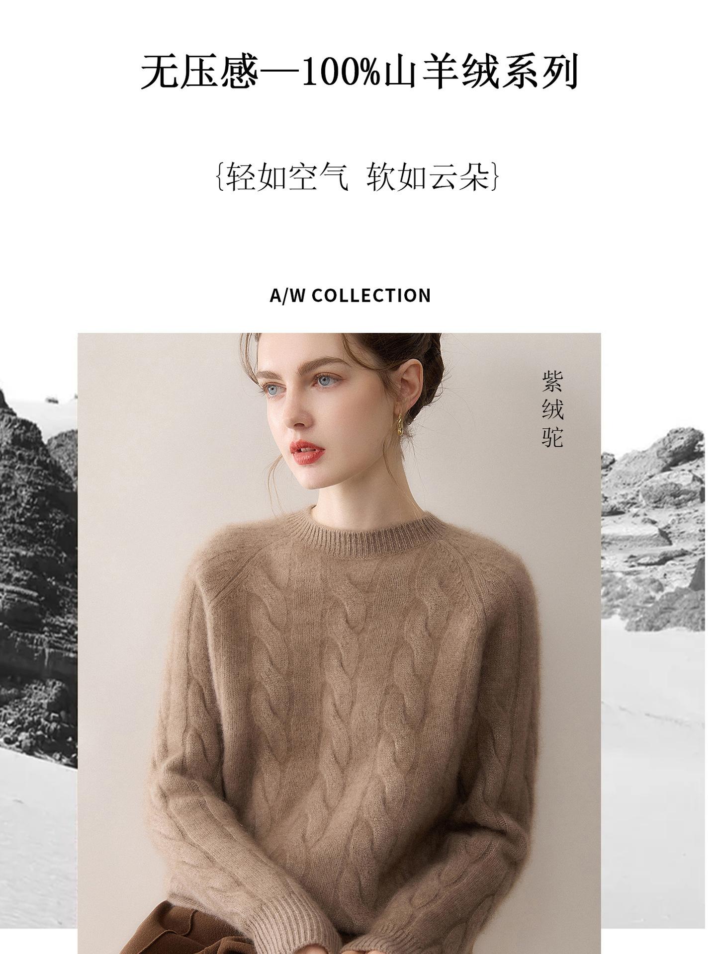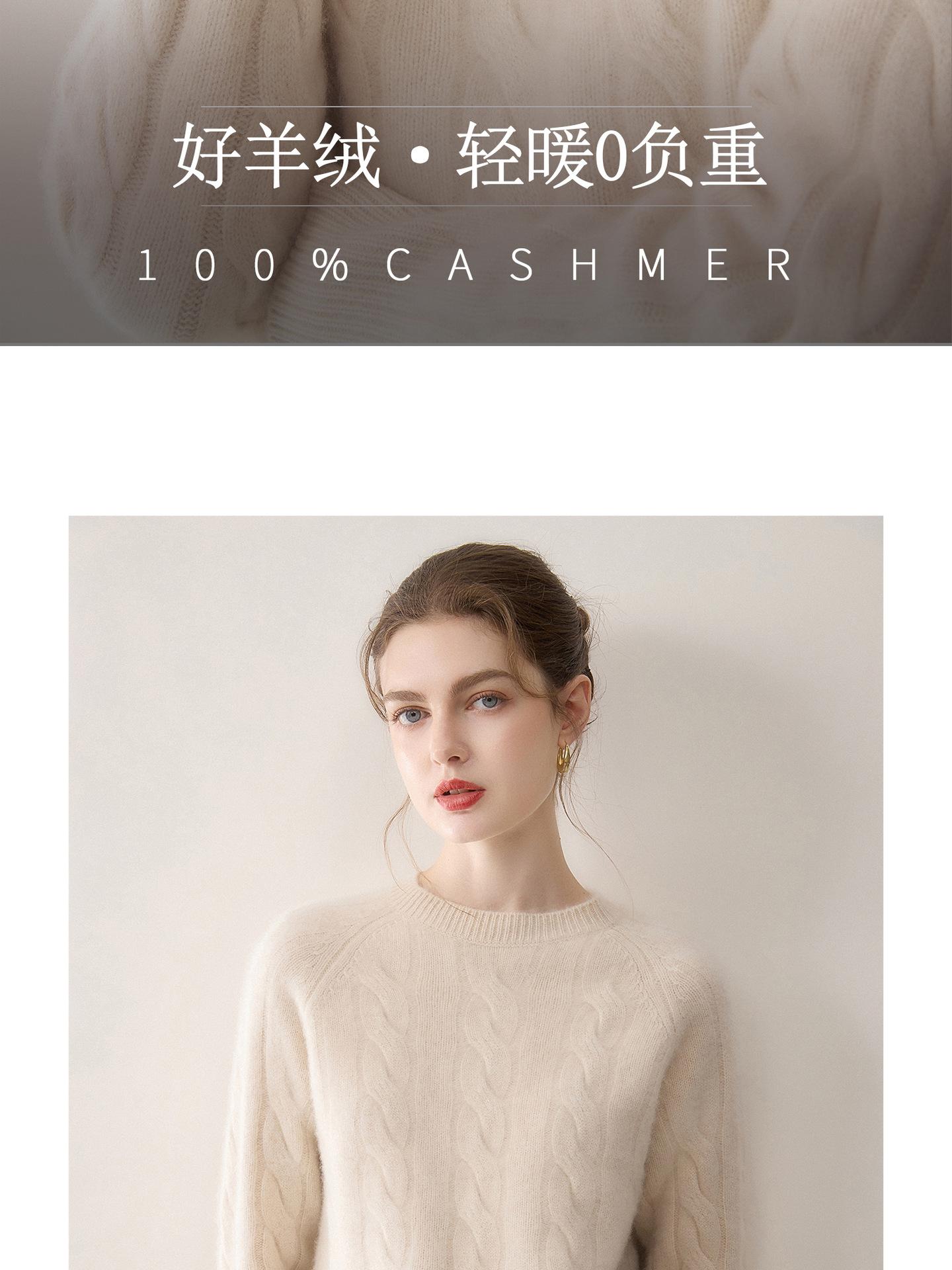 Suéter de Cachemira Nuevo Otoño/Invierno para Mujer Cuello Redondo Grueso Holgado Tejido de Cable Manga Larga Suéter Base Suave y Ceroso