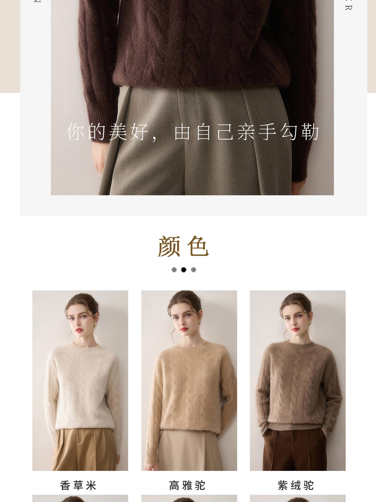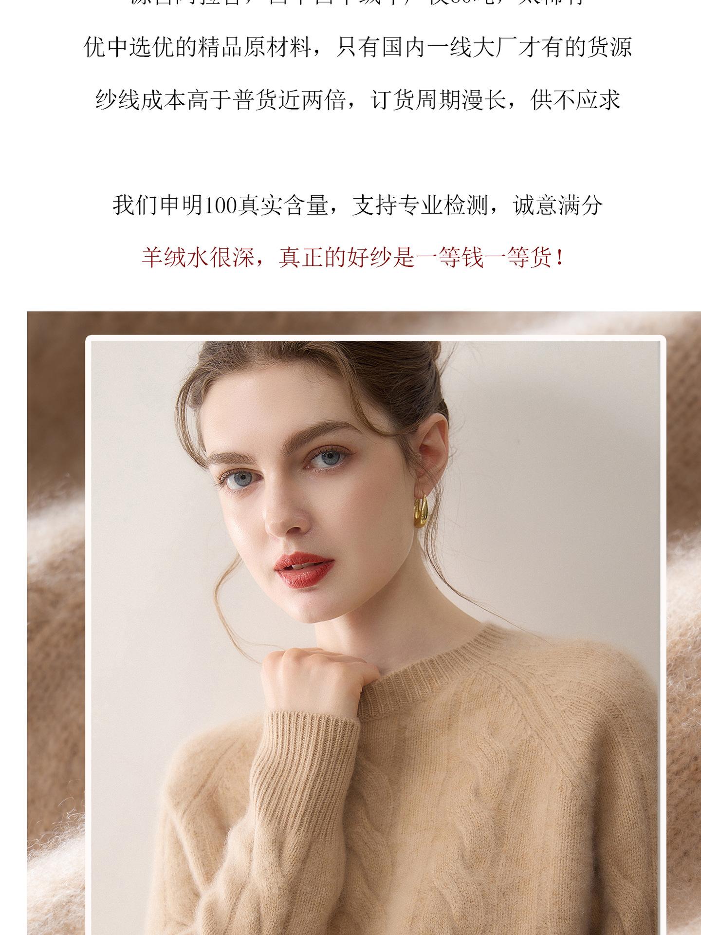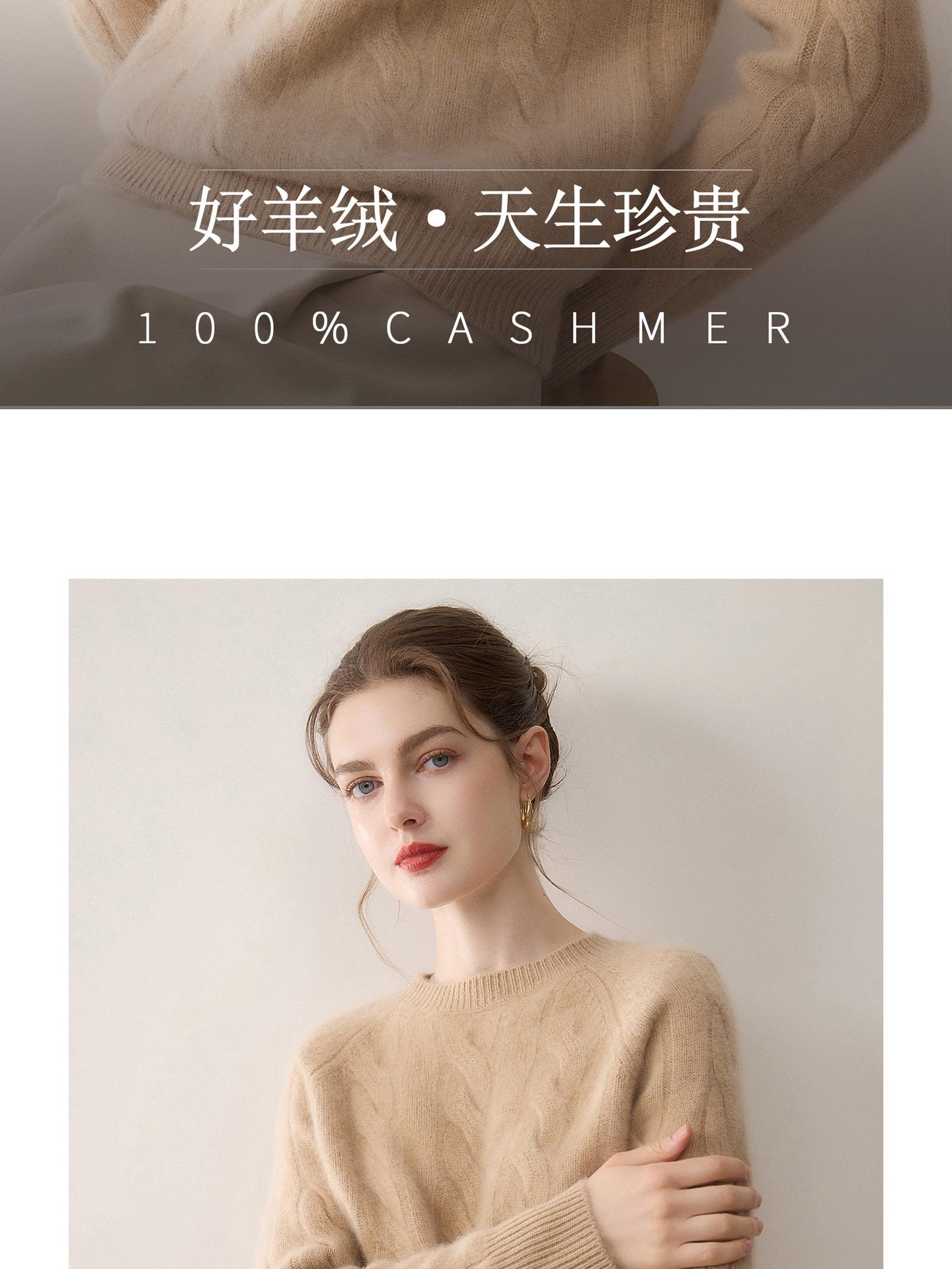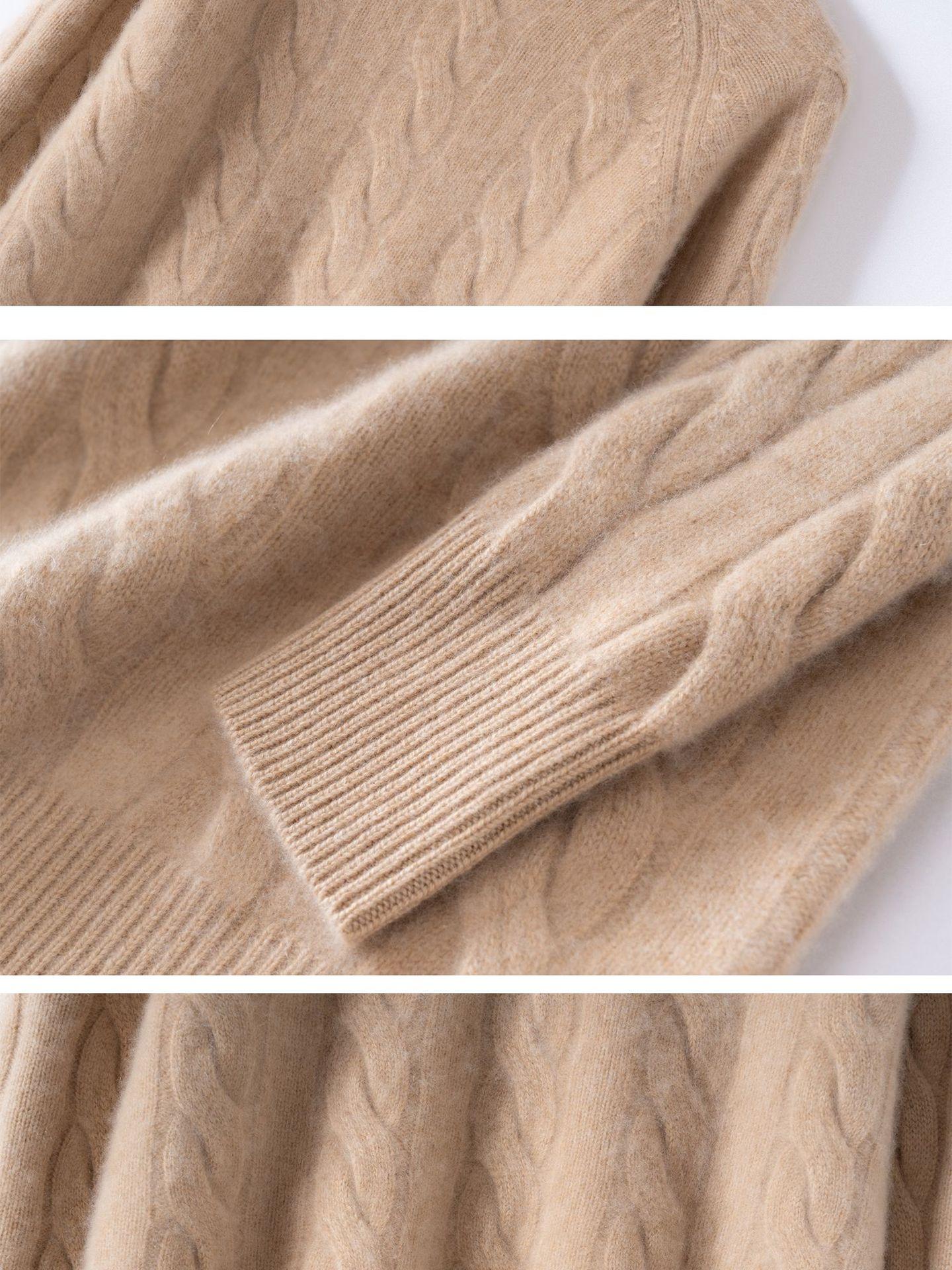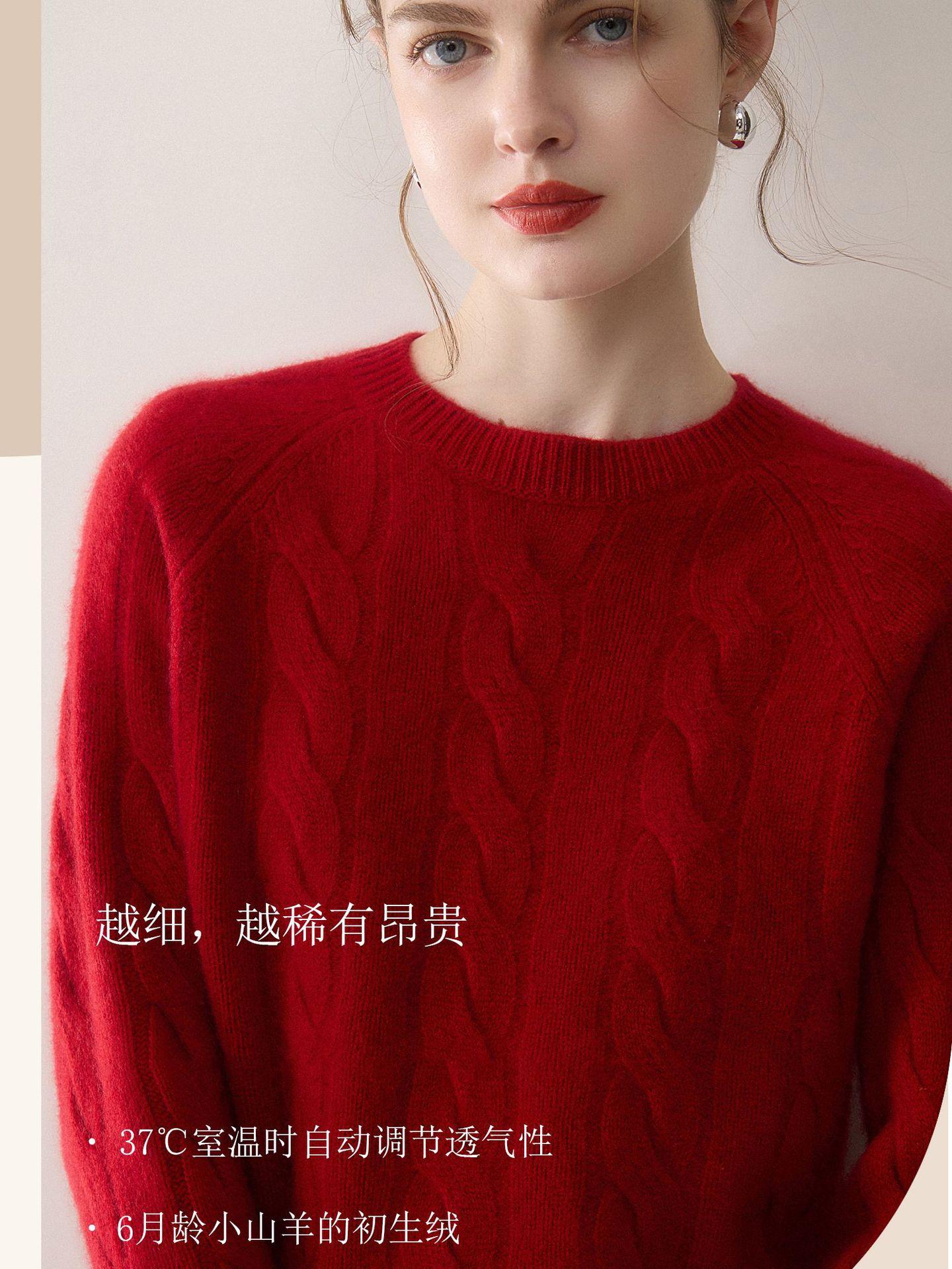 Suéter de Cachemira Nuevo Otoño/Invierno para Mujer Cuello Redondo Grueso Holgado Tejido de Cable Manga Larga Suéter Base Suave y Ceroso