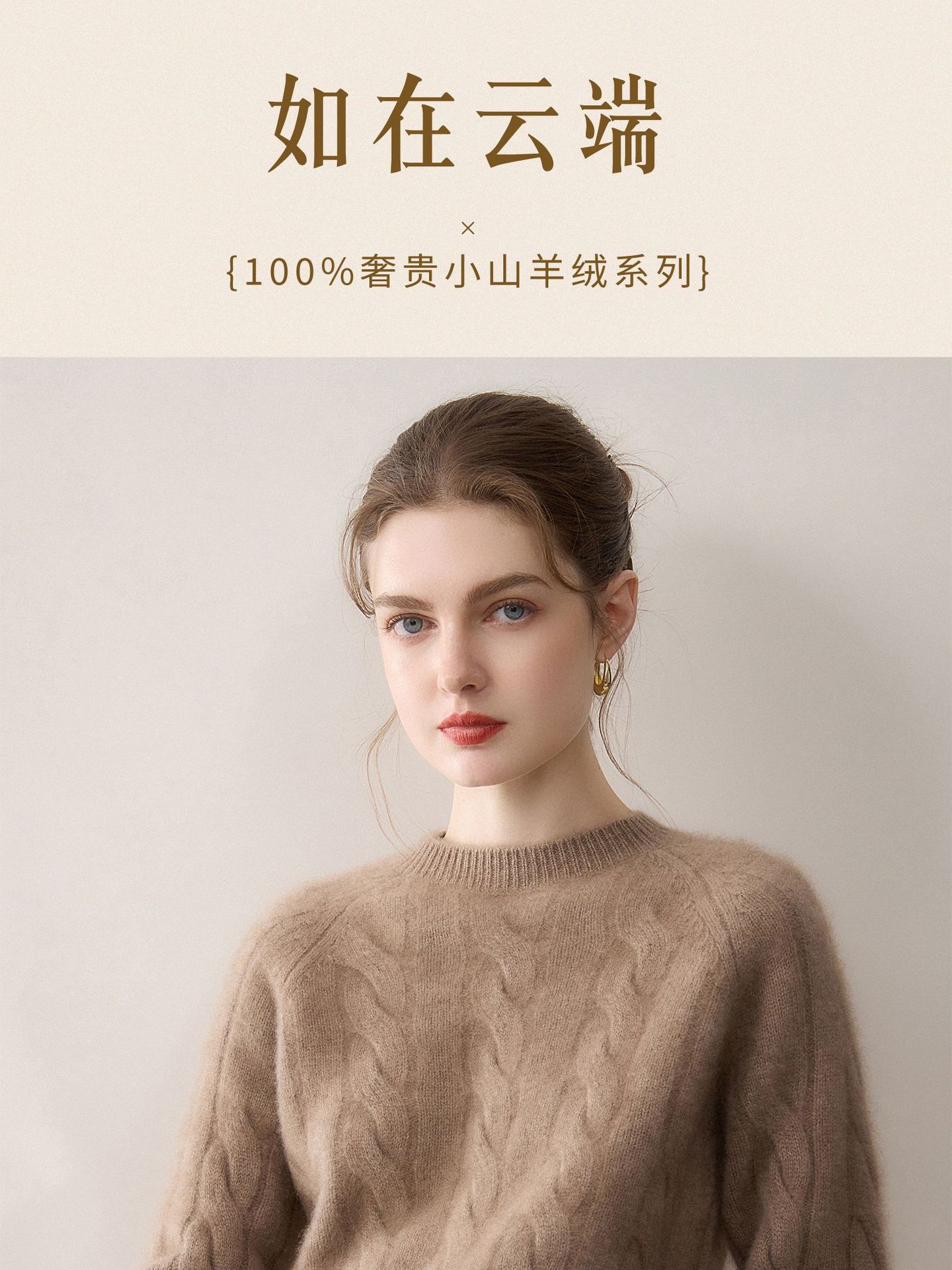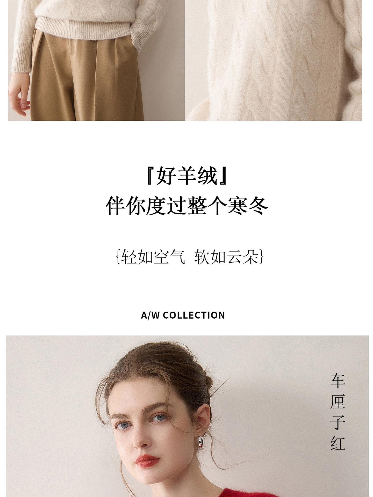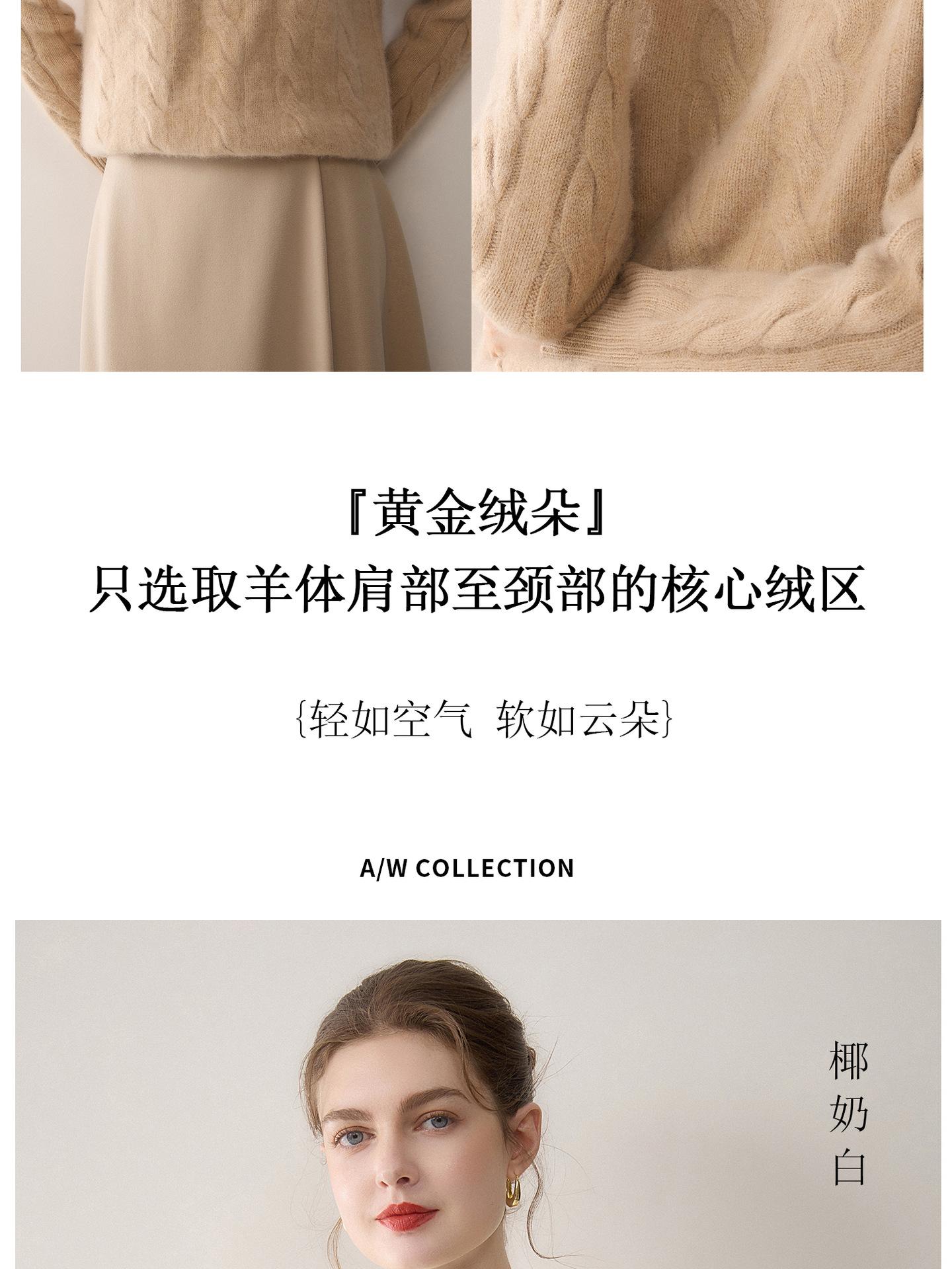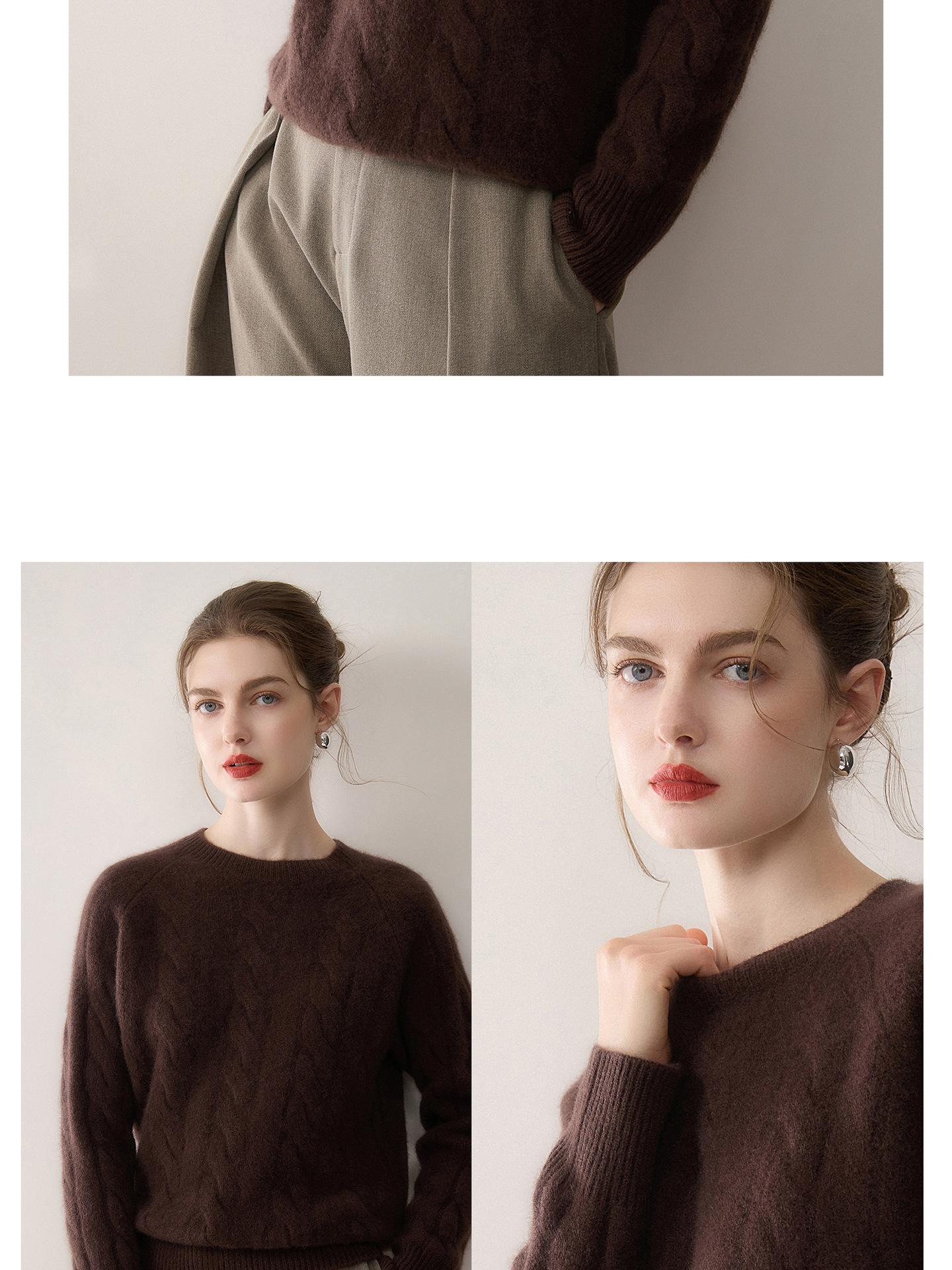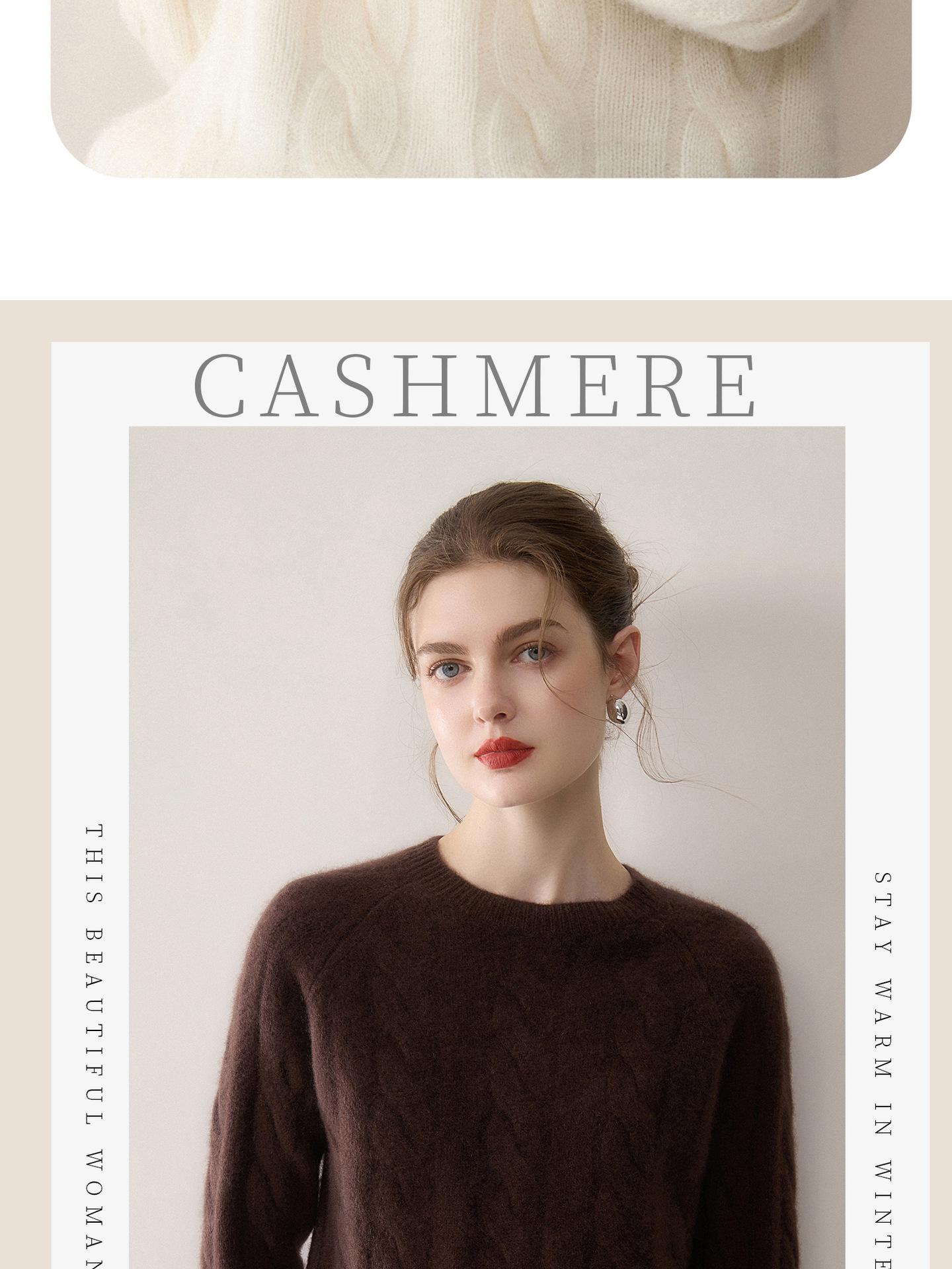 Suéter de Cachemira Nuevo Otoño/Invierno para Mujer Cuello Redondo Grueso Holgado Tejido de Cable Manga Larga Suéter Base Suave y Ceroso