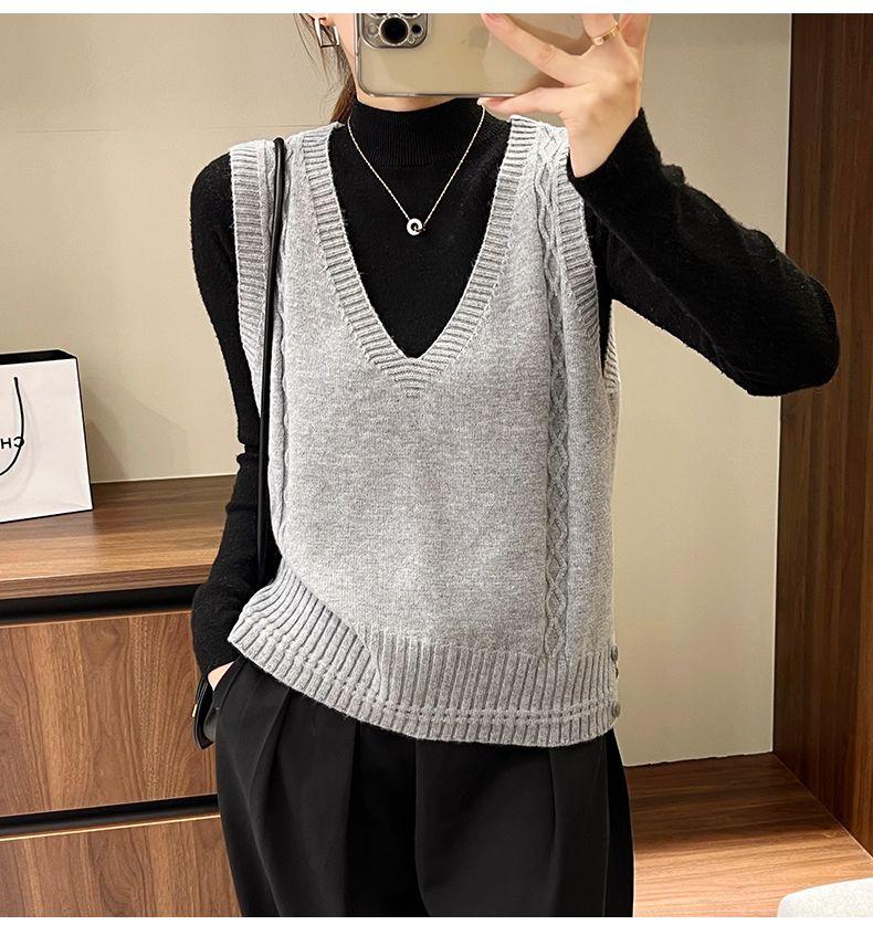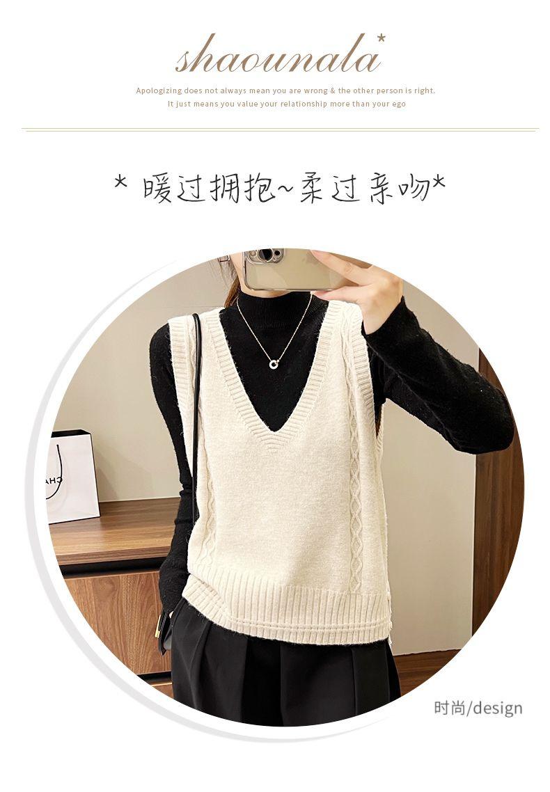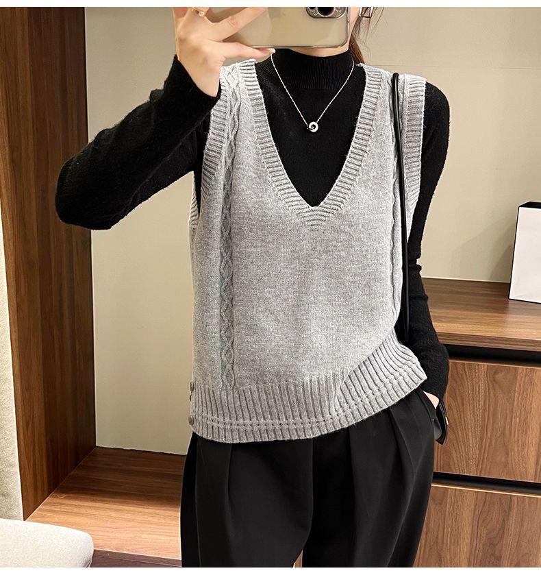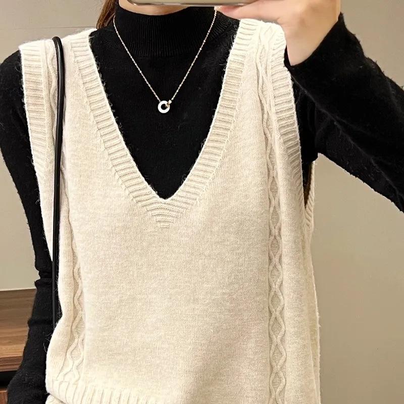 Suéter chaleco de cuello en V para mujer, otoño, nuevo chaleco, estilo coreano, punto de cable, holgado, punto interior, top sin mangas