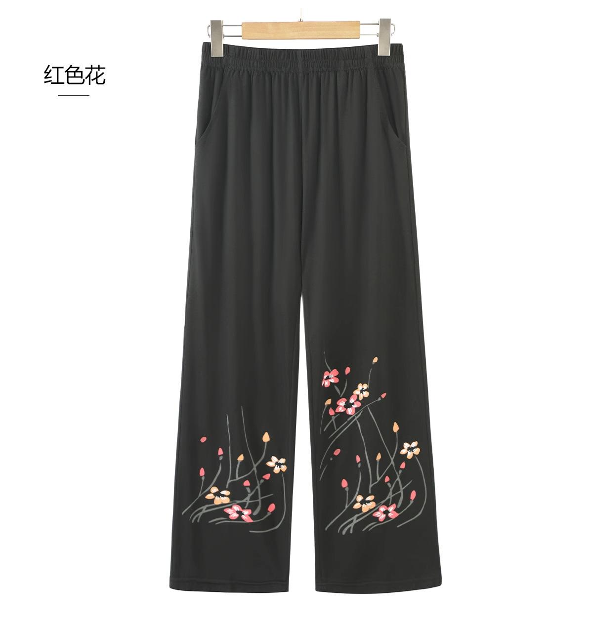 Pantalones Casuales de Color Sólido para Mamá de Mediana Edad y Anciana para Primavera y Verano, Pantalones de Abuelita con Cintura Elástica, Pantalones Rectos Holgados de Moda para Ancianos