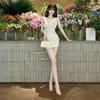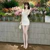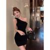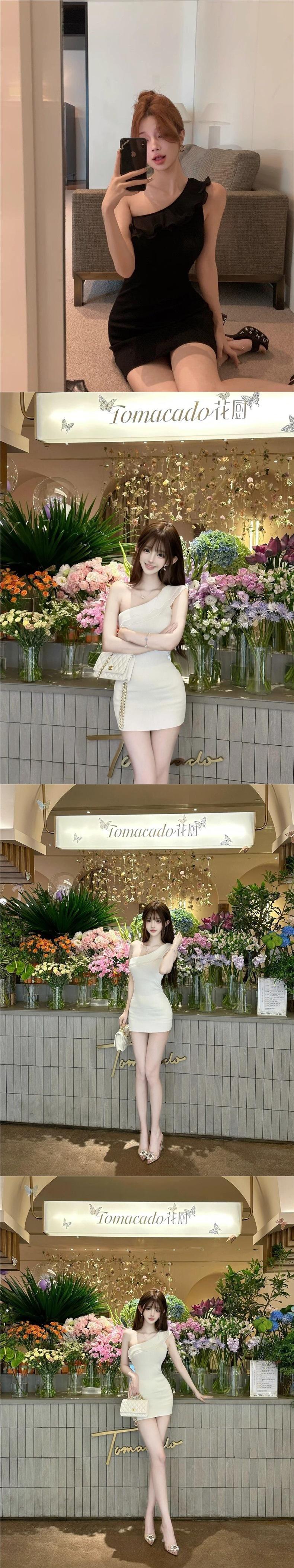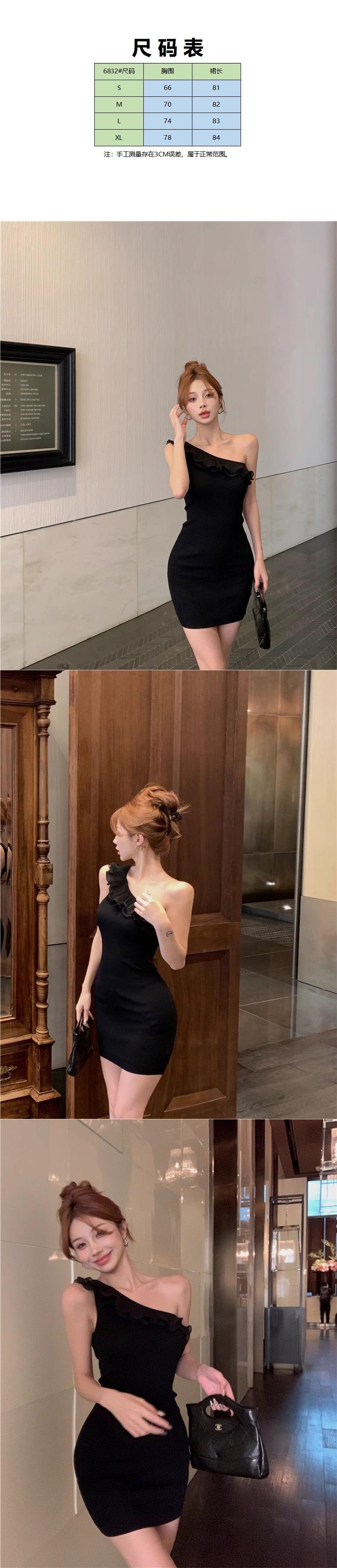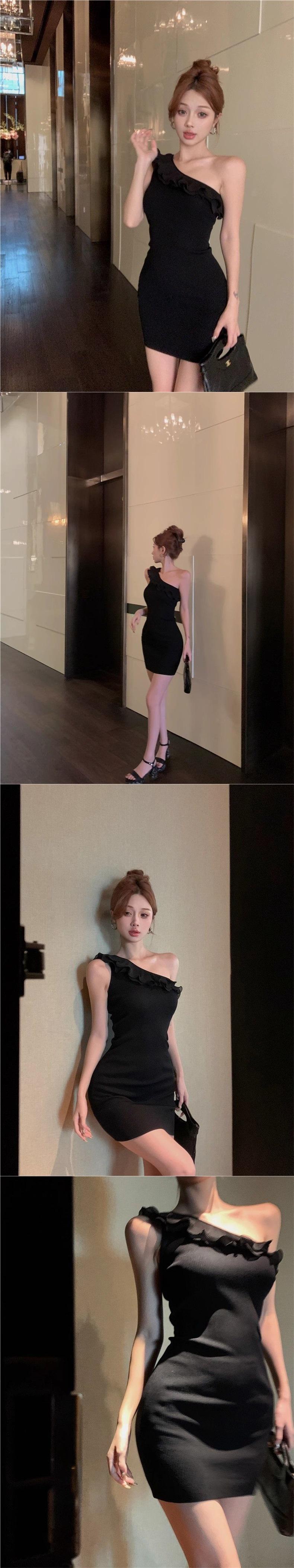 Vestido de verano para mujer, sexy, de estilo puro deseo, con volantes blancos, hombros descubiertos, ajustado, con tirantes, falda corta a la cadera, color negro