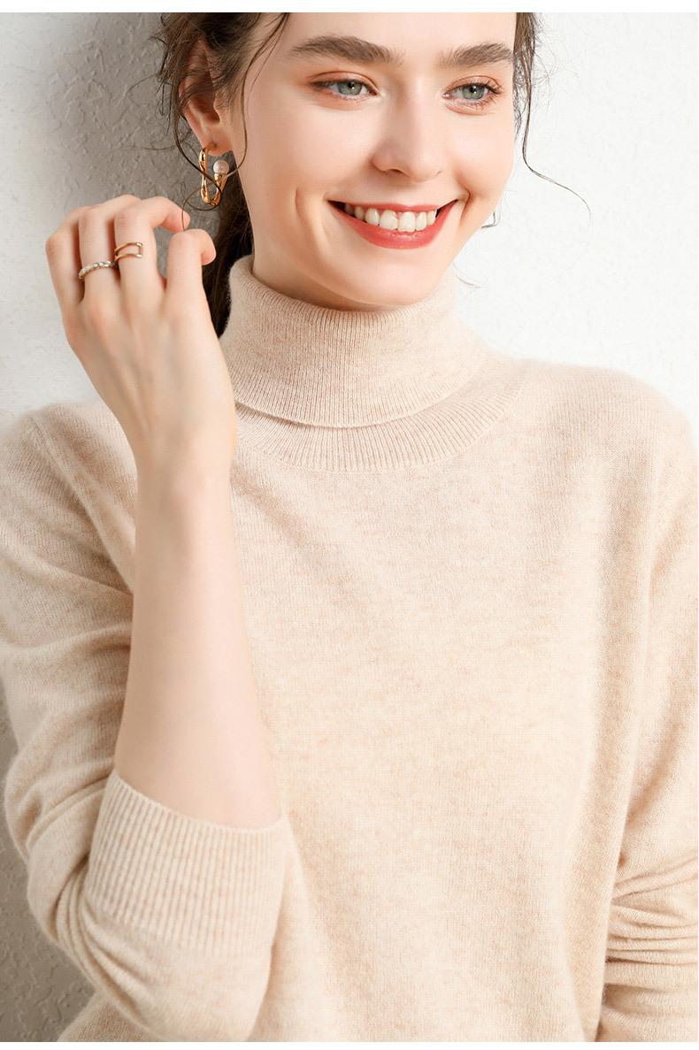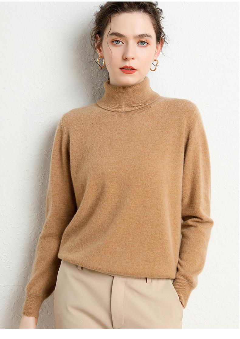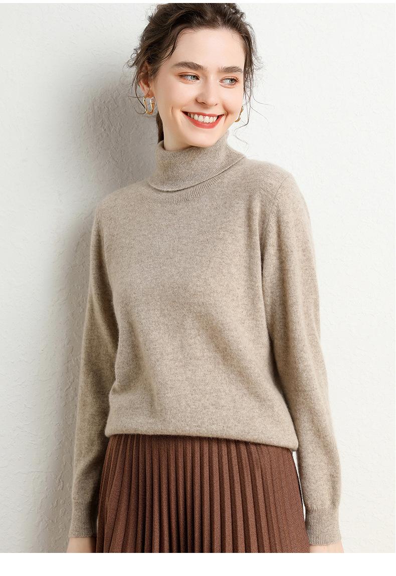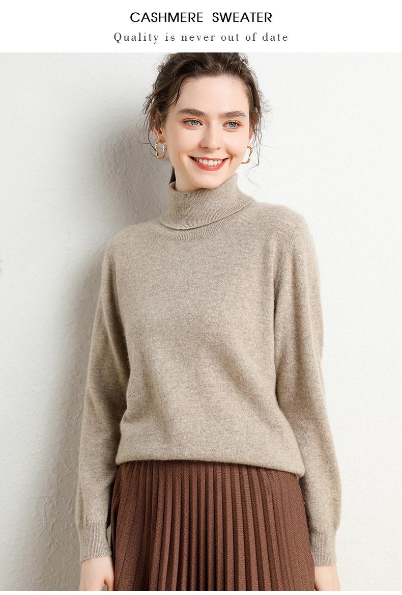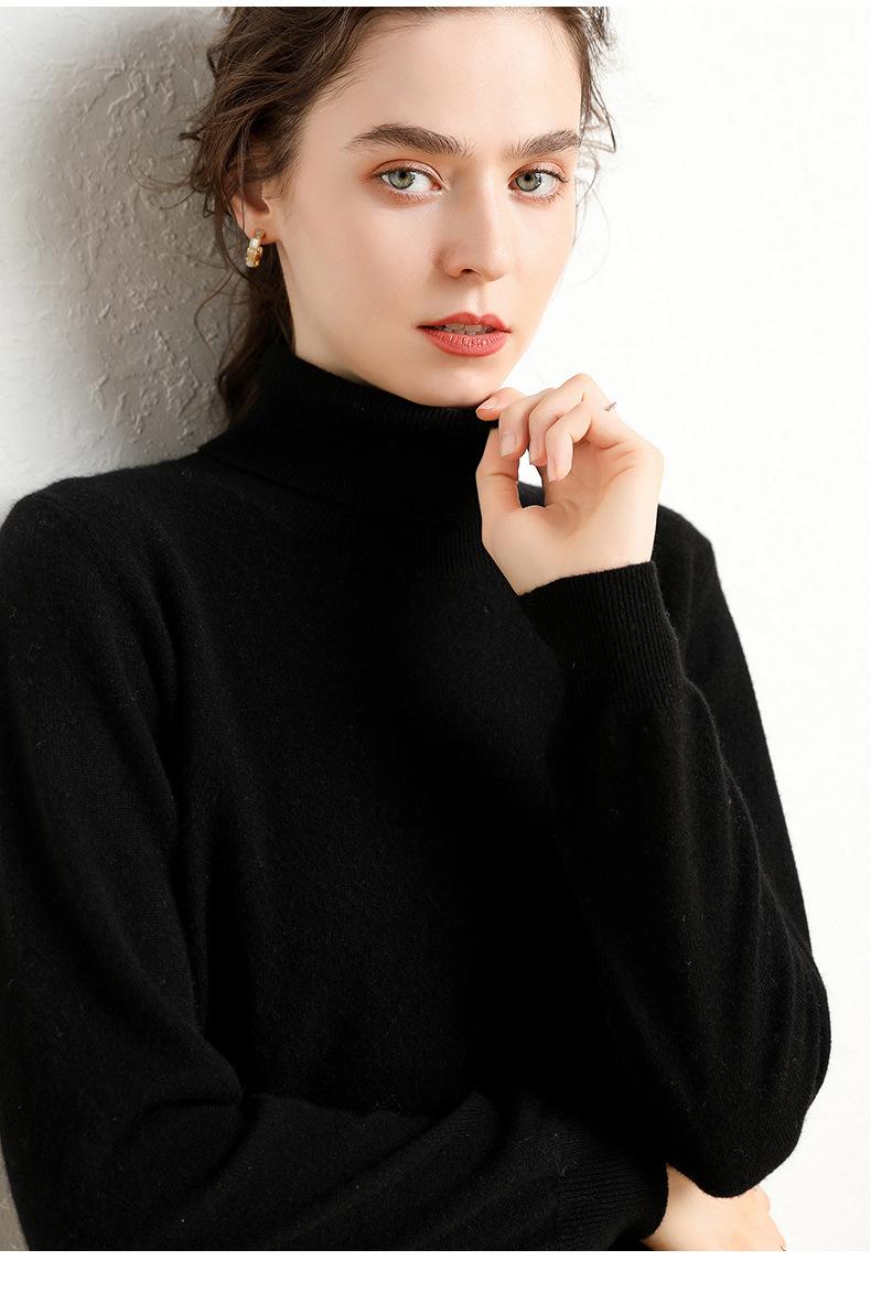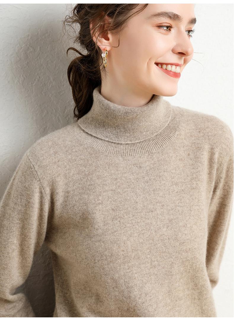 Suéter de Cachemira de Cuello Alto y Color Sólido para Mujer, de Manga Larga, Tejido, Holgado, Sencillo, Básico, para Otoño/Invierno