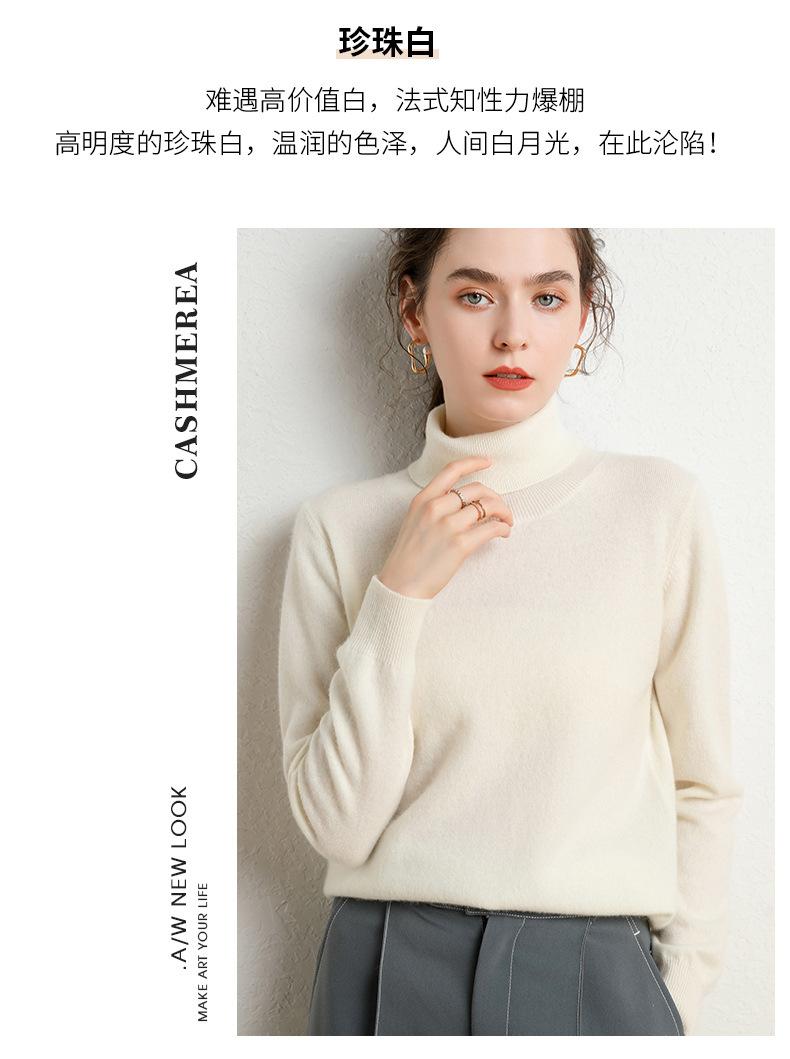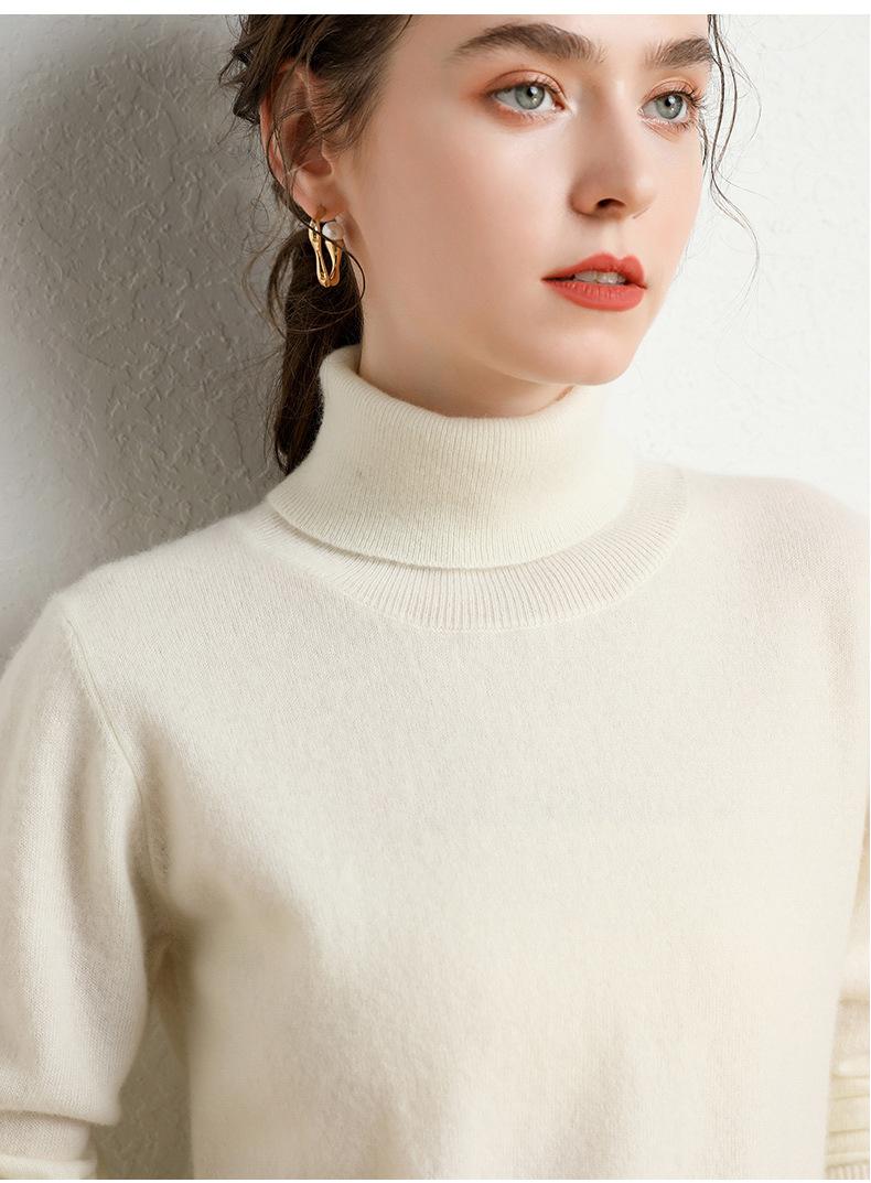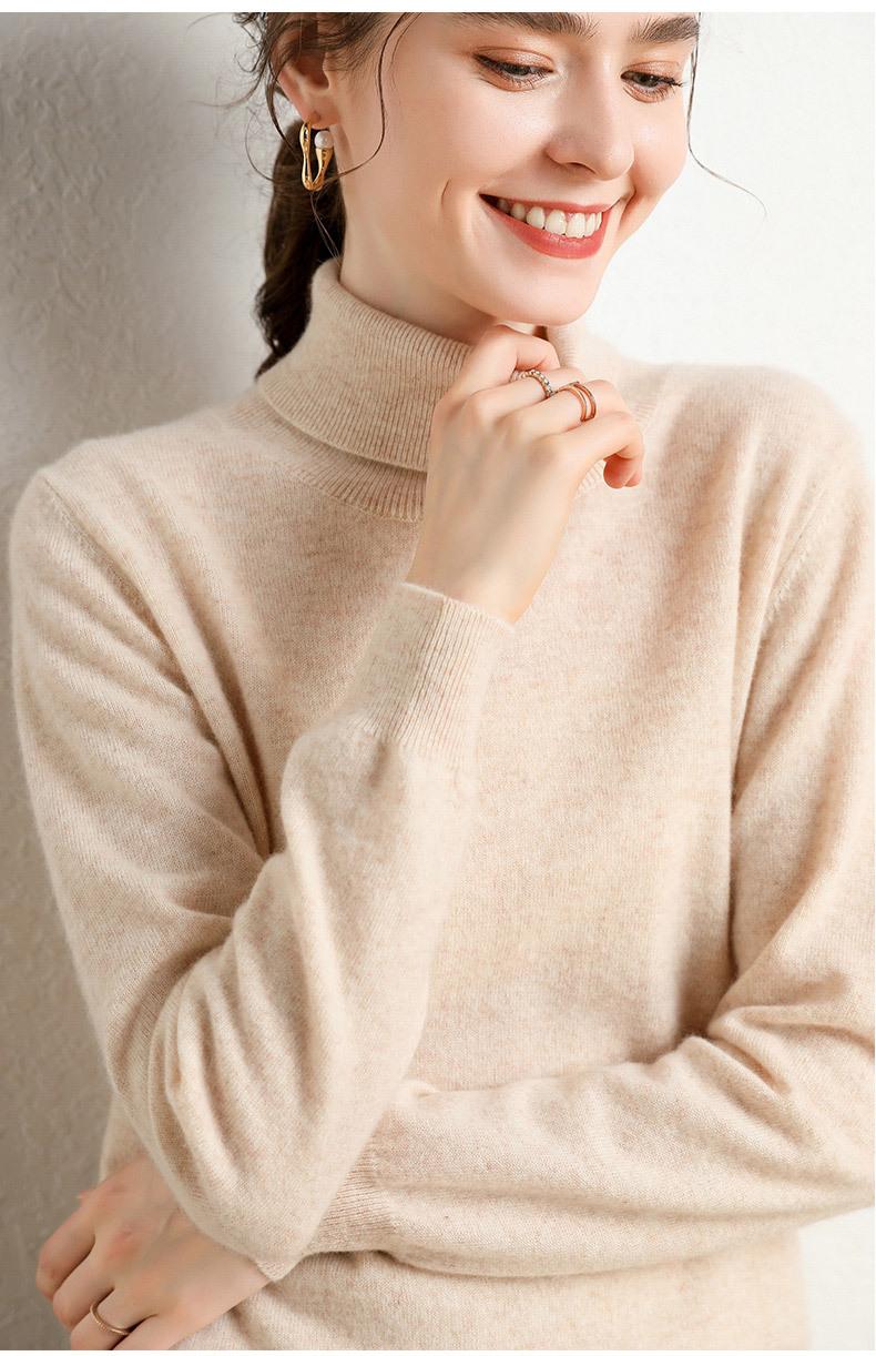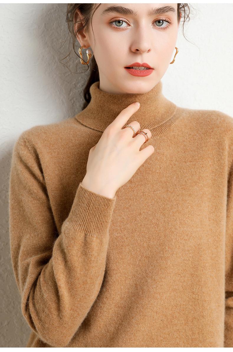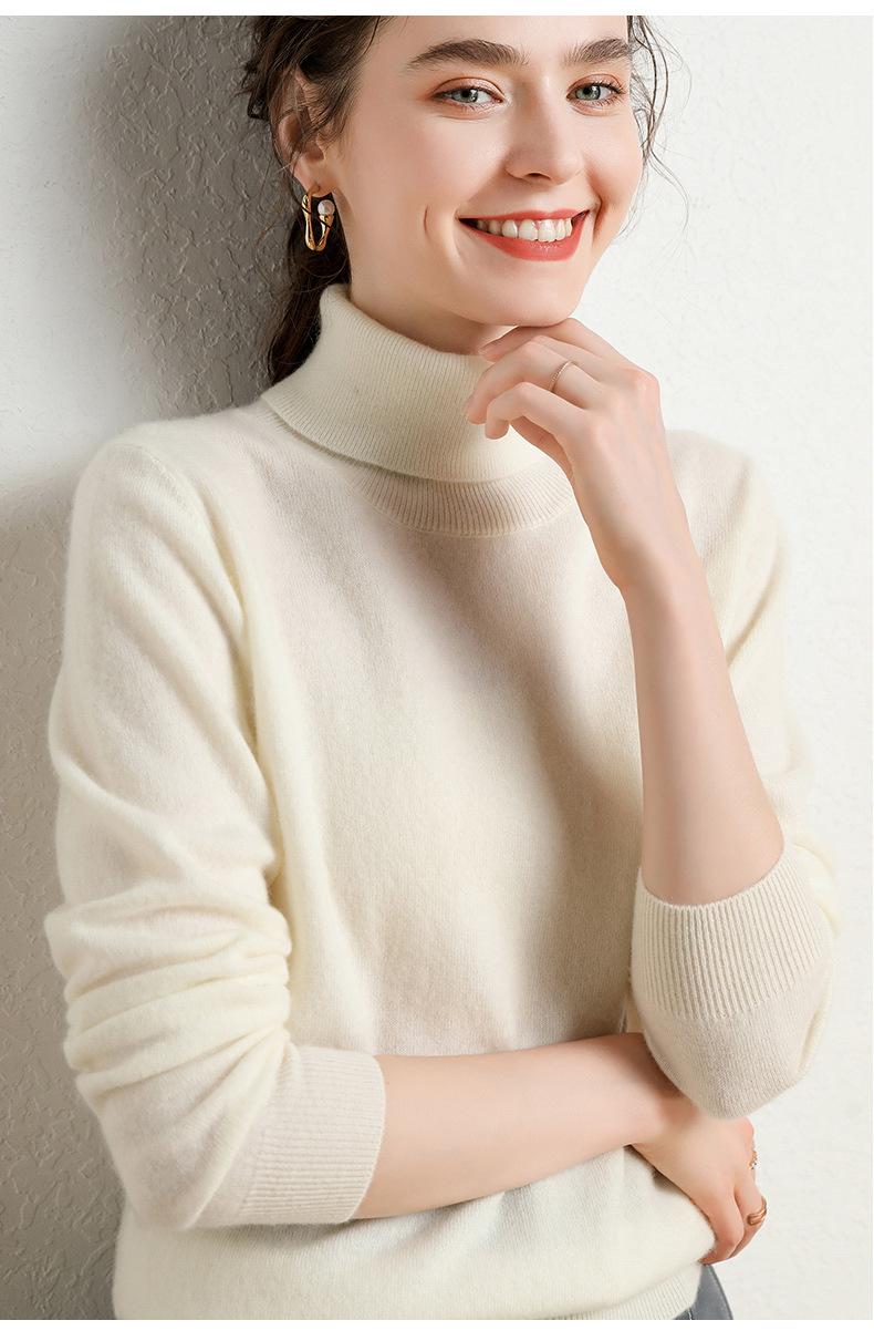 Suéter de Cachemira de Cuello Alto y Color Sólido para Mujer, de Manga Larga, Tejido, Holgado, Sencillo, Básico, para Otoño/Invierno