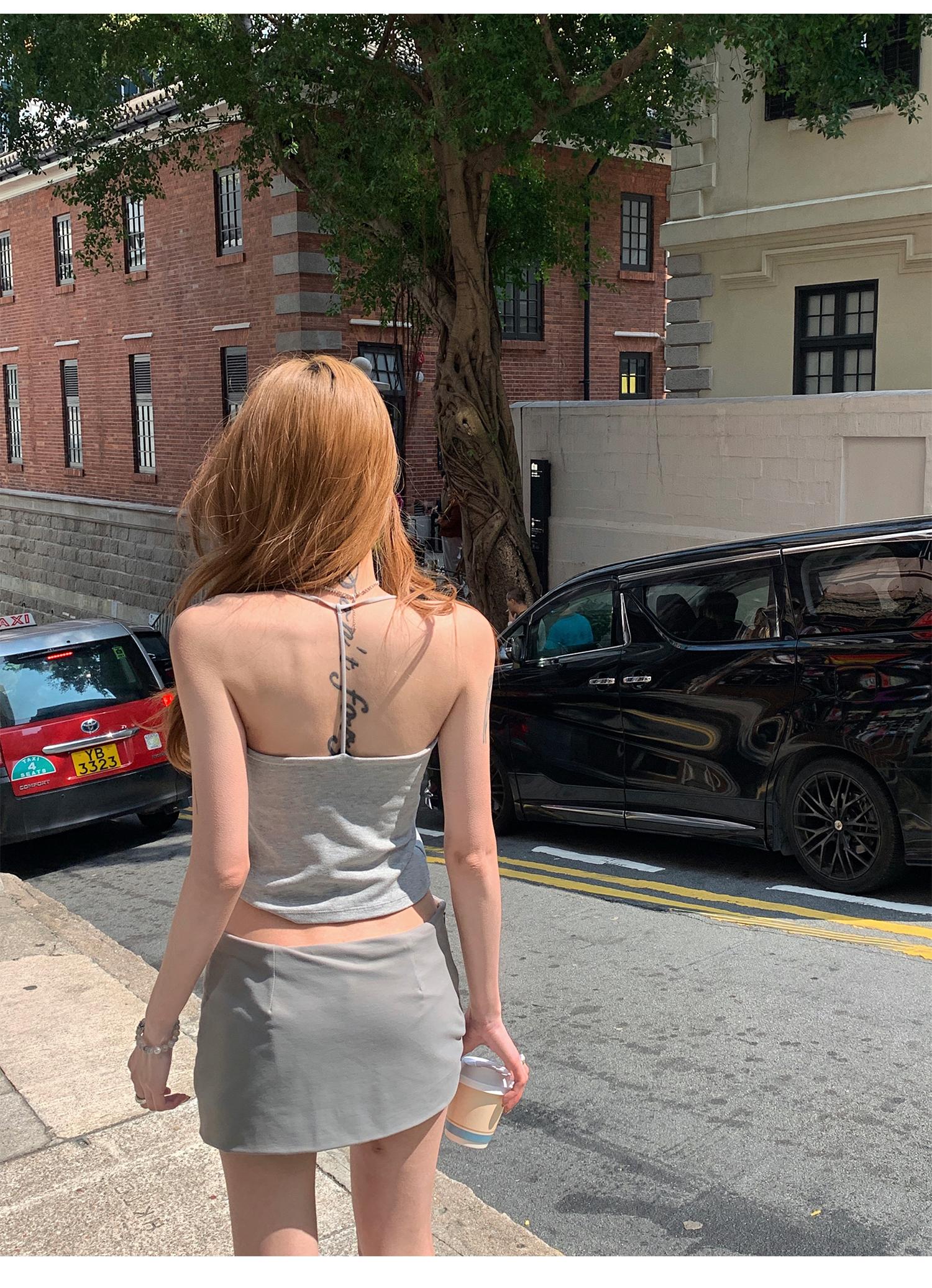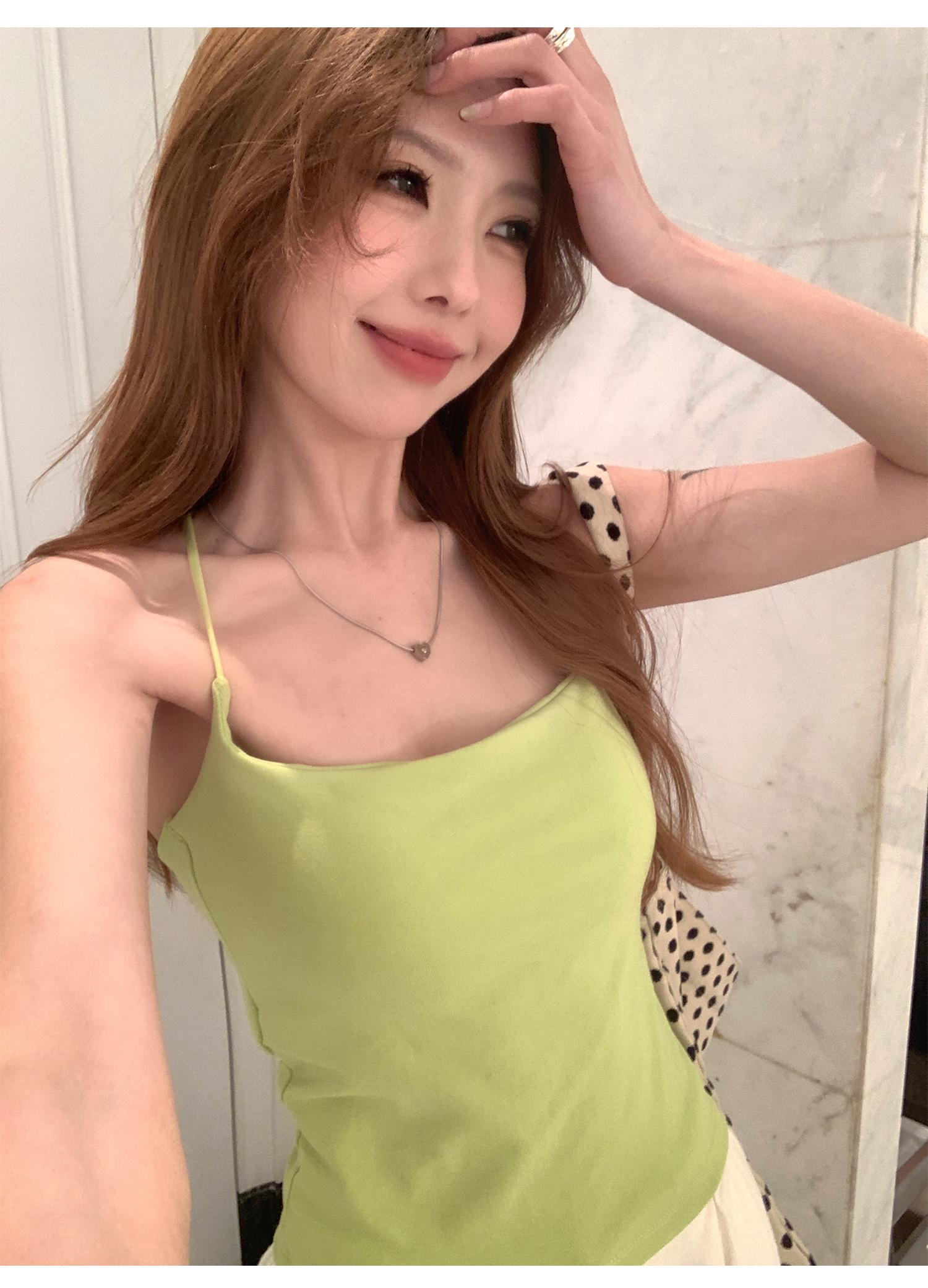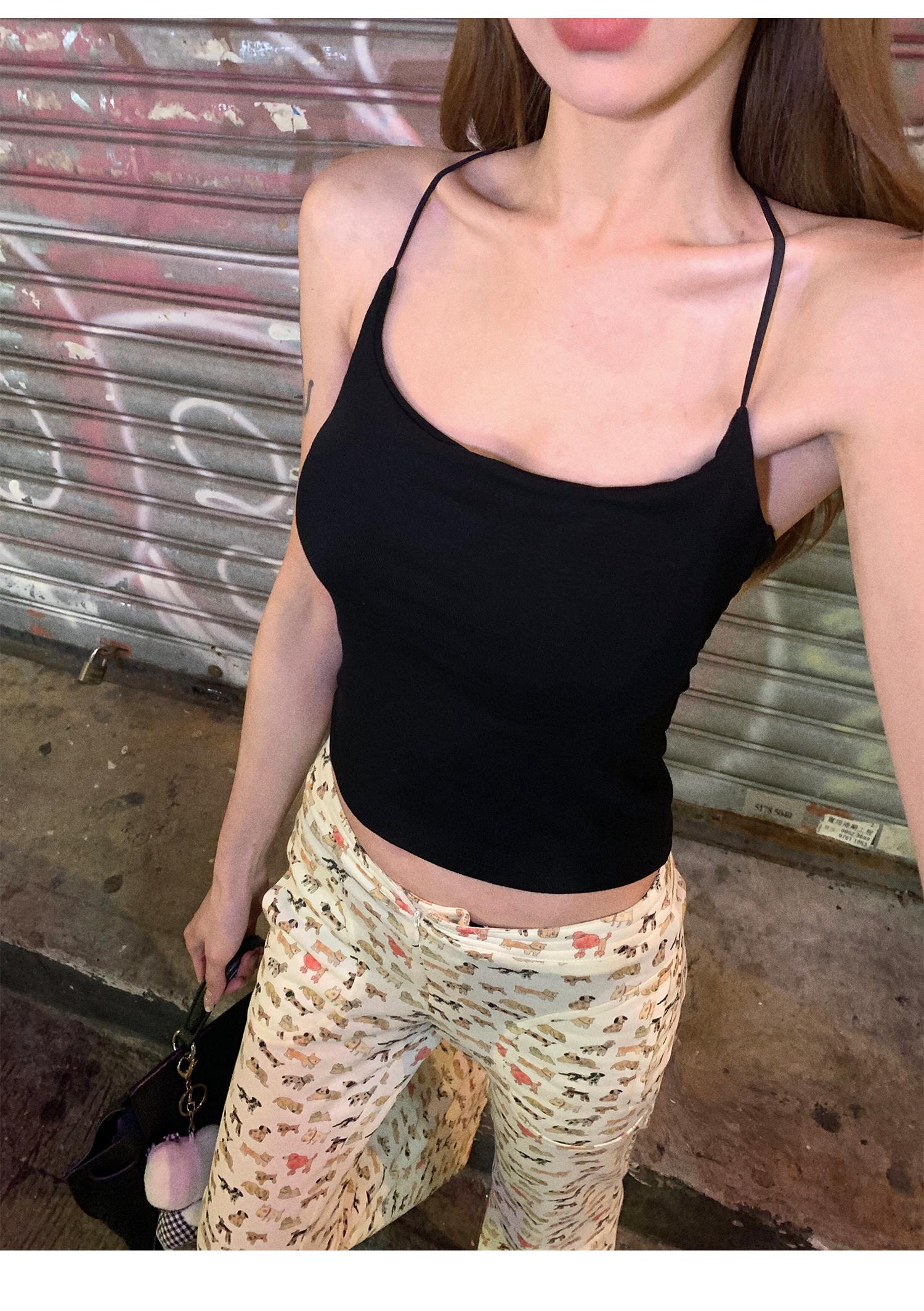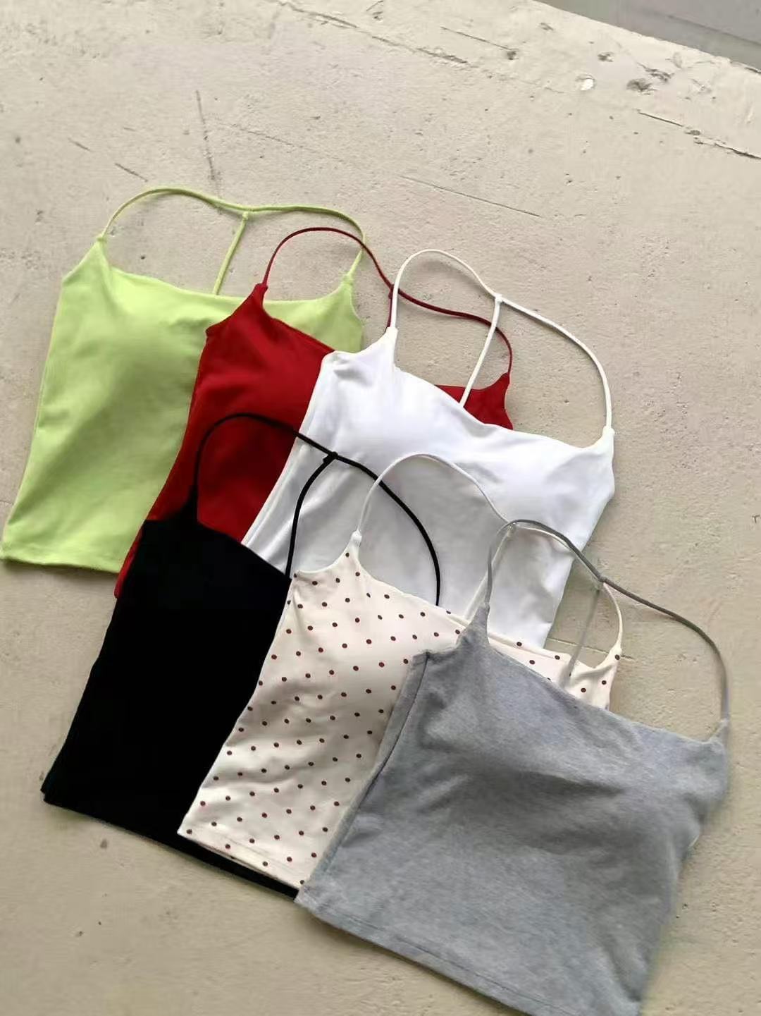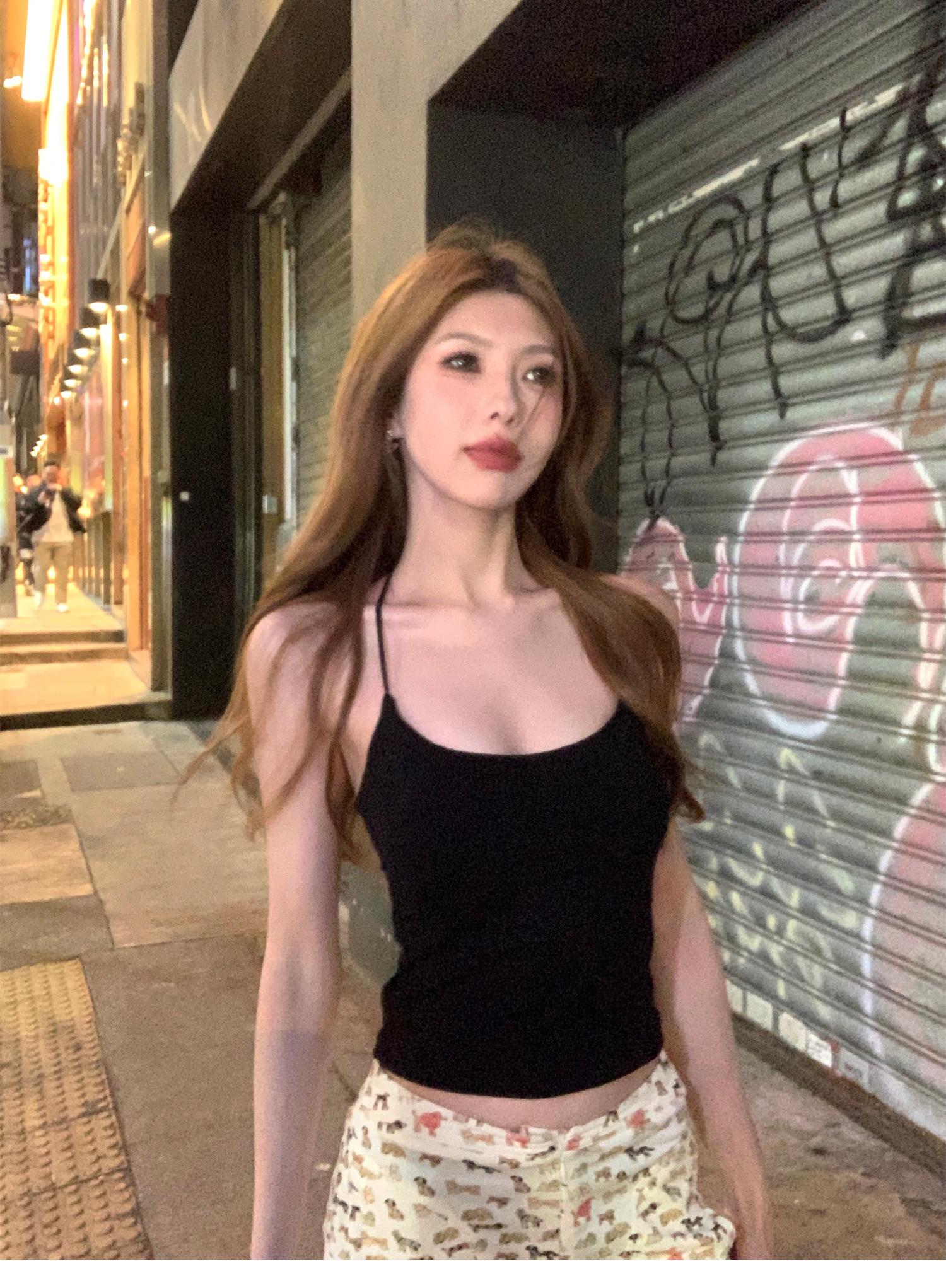 Camisola Blanca Sexy de Chica Caliente con Almohadillas para el Busto para Mujer en Verano Delgada y Versátil Negro Espalda Hermosa Tops Interiores y Exteriores