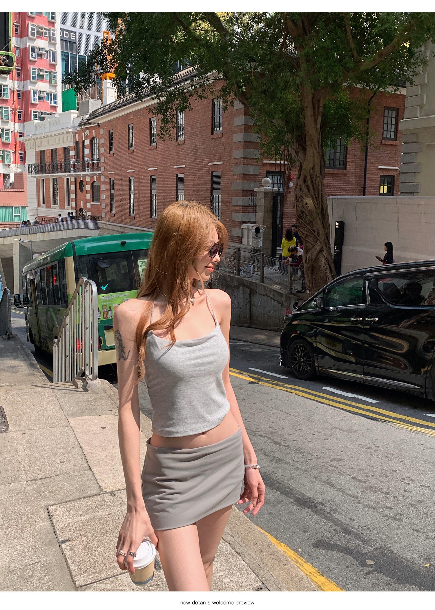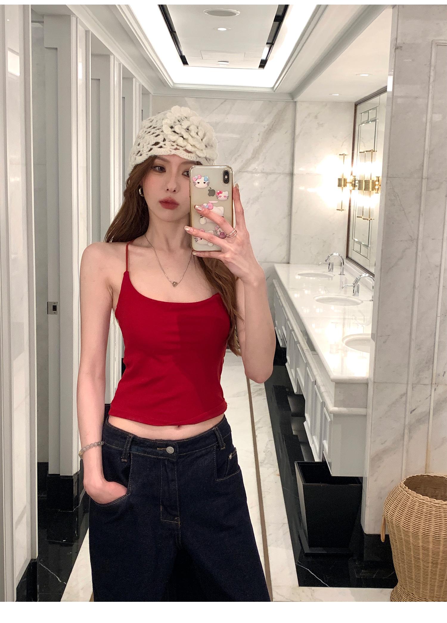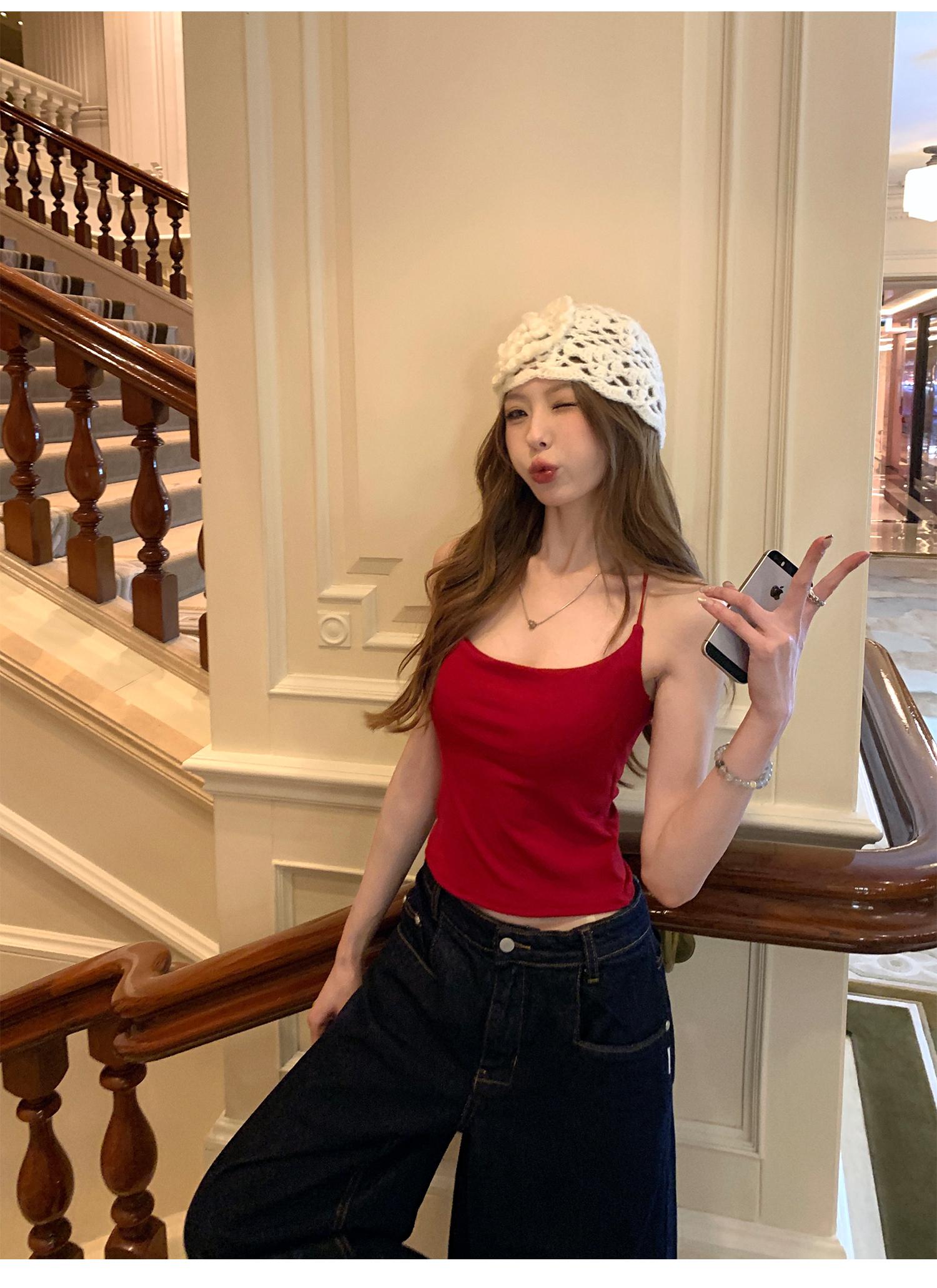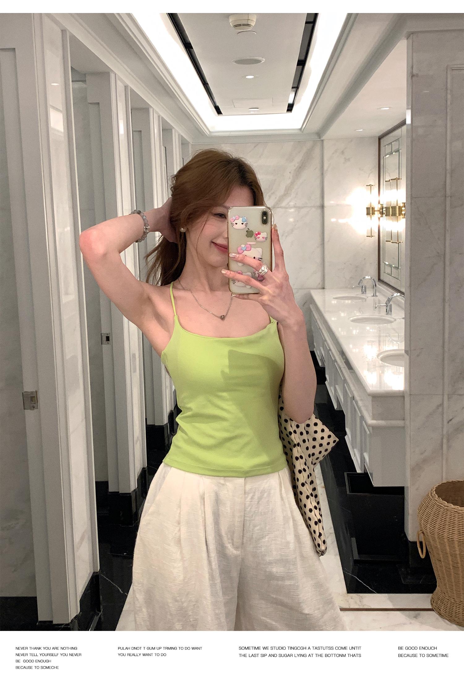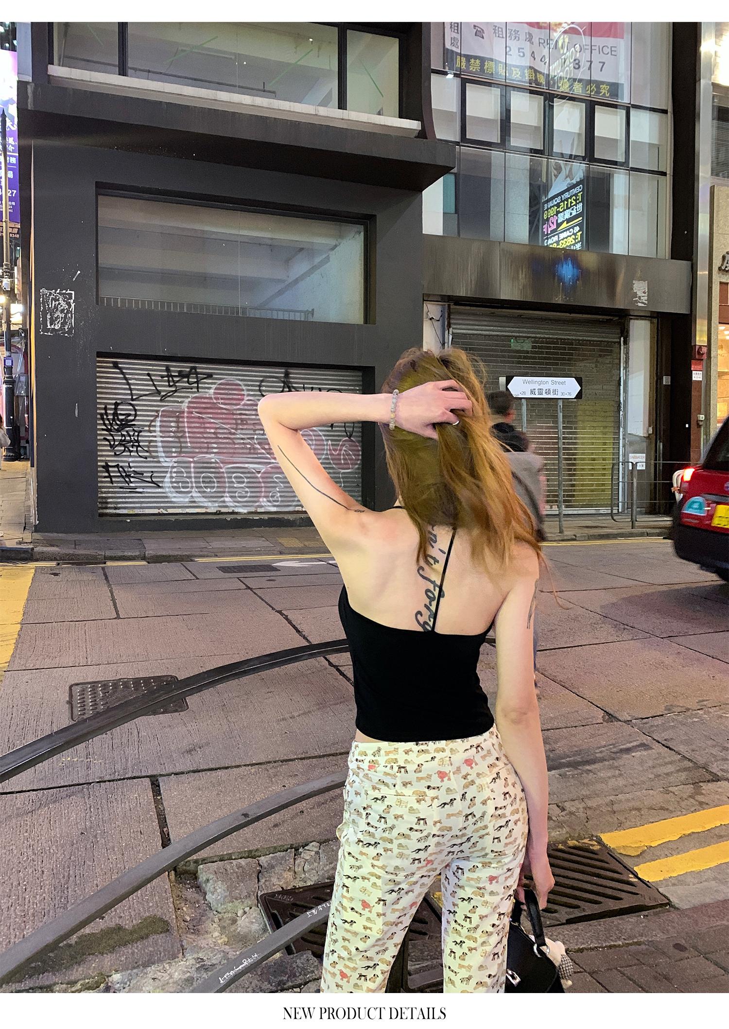Camisola Blanca Sexy de Chica Caliente con Almohadillas para el Busto para Mujer en Verano Delgada y Versátil Negro Espalda Hermosa Tops Interiores y Exteriores