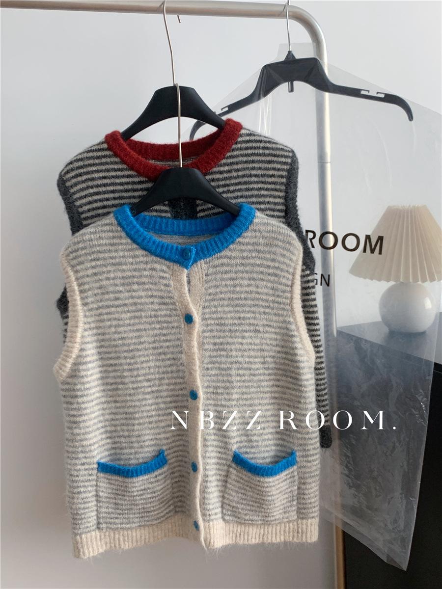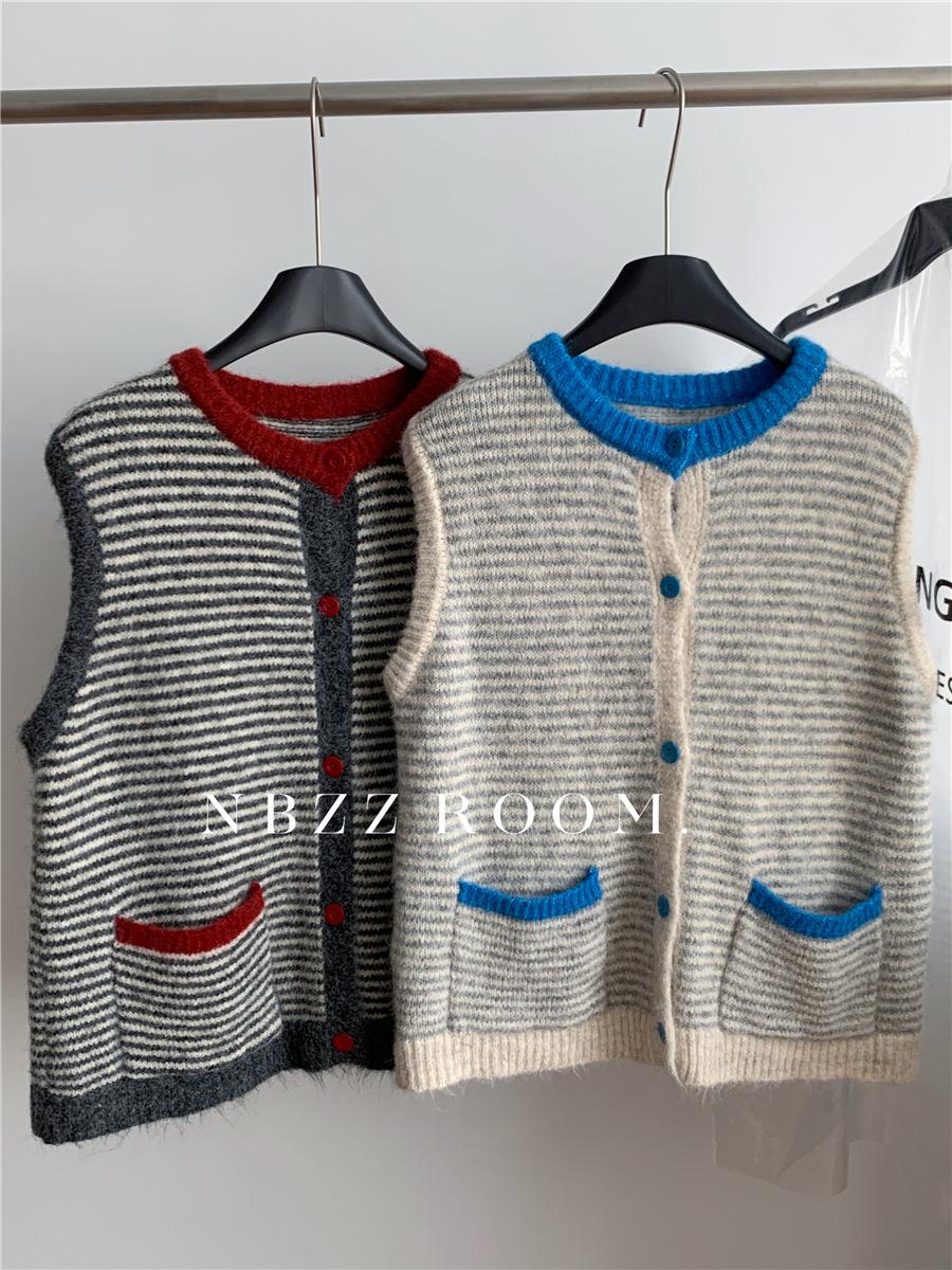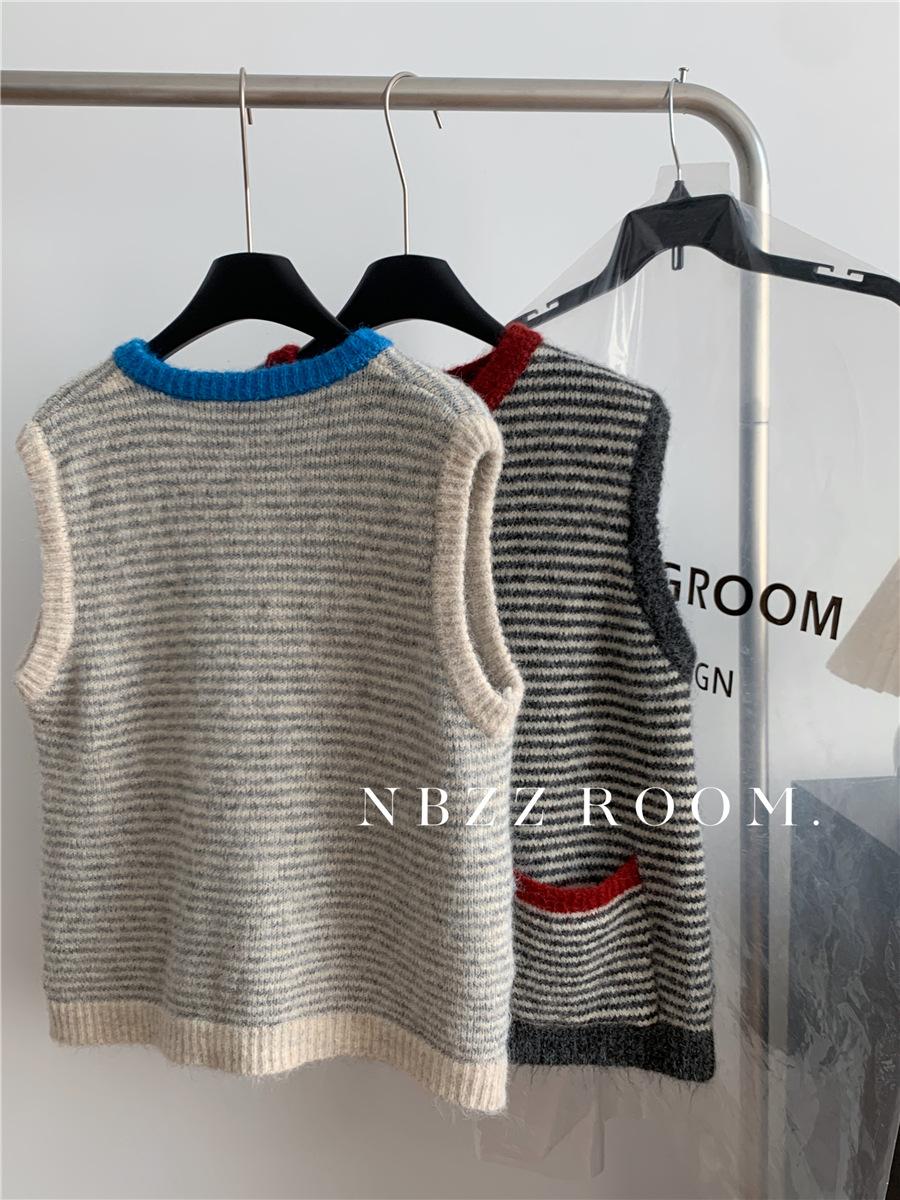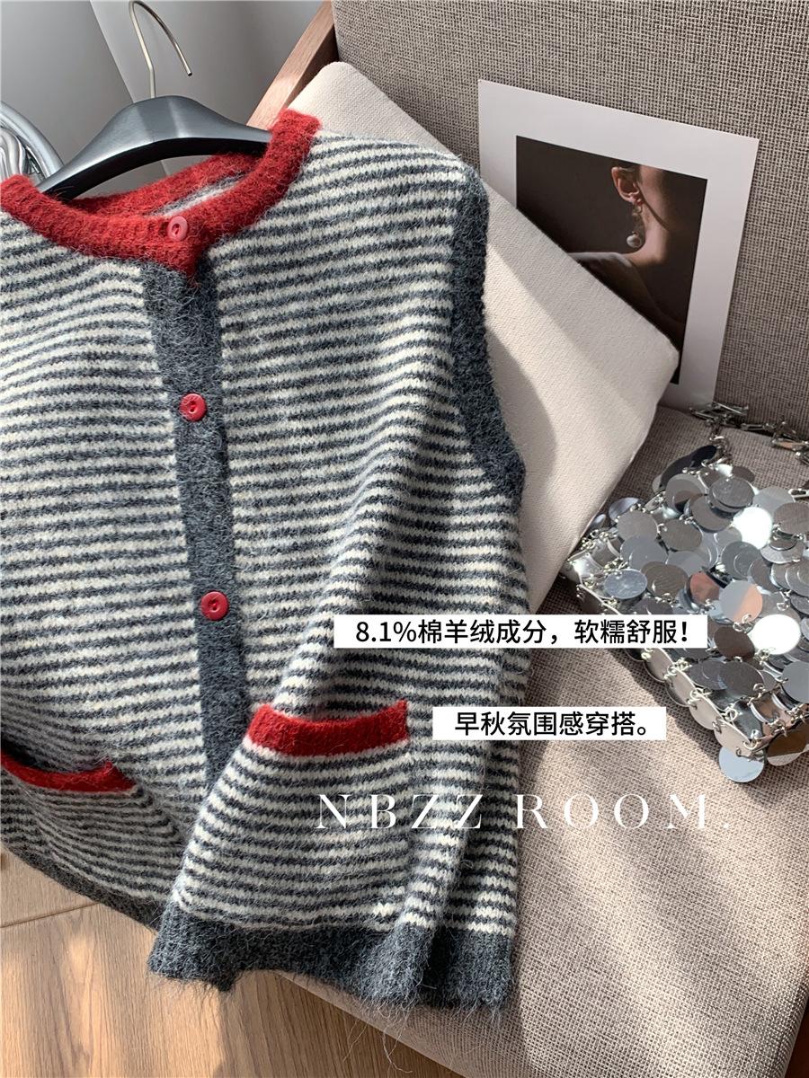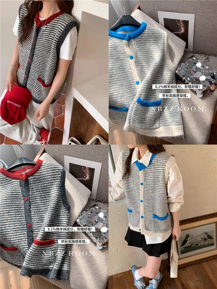 Chaleco de Punto a Rayas con Bloque de Color Retro de Lana Merino 11.5% para Mujer, Suéter Versátil para Capas, Tendencia Otoño/Invierno 2025